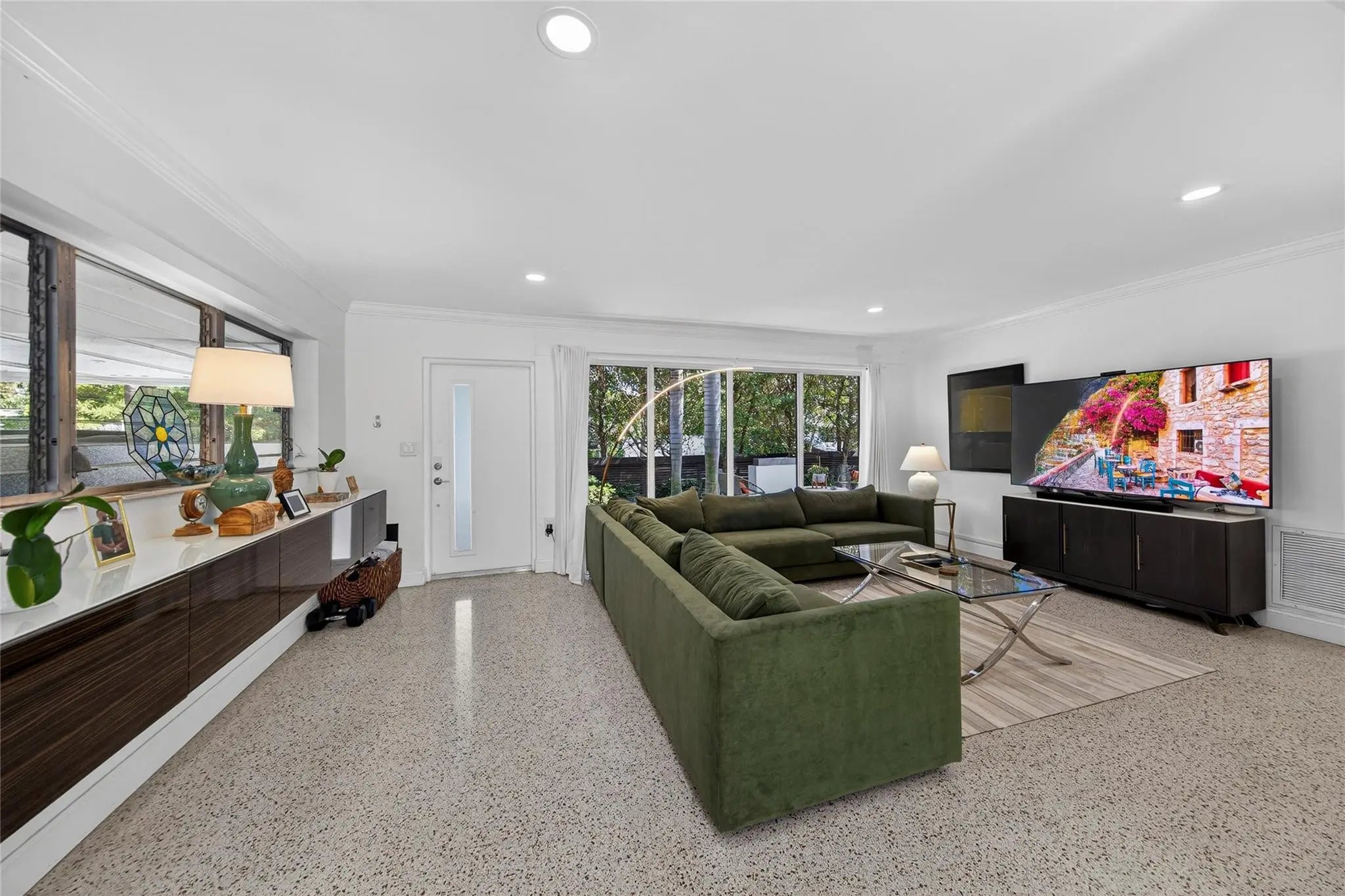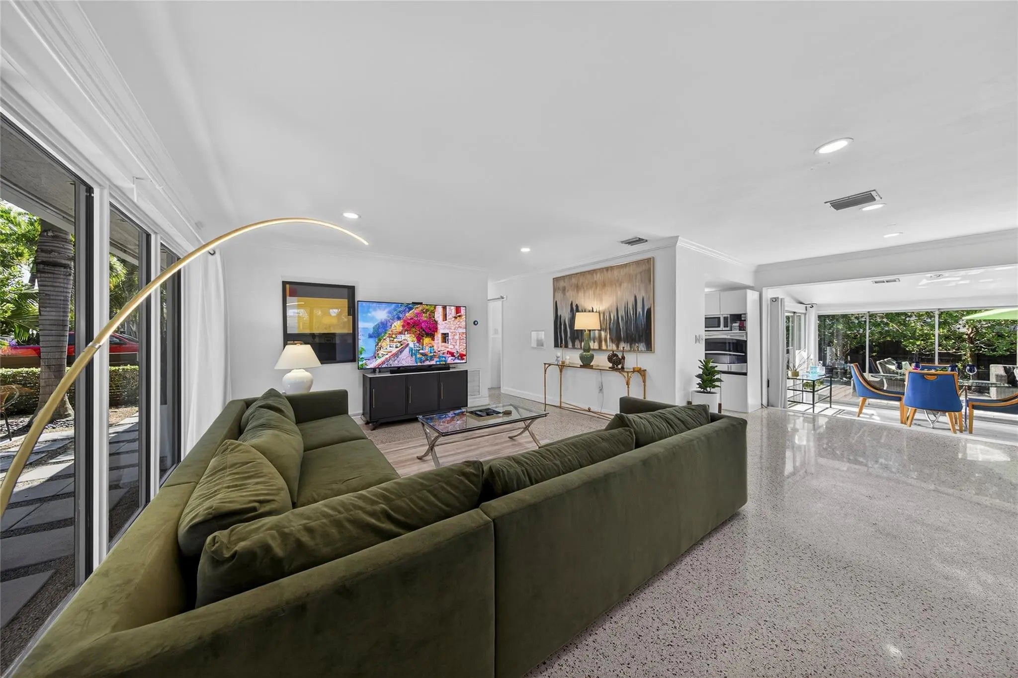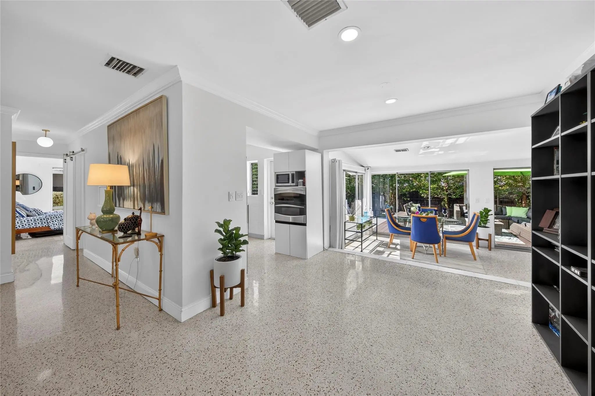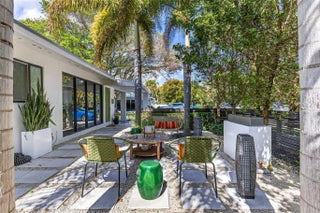 Warm, welcoming and inviting with striking exterior presence just steps from vibrant Wilton Drive! Tranquil, private courtyard adorned with magnificent landscaping, gardens, seating and gathering areas. Bright, open, and airy interior space beaming with natural light through endless walls of glass throughout! Generous primary living quarters with direct access to fenced backyard oasis complete with heated pool, BBQ area, relaxing, entertaining and sunning spaces. Terrazzo flooring, recessed lighting, crown moldings, updated baths, modern lighting and more. New roof (2024), newer a/c and h/w, interior laundry/storage, carport and PVP piping. Furnishings available.