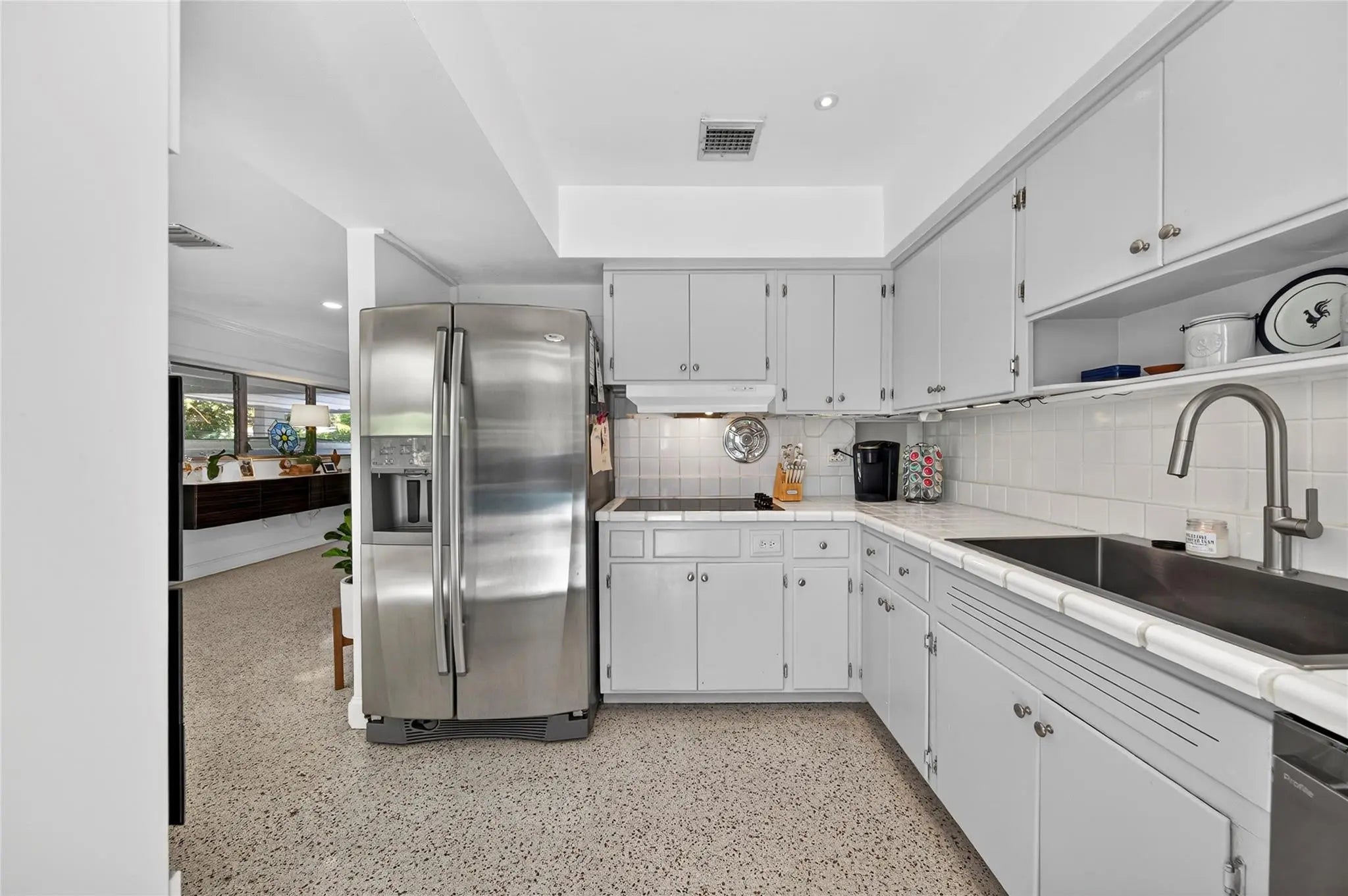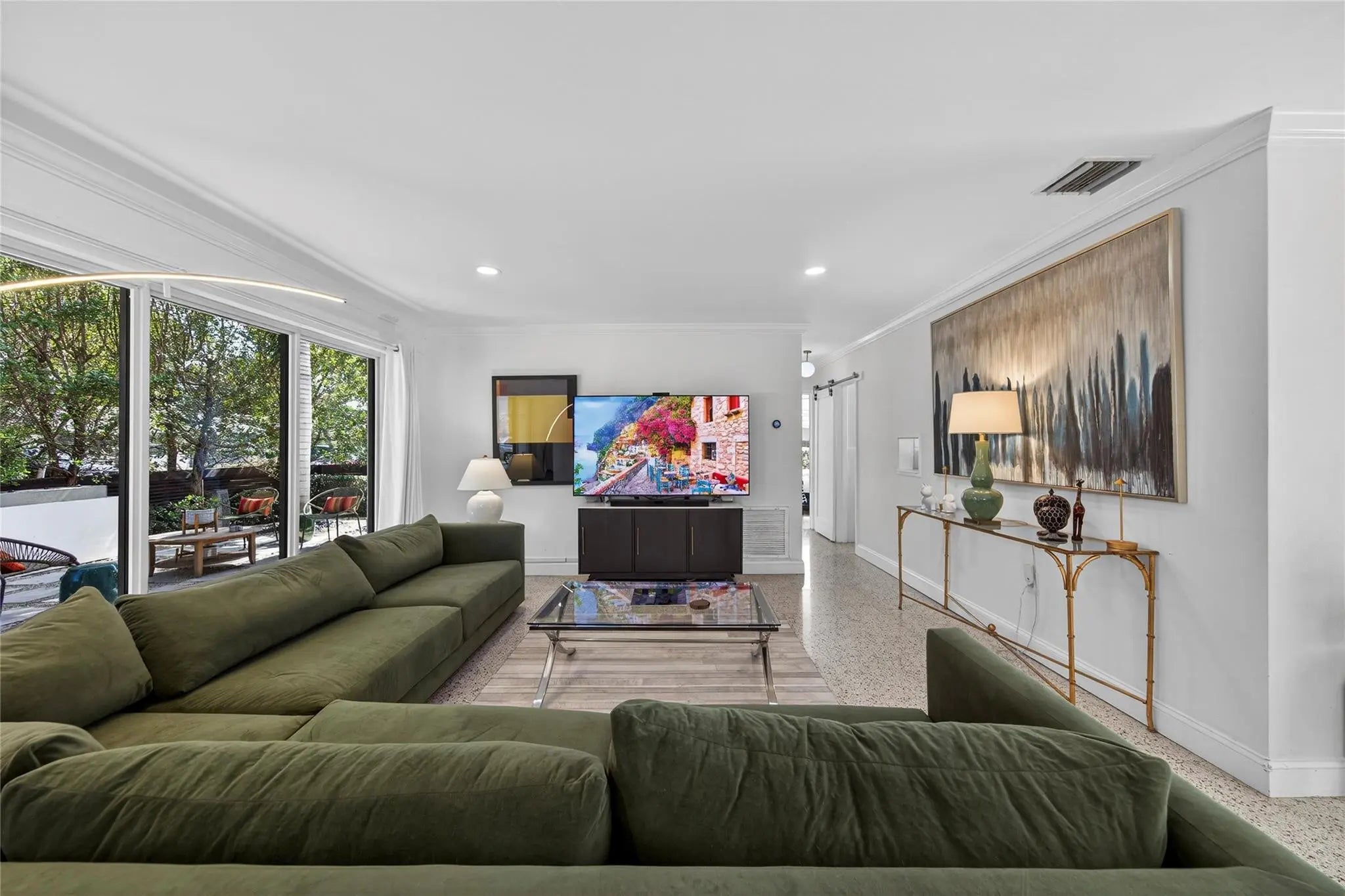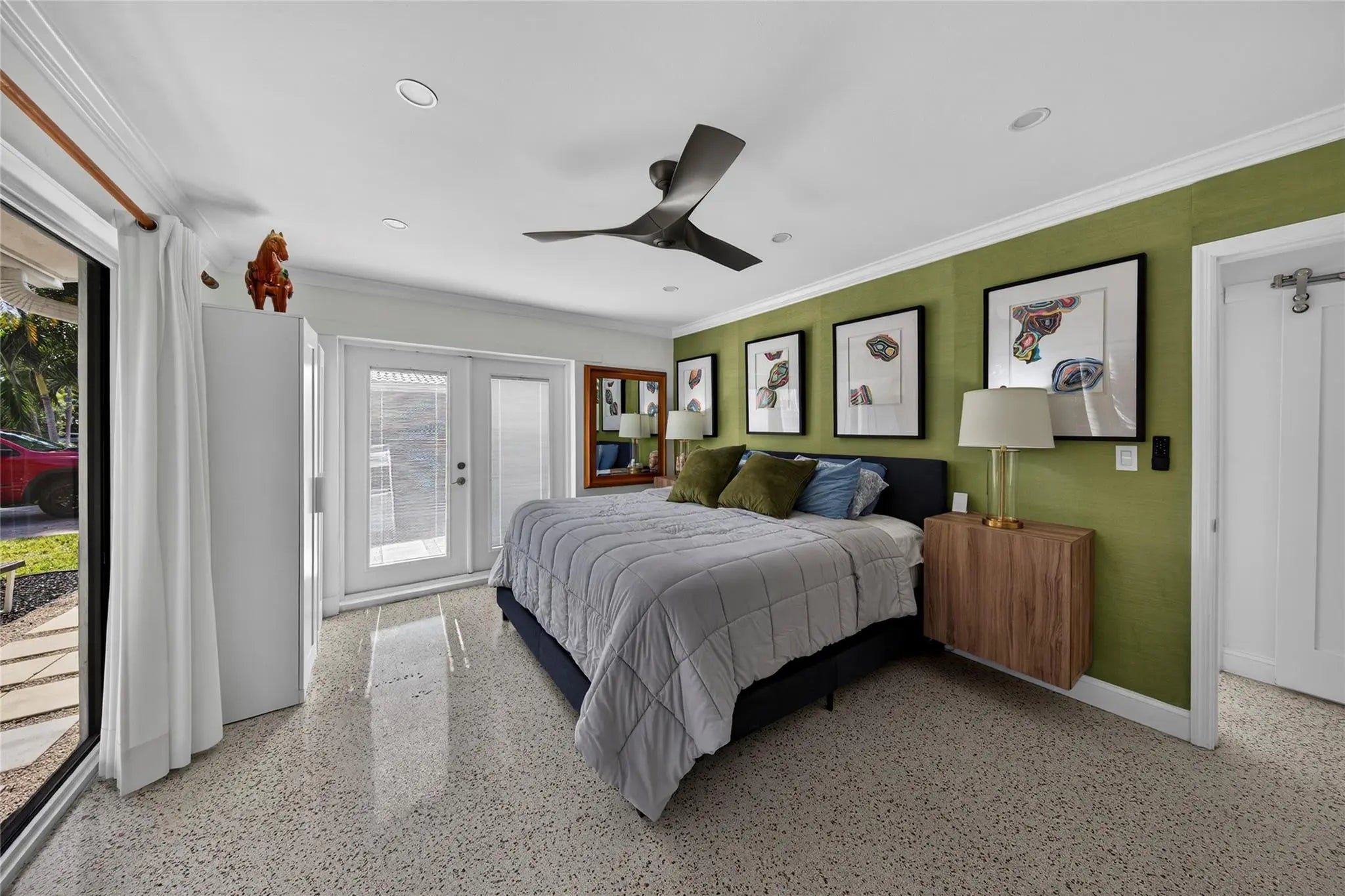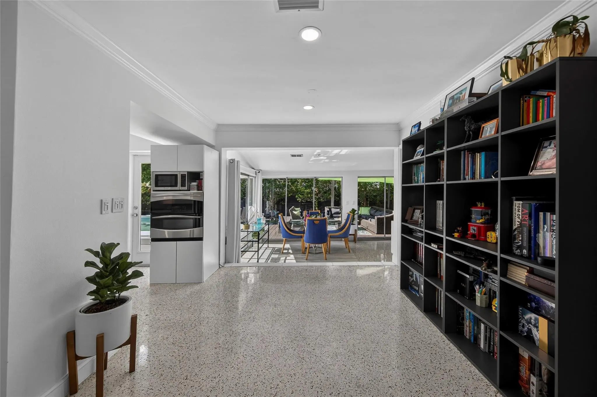 Warm, welcoming and inviting with striking exterior presence just steps from vibrant Wilton Drive! Tranquil, private courtyard adorned with magnificent landscaping, gardens, seating and gathering areas. Bright, open, and airy interior space beaming with natural light through endless walls of glass throughout! Generous primary living quarters with direct access to fenced backyard oasis complete with heated pool, BBQ area, relaxing, entertaining and sunning spaces. Terrazzo flooring, recessed lighting, crown moldings, updated baths, modern lighting and more. New roof (2024), newer a/c and h/w, interior laundry/storage, carport and PVP piping. Furnishings available.