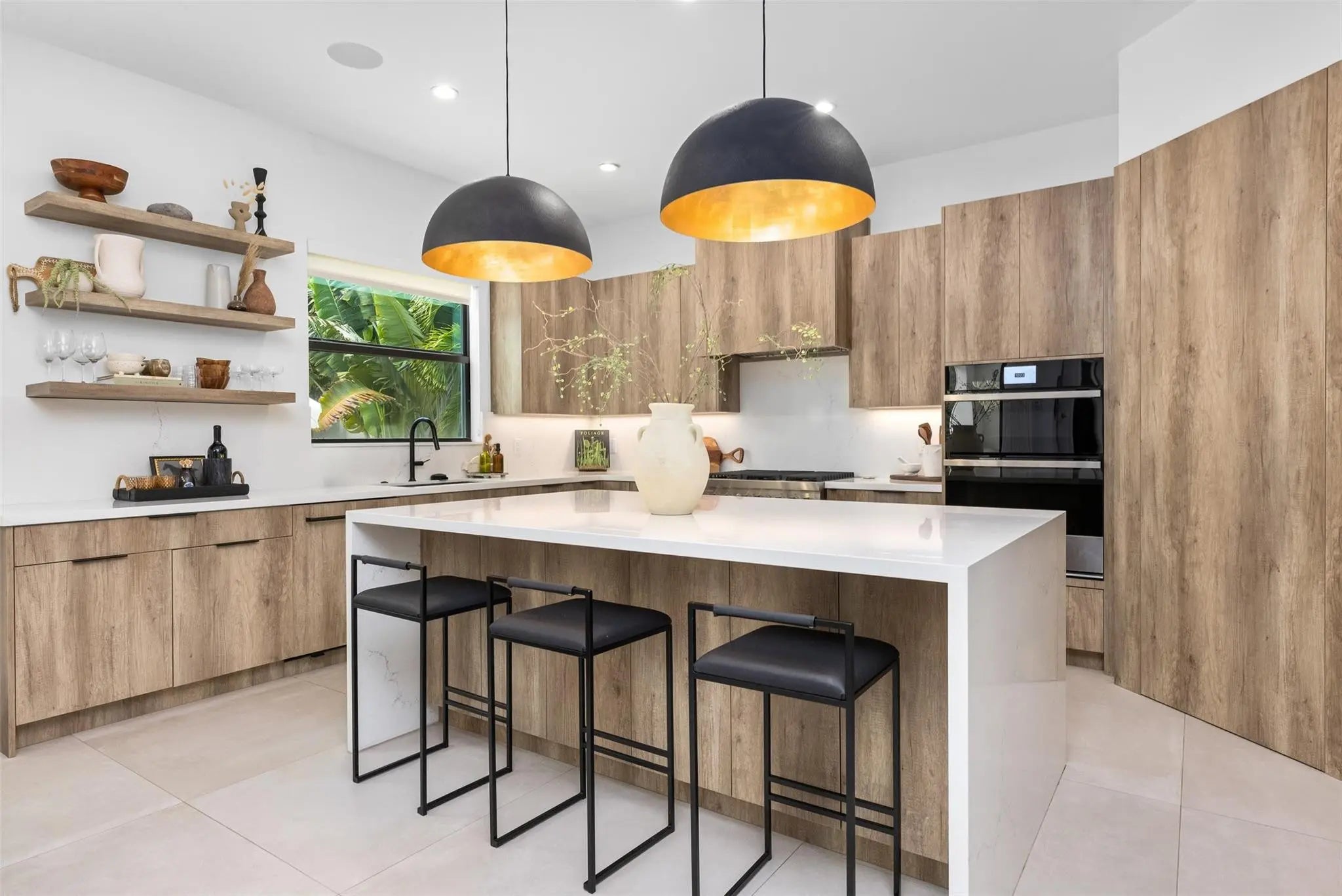 Built in 2022 and perfectly positioned in Boca Villas, this newer construction home combines clean design, quality finishes, and one of the best locations in Boca Raton. The interiors are bright and open with a timeless, neutral palette that feels elevated yet comfortable. A thoughtful mix of wood and tile flooring, well-proportioned living spaces, and a natural flow throughout make the home ideal for both everyday living and entertaining.The outdoor space includes a resort-style pool, fully equipped summer kitchen, and additional green space, offering a rare combination of privacy and usable yard in this location. The layout allows for easy indoor-outdoor living and provides multiple areas for entertaining or relaxing year-round.Located in the heart of Boca Villas.
