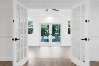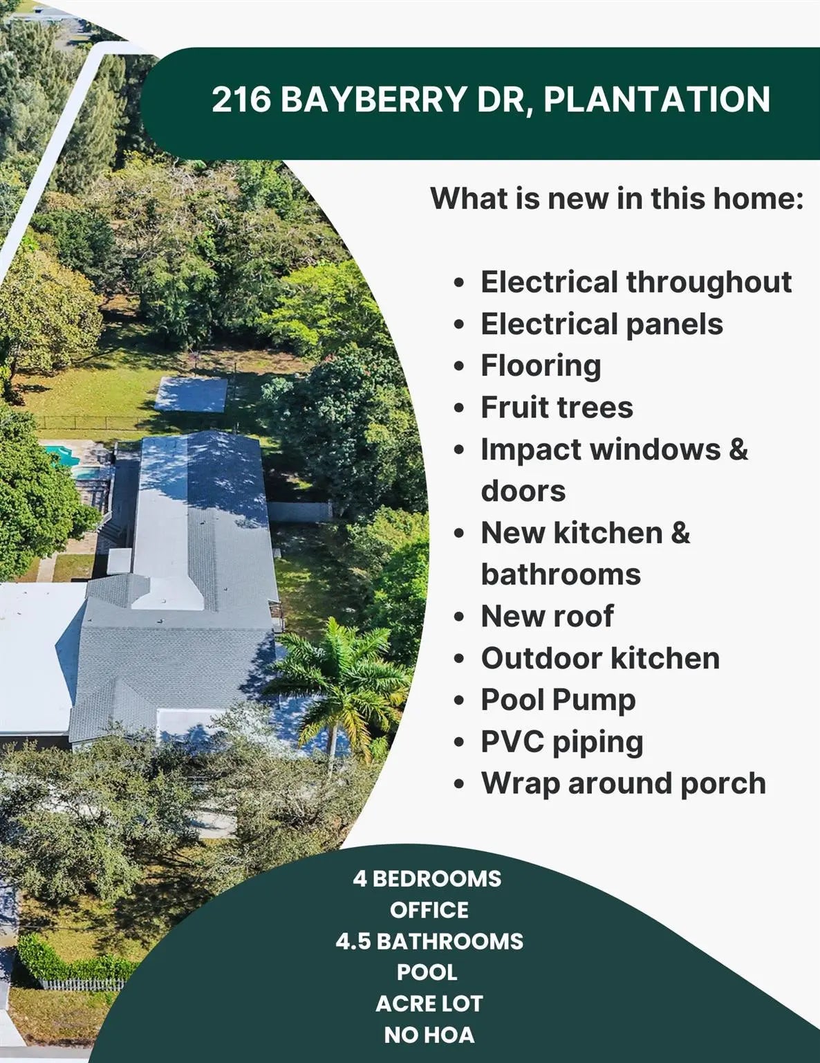 This is NOT your typical farmhouse. Set on an acre, it offers space, privacy, & calm while still being close yet far away. A wrap-around porch with swing invites slow mornings, breezy afternoons, & sunset conversations. Inside, rustic warmth blends with contemporary design in a bright floor plan for everyday living & easy entertaining. The kitchen has new appliances, farmhouse sink, & generously sized island. Impact windows throughout bring in natural light, enhancing the farmhouse feel. Oversized bedrooms offer comfort & flexibility, with 3 of the 4 having their own bathrooms. The spacious primary includes a spa-inspired bathroom with double shower, soaking tub, & attached office/workout space. Outside, mango & lychee trees add a taste of the tropics alongside the pool & BBQ.