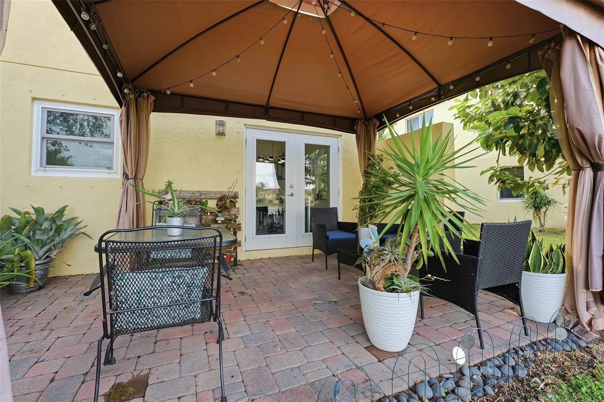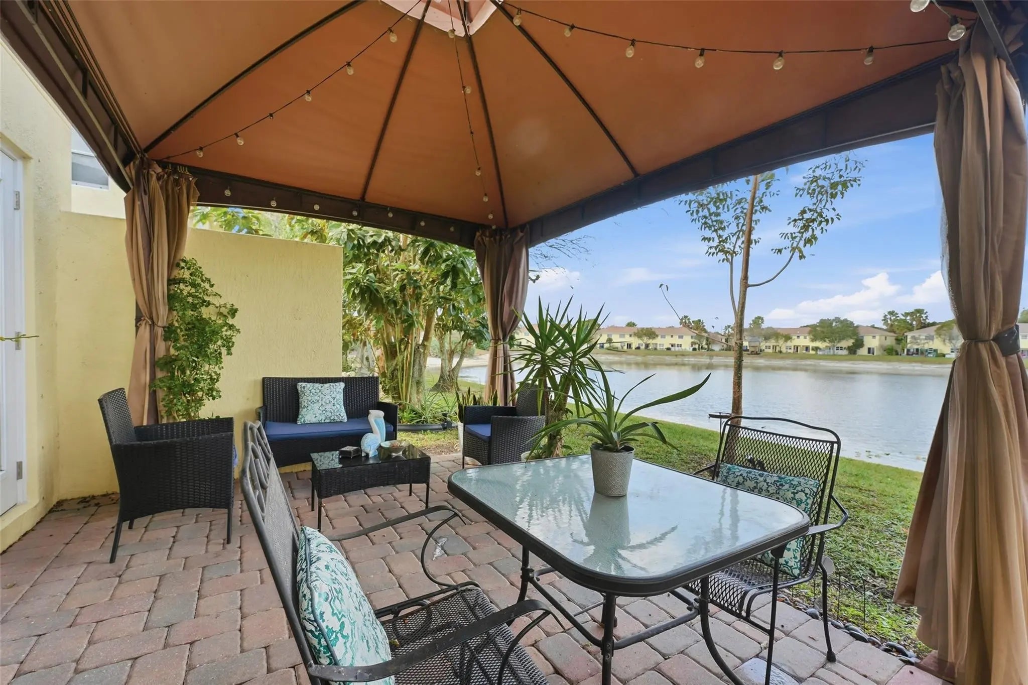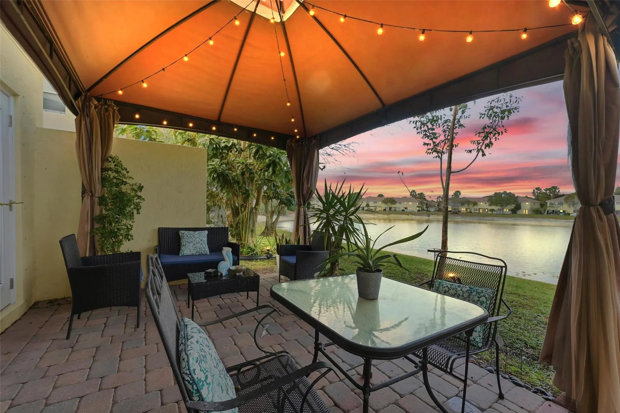 RARE 3BR/2.5BA LAKEFRONT CORNER UNIT WITH 1-CAR GARAGE! Located in sought-after Independence Cove, this upgraded home offers privacy, security, and modern luxury. Features include a renovated kitchen, porcelain tile, and electric fireplace.?? HIGH-VALUE UPGRADES ($38K+): $21,778 in Full Hurricane Impact Windows & Doors (2018), Water Heater (May 2025), A/C (Sept 2020), 2.5-bath layout, upstairs laundry.?? OUTDOOR OASIS: Oversized corner lot with private paved patio, gazebo, and serene lake sunsets.?? 24-hour manned security, low HOA, pool, tennis, playground.Move-in ready lakeside living at its absolute finest!