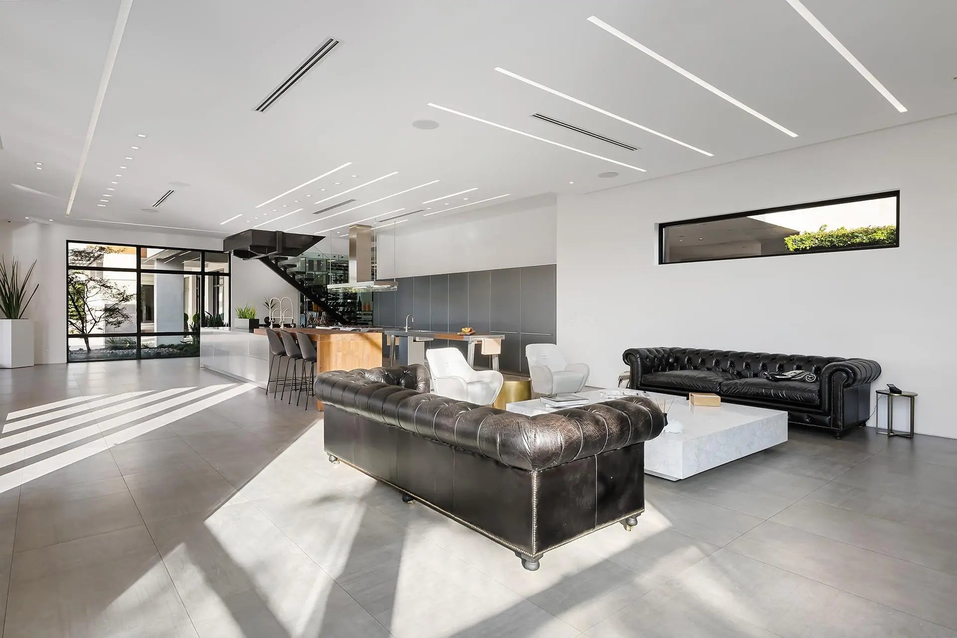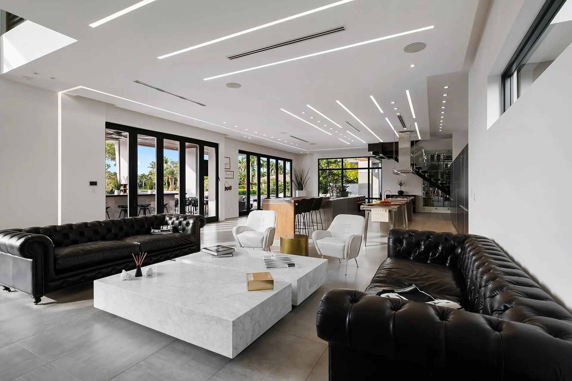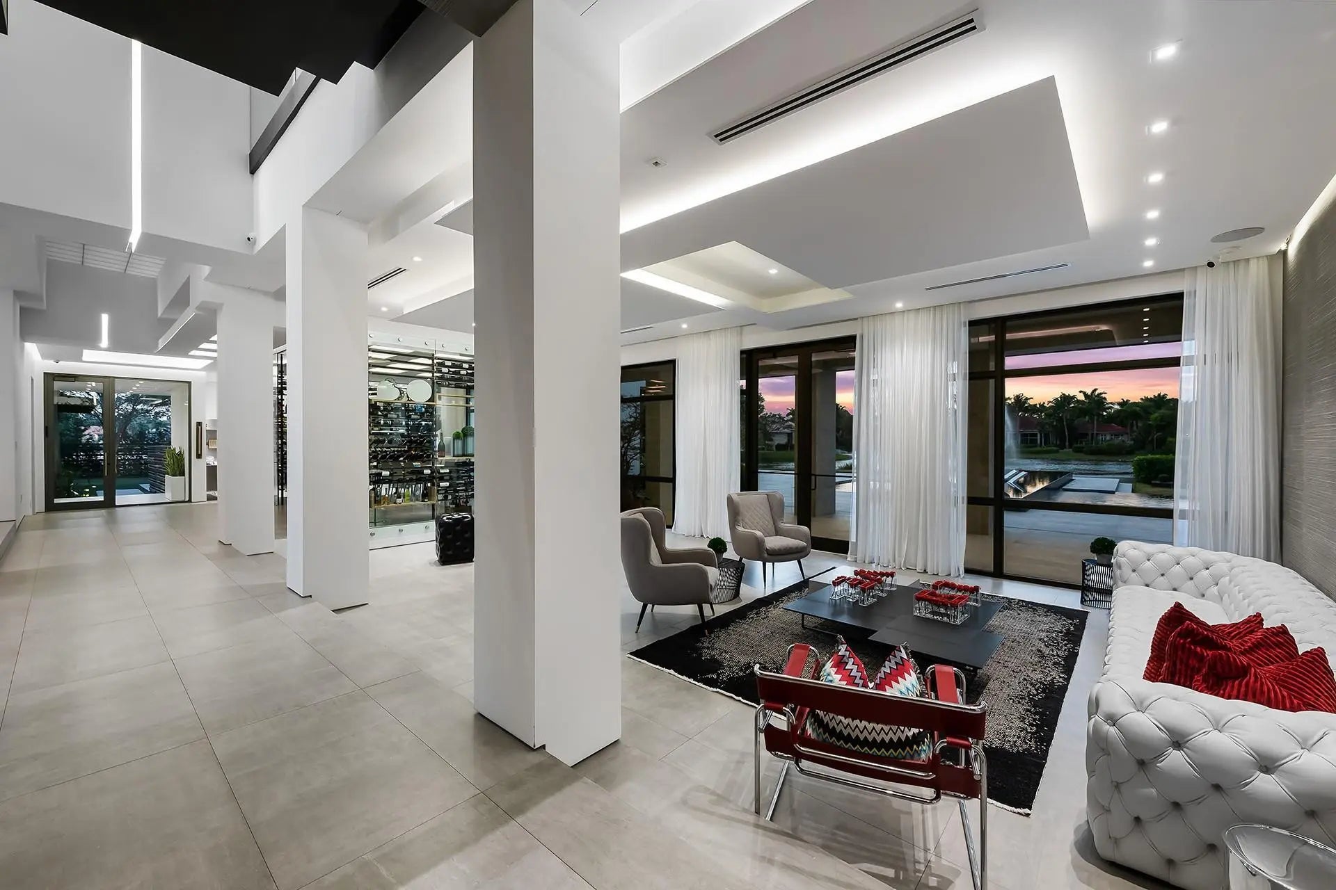 The most architecturally designed lakefront estate in the premier guard-gated community of Hawks Landing. Set on nearly an acre, this 17,400 sq ft modern residence captures light, water views, and glowing sunsets. The soaring 35-foot ceilings, dual floating steel staircases, and glass wine room define the interior. The Bulthaup kitchen opens through Nano doors to a resort-style 80' pool, waterfall, and expansive outdoor entertaining area with a full kitchen. The loft-inspired primary suite offers sliding oak doors and panoramic views. Some of the additional features include all en-suite bedrooms, a state-of-the-art gym, an 8-seat movie theatre, and a private guest house. Hawks Landing offers a clubhouse with a fitness center, tennis, pickleball, playground & 24-hour guard-gated security.