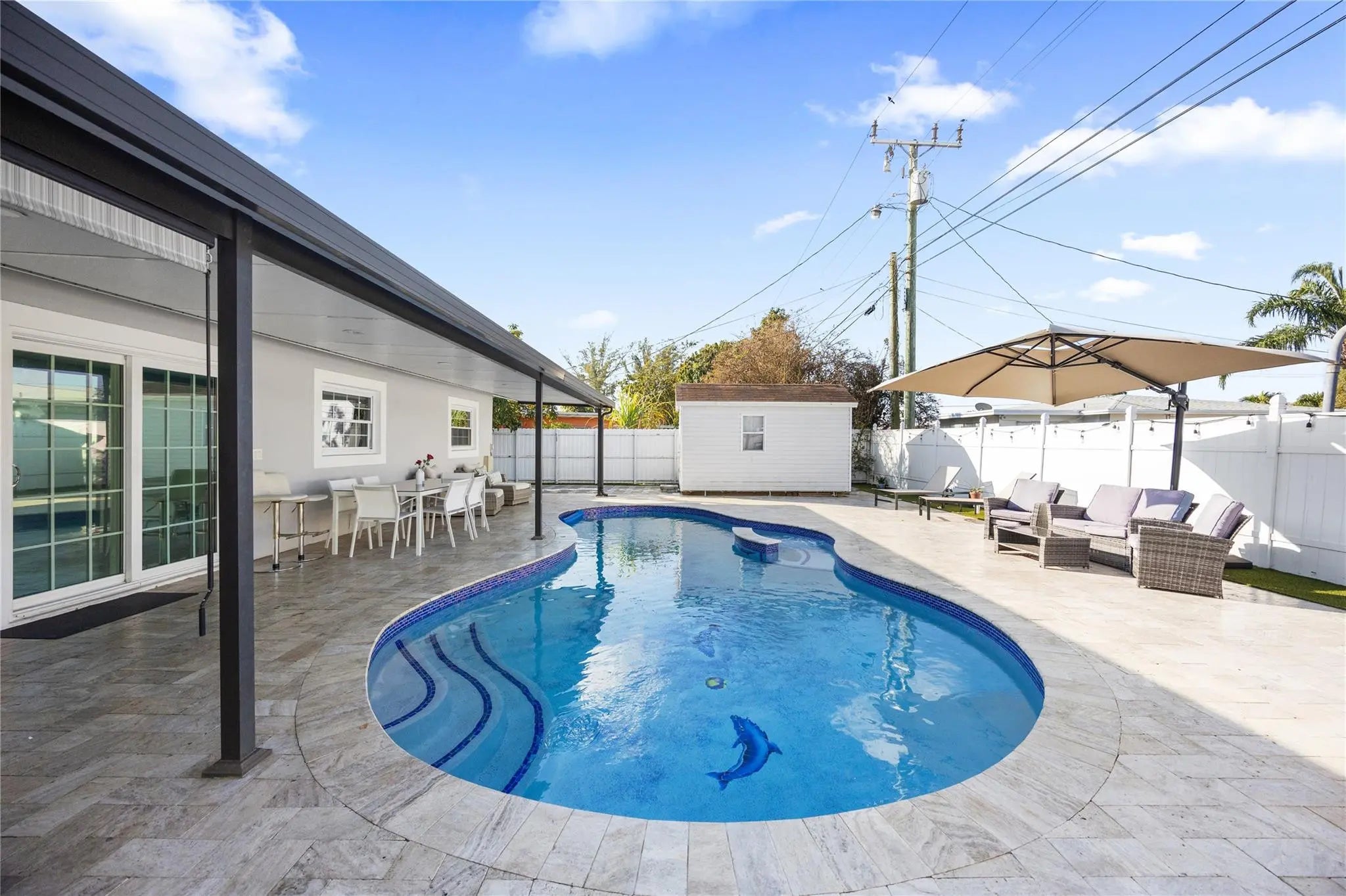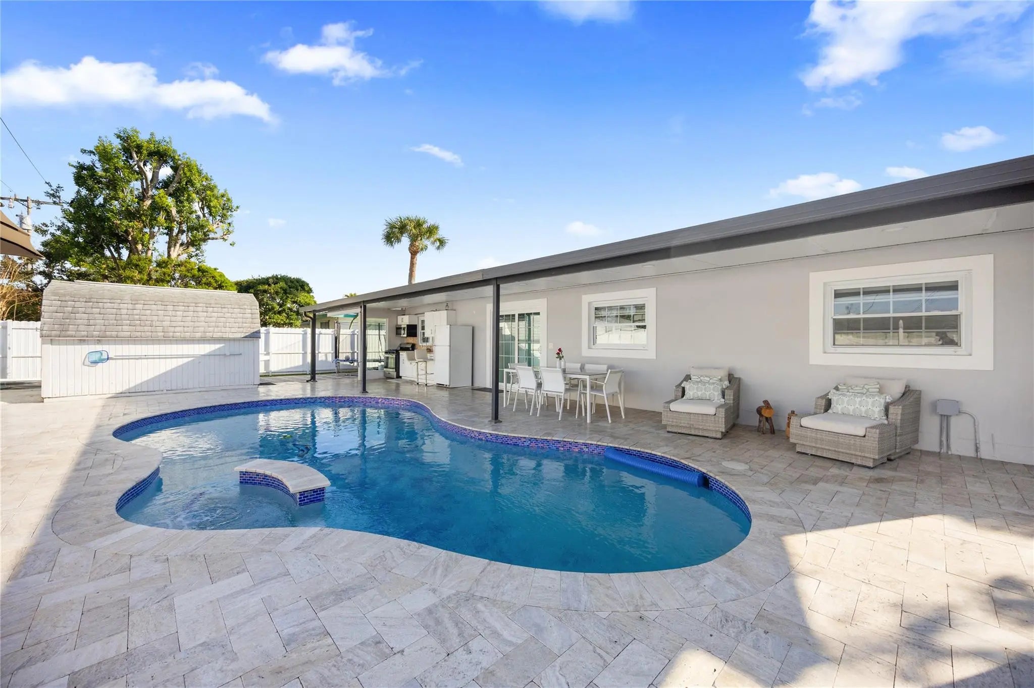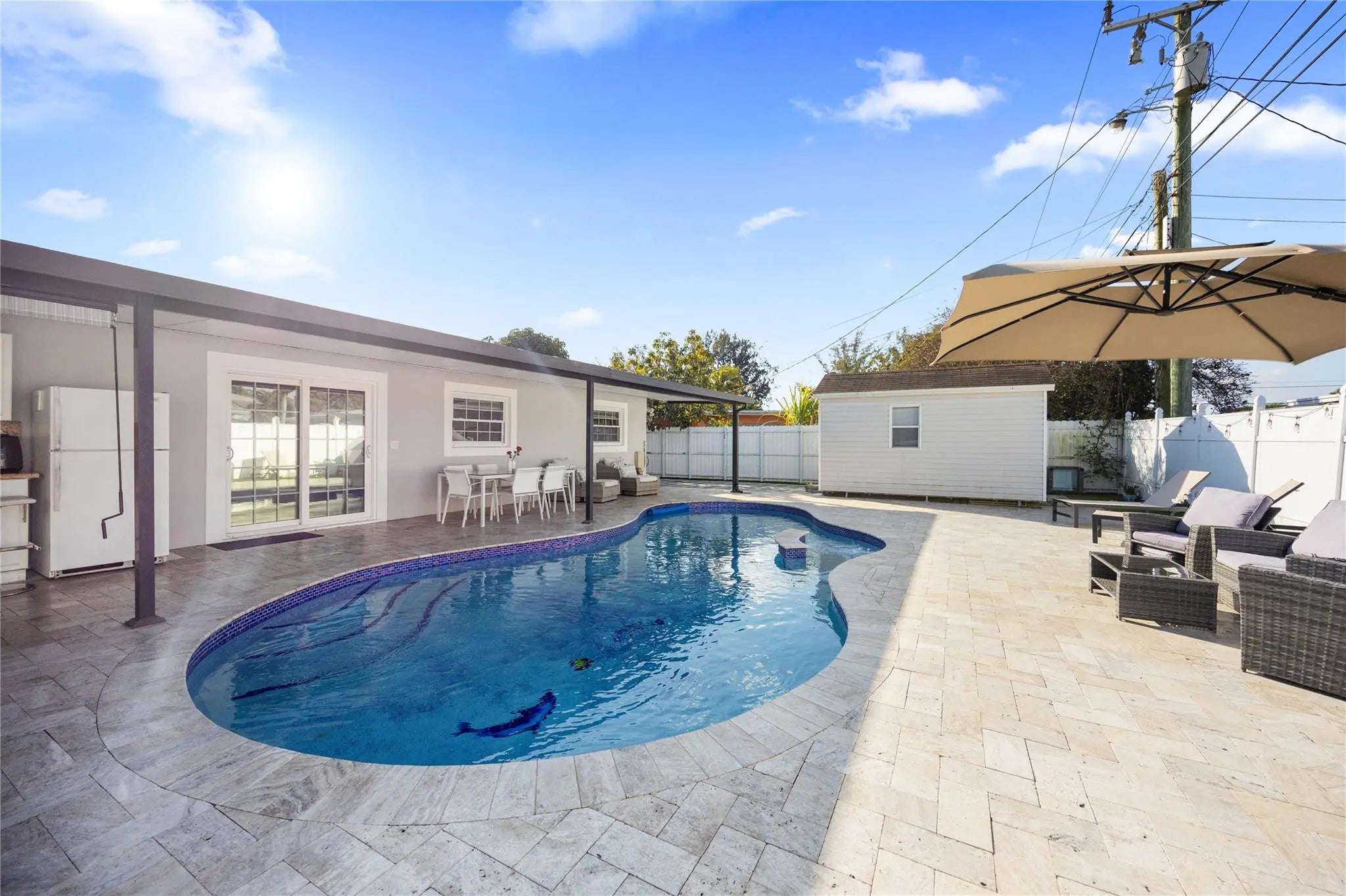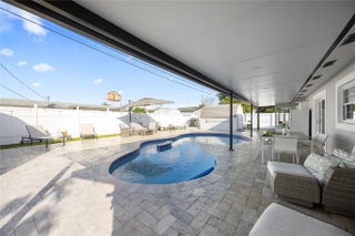 NO HOA, EXCELLENT LOCATION, AND COMPLETE REMODELED. Beautiful 3-bedroom, 2-bathroom home. Includes an additional room with a private entrance, which can be used as a fourth bedroom or workshop. All doors and windows are hurricane resistant. New pool pump, new ac attic duct, white blind in all the windows. Come to enjoy an amazing Oasis patio with a concrete pool with a bar, travertine flooring, a barbecue area, and much more.