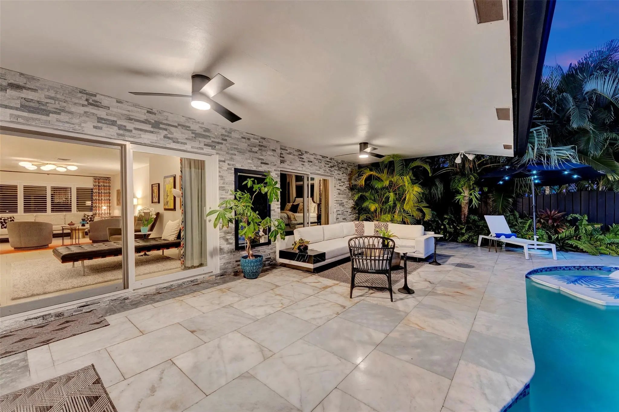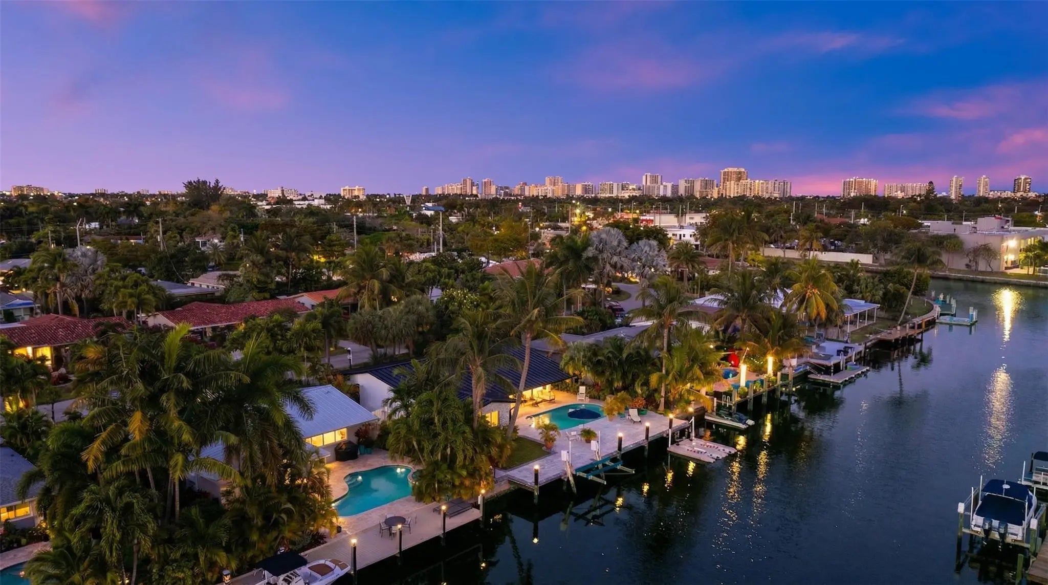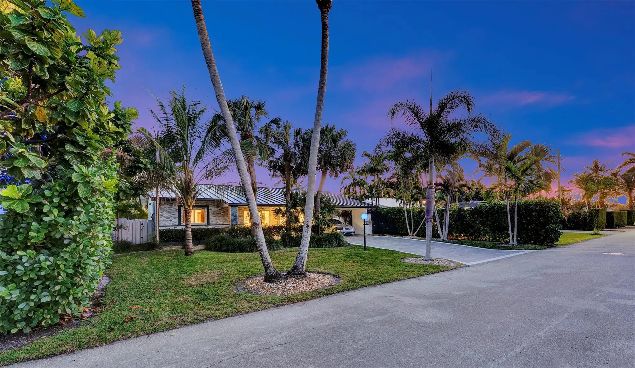 WOW FACTOR! This Mid-Century masterpiece by Michael Gruber Designs is a waterfront dream in Wilton Manors. Situated on a 70’ professionally landscaped southern exposure lot, this 4-bedroom, 2-bath home is packed with features: plantation shutters, custom bathrooms, marble driveway and pool deck, stacked stone accents, hurricane windows, updated PVC pipes, metal roof, newer AC, and a stunning saltwater pool with water features, hot tub, and expansive loggia for evening cocktails. Includes a 24x20 carport with EV charger. Prime east Wilton location, walkable to the vibrant Wilton Drive!