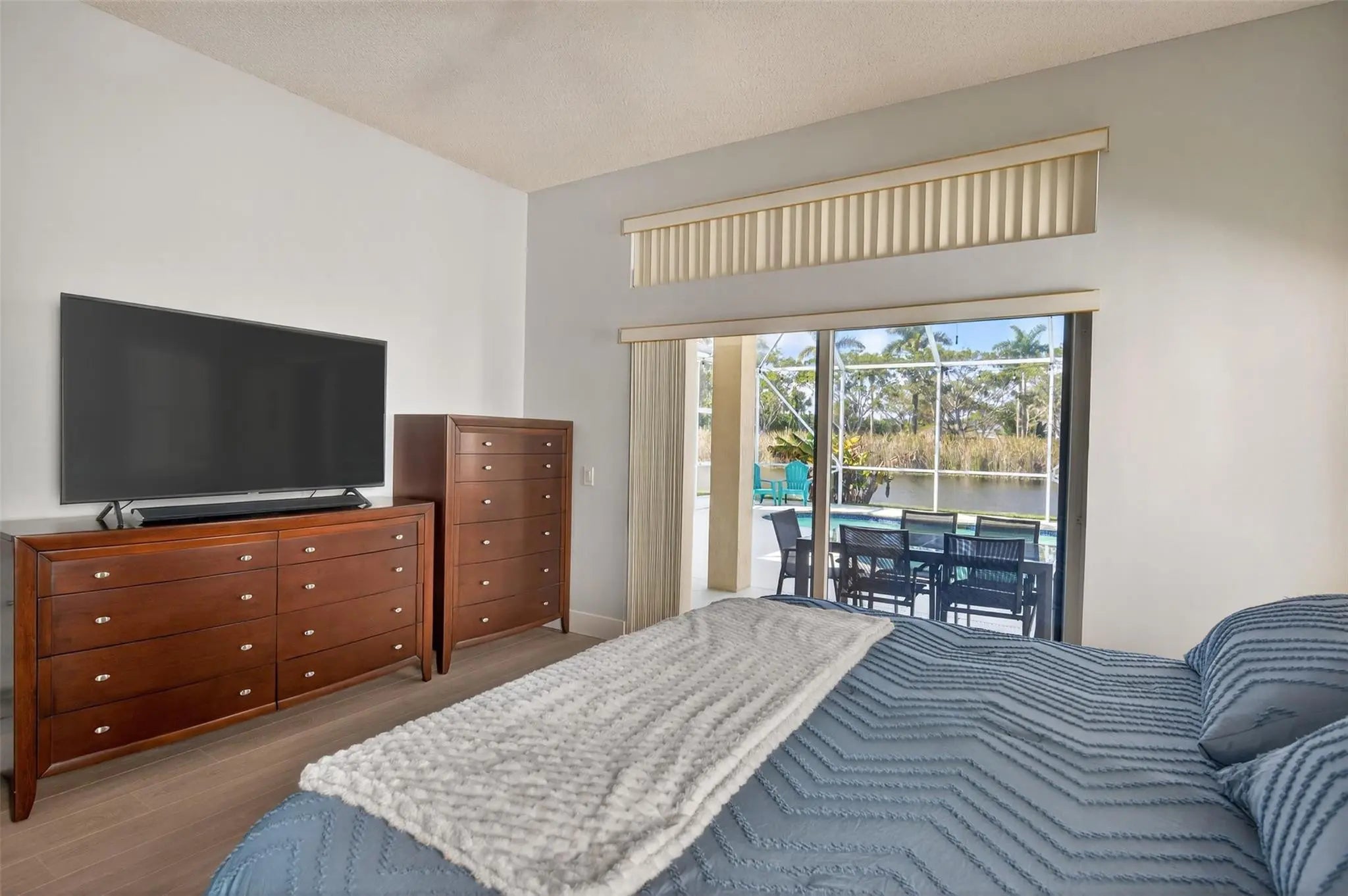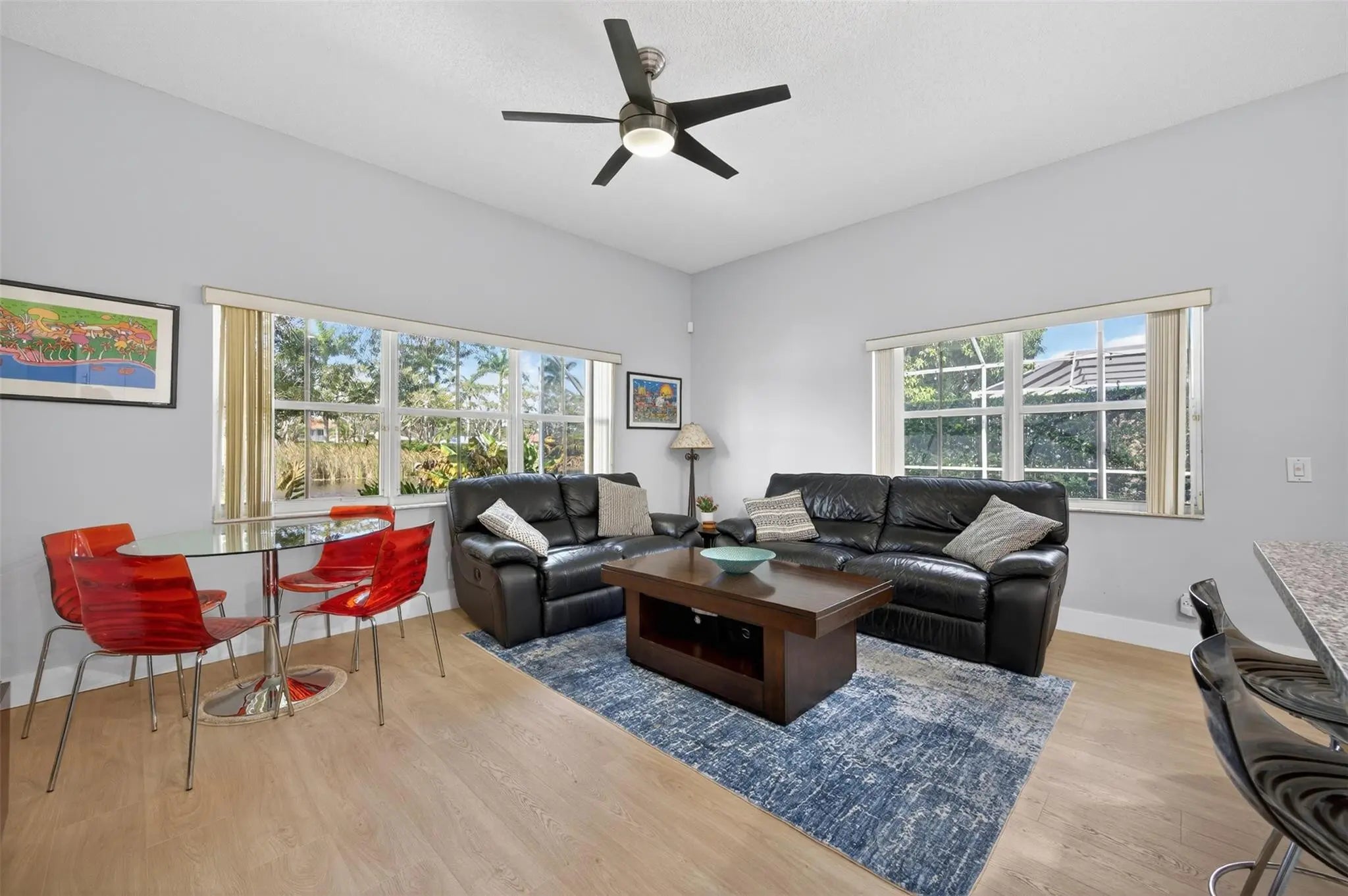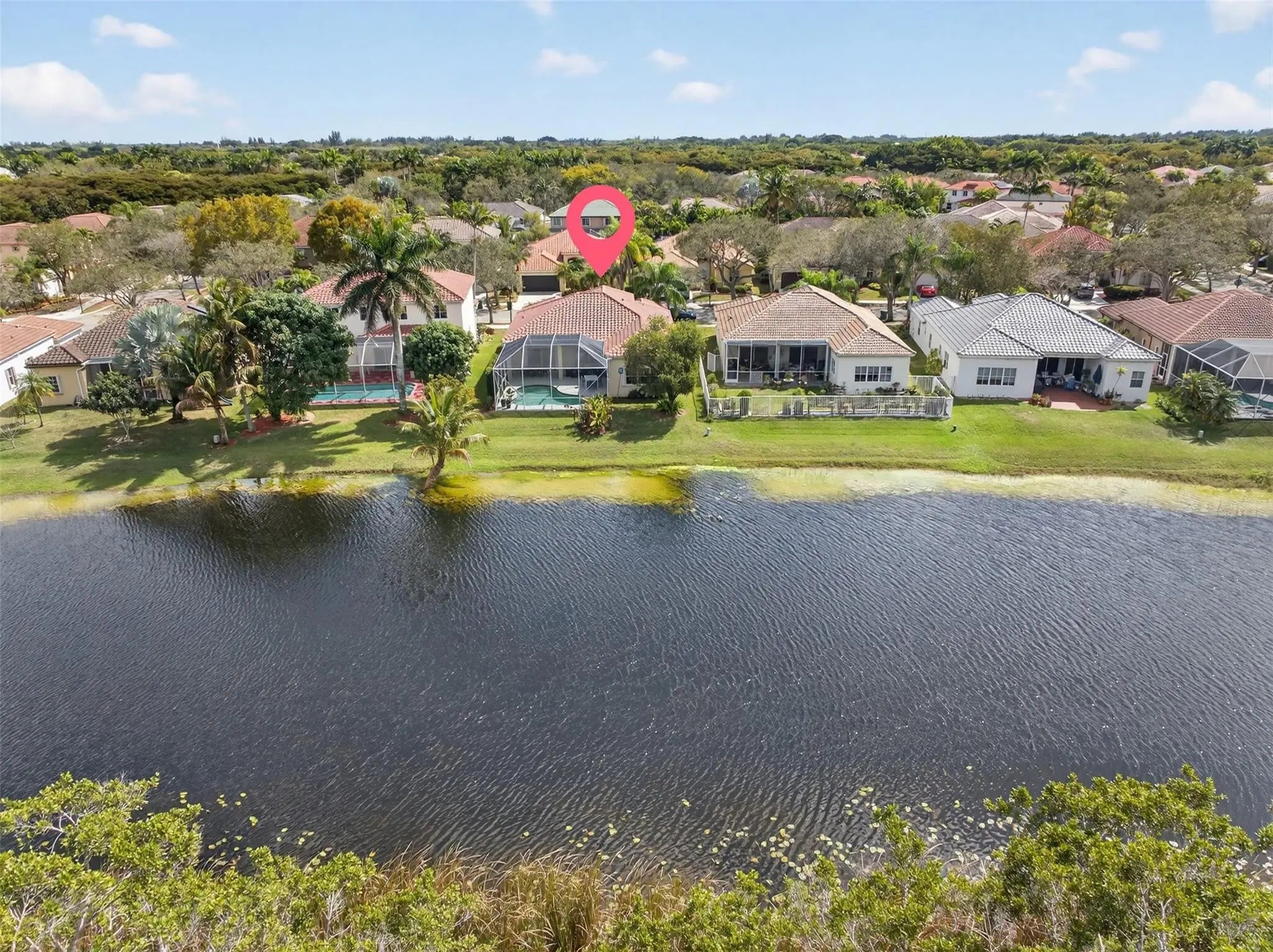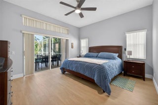 Beautiful one-story lakefront home in the gated community of The Ridges. This 4 bedroom, 2.5 baths residence is in excellent condition and features a NEW roof (2022). Enjoy breathtaking, unobstructed lake views from your private backyard with pool and enclosed patio, perfect for relaxing or entertaining while taking in the serene water views. The home offers laminate flooring throughout, a remodeled kitchen with granite countertops, and a beautifully updated master bathroom. Accordion shutters throughout provide full storm protection and peace of mind. Located in an excellent area near top-rated schools, parks, shopping, and major highways. Community amenities include a clubhouse, pool, playground, pickleball, basketball and volleyball courts, plus picnic and BBQ areas. A must see!