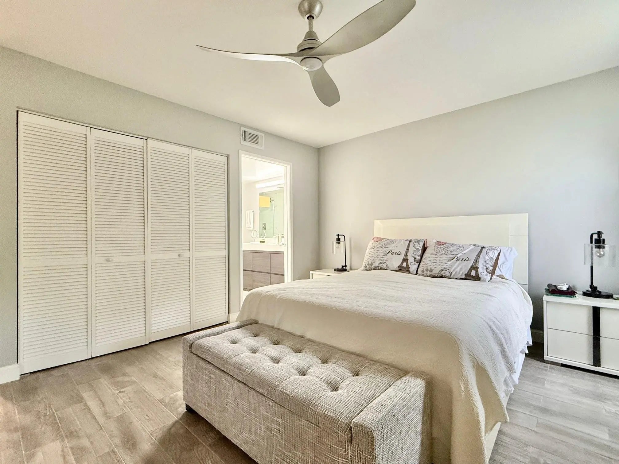 Gorgeous, Updated 2-Bedroom, 2-Bathroom + Den/Office Condo in Gated 55+ Community of Palm Chase! 1st Floor Convenience with Parking Out Front. Courtyard Entrance. Kitchen has Granite Countertops, Wood Cabinets and New Stainless-Steel Appliances. Wood-Look Tile Throughout! Completely Remodeled Bathrooms. Full-Sized Washer & Dryer Inside Unit. Large, Enclosed Patio with Storm Shutters Overlooking Peaceful Canal/Lake. New Light Fixtures Throughout. Recently Painted and Very Well Maintained! Walk to the Clubhouse with Heated/Cooled Pool, Hot Tub, Fitness Rooms, Card Games, Sauna/Steam Rooms, New Pickleball Courts and More! Beautiful Entrance 1/4 Mile off Military Trail with Shopping/Restaurants Close-by. Only a Few Miles to the Beach!