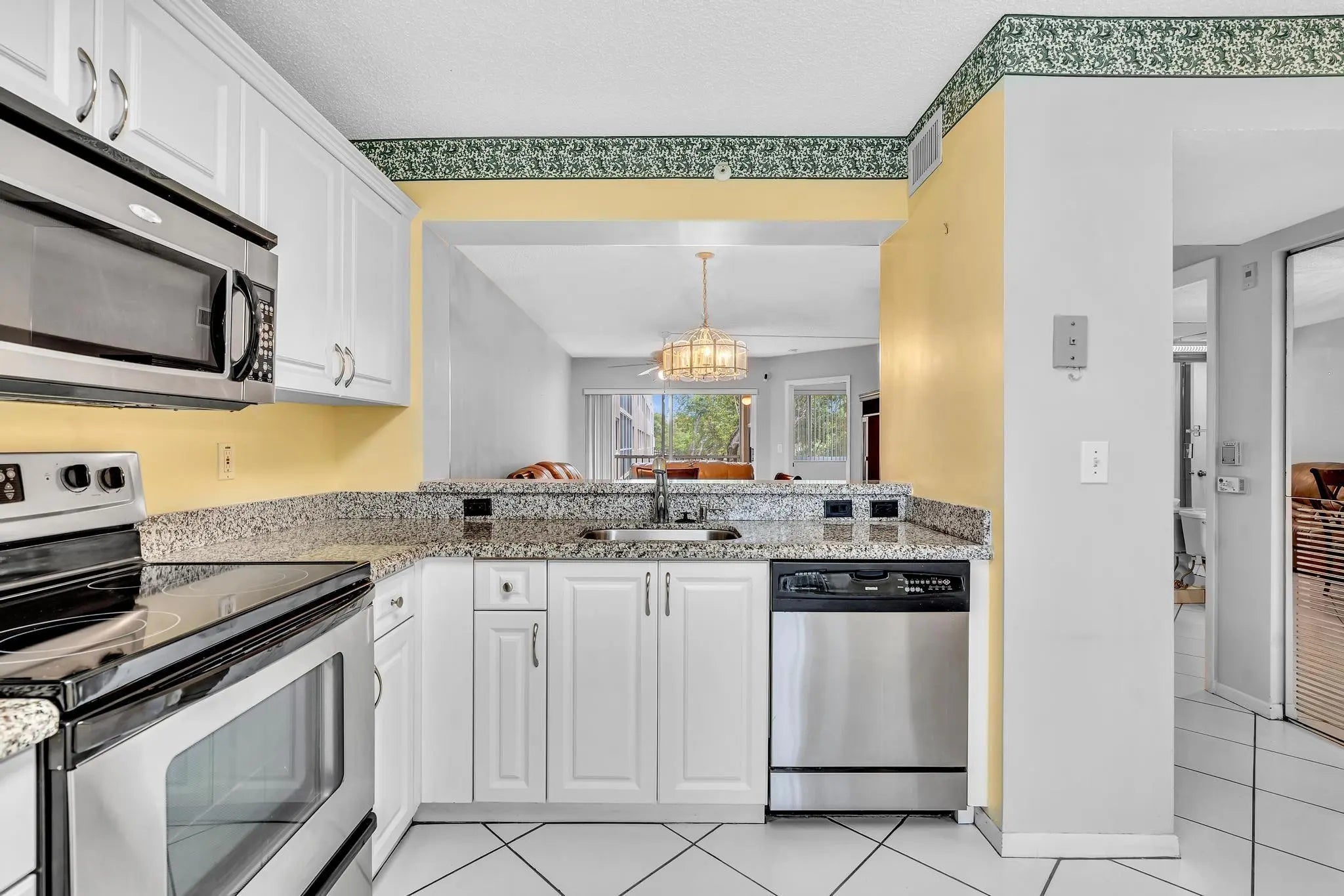 Lovely home, hardly occupied. Gourgase* 2-bed, 1.5-bath condo with stunning WATER VIEW is in the desirable Weldon community. This unique home features a gorgeous, open-plan kitchen with New White Cabinets & Granite Countertop overlooking the living/dining area & screened balcony. Top-of-the-line stainless steel appliances. Beautiful tile flooring in the living area—stunning wood flooring in the bedrooms. The master suite offers walk-in closets. An ample layout & an excellent split floorplan. New Closet Doors in the 2nd bedroom & hallway closet. Light & bright. Large sliding doors stack away to enhance your private & relaxing balcony—parking is next to the unit. *This building is FHA-approved. Enjoy the amenities of Kings Point, including a state-of-the-art performing arts center & theater.