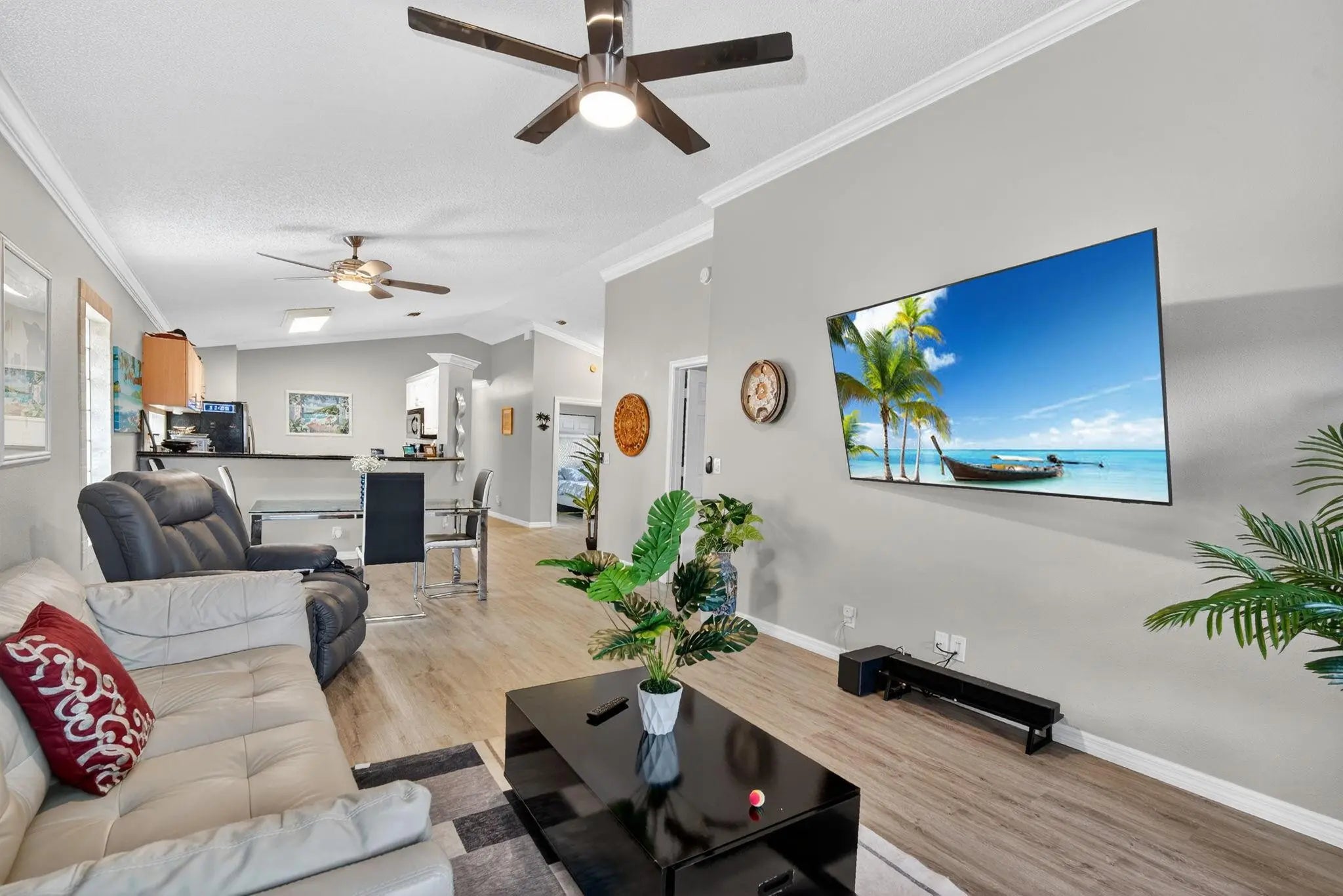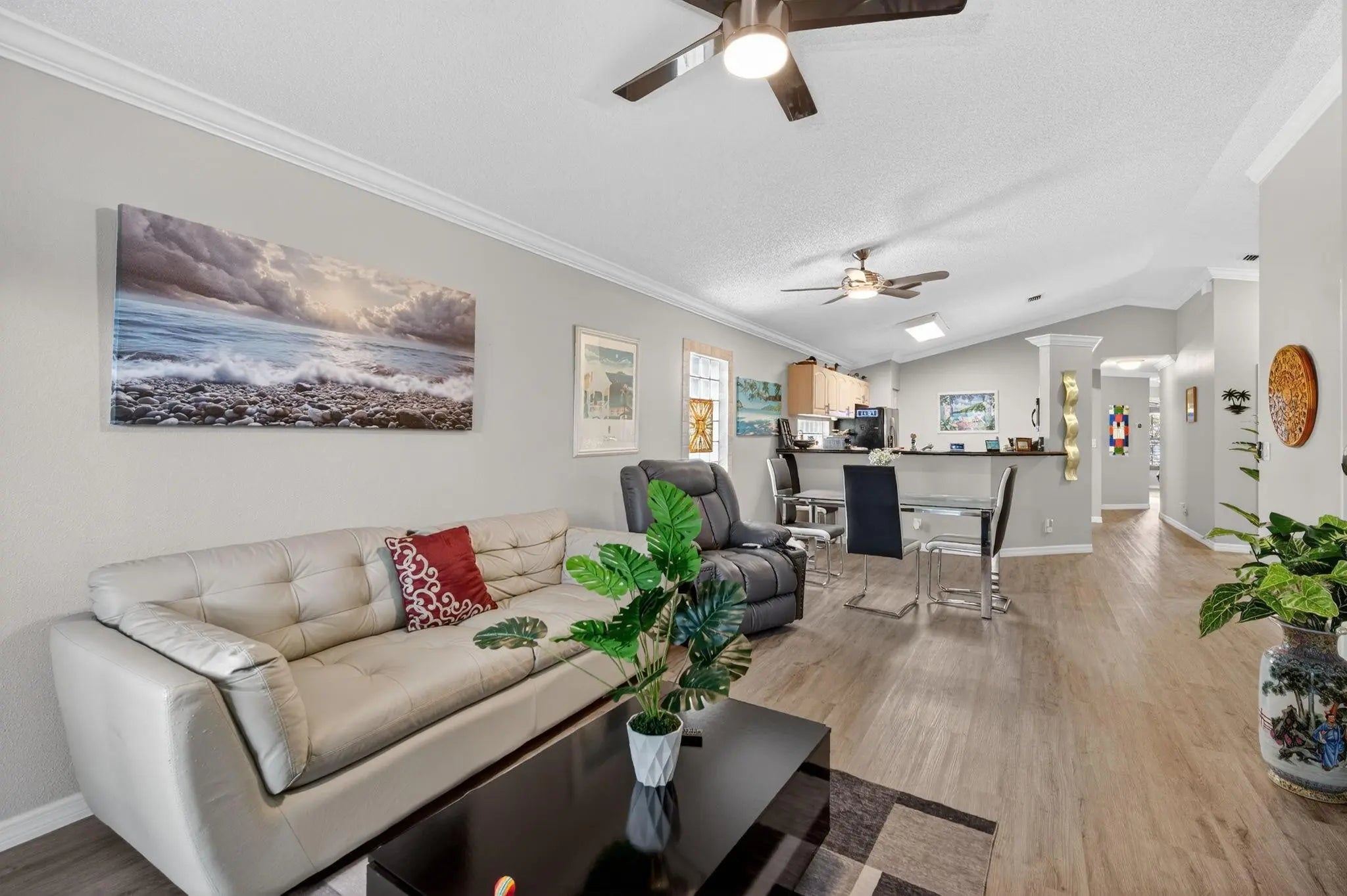 Beautifully maintained home featuring tile flooring throughout the living, dining, kitchen, and bath areas. This immaculate residence offers upgraded appliances and a bright, open floor plan perfect for comfortable living and entertaining. The third bedroom is currently utilized as a den, providing flexible living space ideal for a home office or guest room. Very low HOA. Located in the desirable Lake Charleston community with excellent amenities and convenient access to shopping, dining, and top-rated schools.