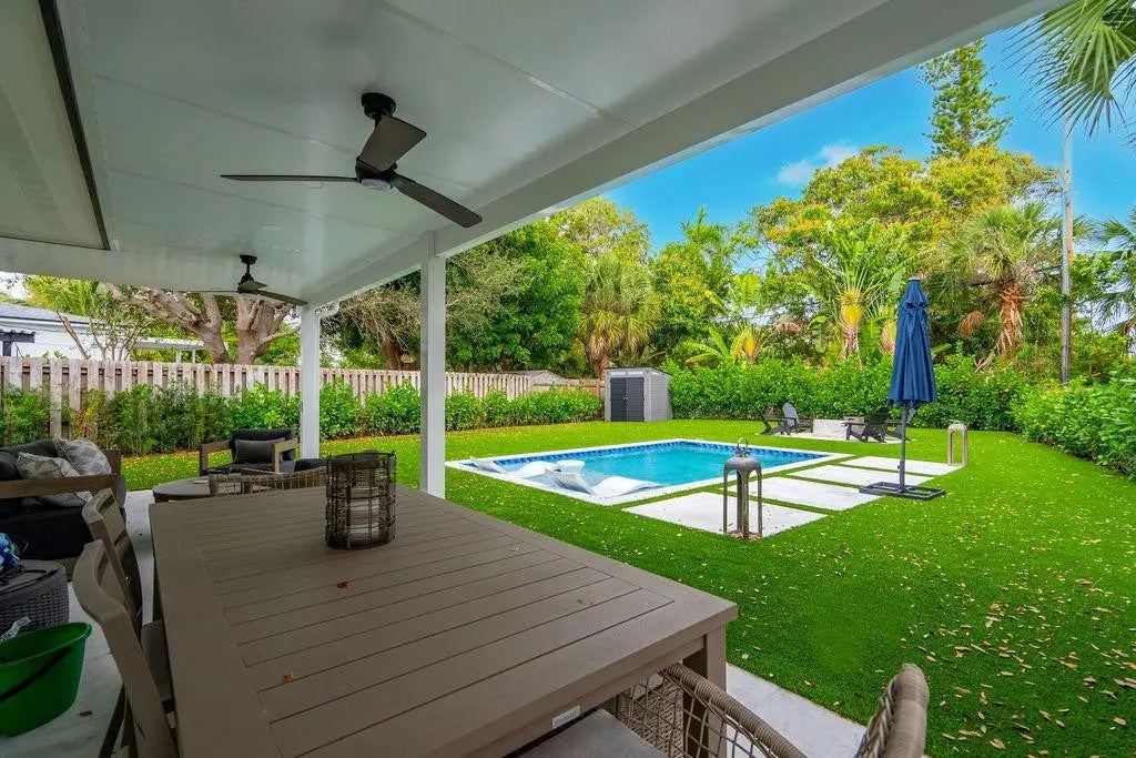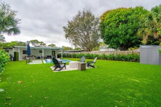 Cozy, beautifully remodeled home featuring a stunning brand-new pool and expansive artificial turf yard. Ideally located just 1.5 miles from the beach, close to top restaurants, shopping, and with easy access to I-95. The updated kitchen and baths complement porcelain tile flooring throughout, impact glass, and a dedicated laundry room. The backyard is a private oasis with marble flooring under the covered patio and lush artificial turf surrounding a modern pool with sun shelf. A neighborhood park with playground is just a few homes away and across the street. This is the one you’ve been waiting for!