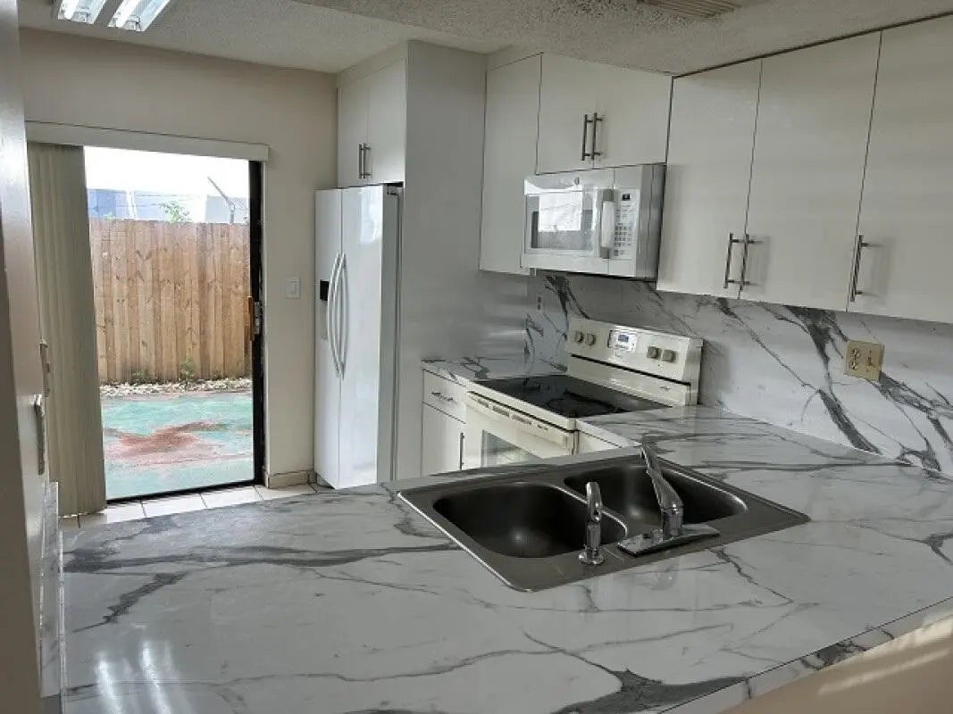 Move in ready this spacious 1st floor unit with 2 bedroom 2 bathrooms with 2 assigned parking, remodeled kitchen, washer / dryer in unit, concrete fenced patio for BBQ, walking distance to restaurants, and shopping centers, minutes away from 826 and major corridors for easy travels, well maintain community with new metal roofs and will be painted soon. 1 parking in front of unit door. Section 8 welcomed, easy to show.