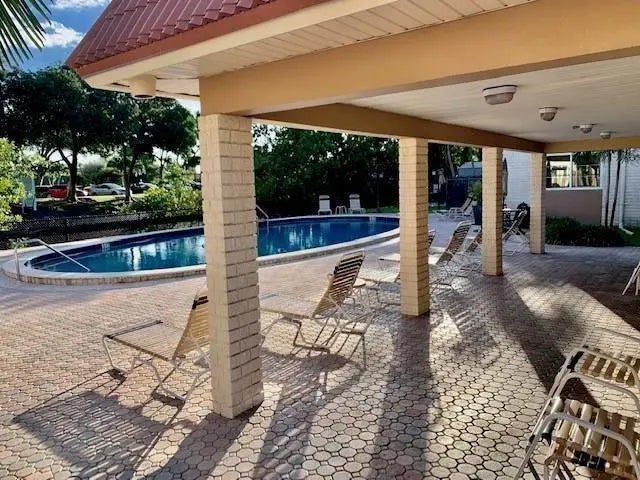 One bedroom, one bath located in Manor Grove. Screened in patio facing canal. Sunny south side. First floor with newer laminate flooring. Laundry room a few doors down the hall. Pool and clubhouse the next building over. Water, sewer and trash included. Association requires a 675 score. Complex located close to 'The Drive', beaches and highways. Association allows one pet under 20lbs with a pet deposit.