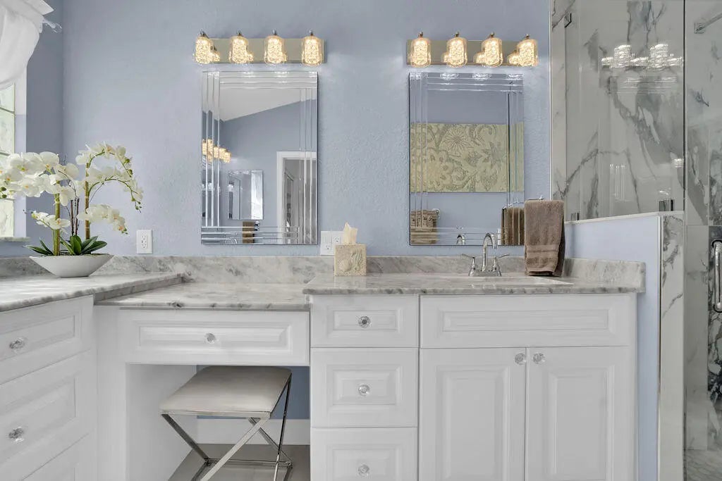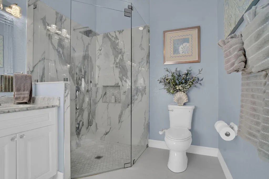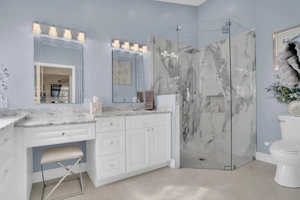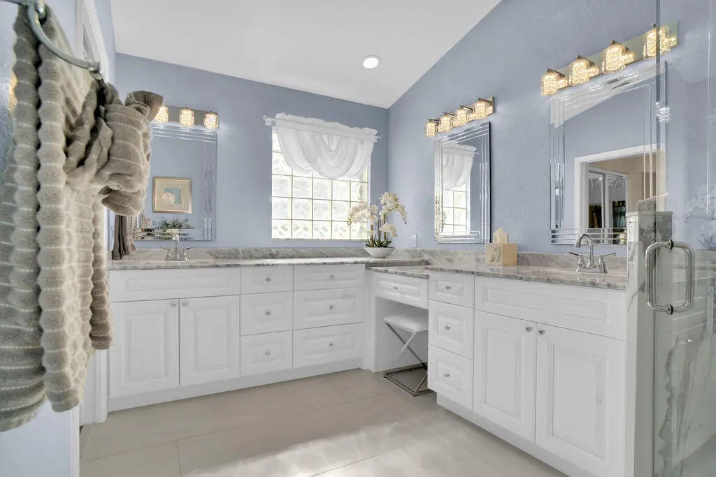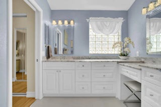 Exquisite lakefront home — exceptional high-quality renovations. New $42k gradient gray tile roof. Grand cathedral ceilings & ceramic tile throughout. Kitchen boasts solid wood cabinets, exotic pour granite countertops w/ sculptured backsplash, pantry, motion activated undermount lighting & pull-out cabinet drawers for your modern comfort. Showstopper-Master ensuite loaded with chandelier & mirrored walk-in closet, pristine Master bath w/ Italian marble countertops, custom self-closing drawers, recessed & crystal mirrored lighting fixtures, mood lit musical exhaust fan. For your comfort, elegant triple vanities w/ seated make-up vanity & seamless glass door shower w/ rainforest showerhead & hand wand. Enjoy a serene lake view from your patio or breakfast nook. Natural lit large LR, DR & BR