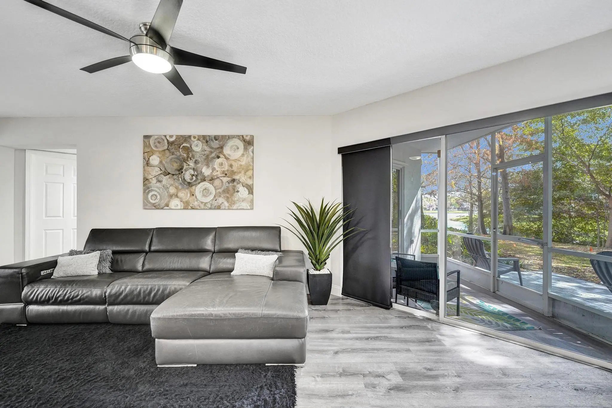 Waterfront living made easy! This fully renovated 3-bed, 2-bath first-floor condo surrounded by lush landscaping...a private oasis. Enjoy a new kitchen with updated appliances, remodeled baths, luxury vinyl plank flooring, LED lighting, and a new water heater. Bedrooms offer spacious walk-in closets. No poly pipes! Relax on your screened patio with serene water and tropical paradise views, just steps from the pool with new furniture and landscaping. 1-car garage and extra-long driveway fits multiple vehicles for your guests. Maintenance covers exterior insurance, roof, exterior maintenance, and common areas. 30-year certification completed in 2022, fully funded reserves, pet friendly, close to shops, Central and Sunset Parks, dining, highways and more!