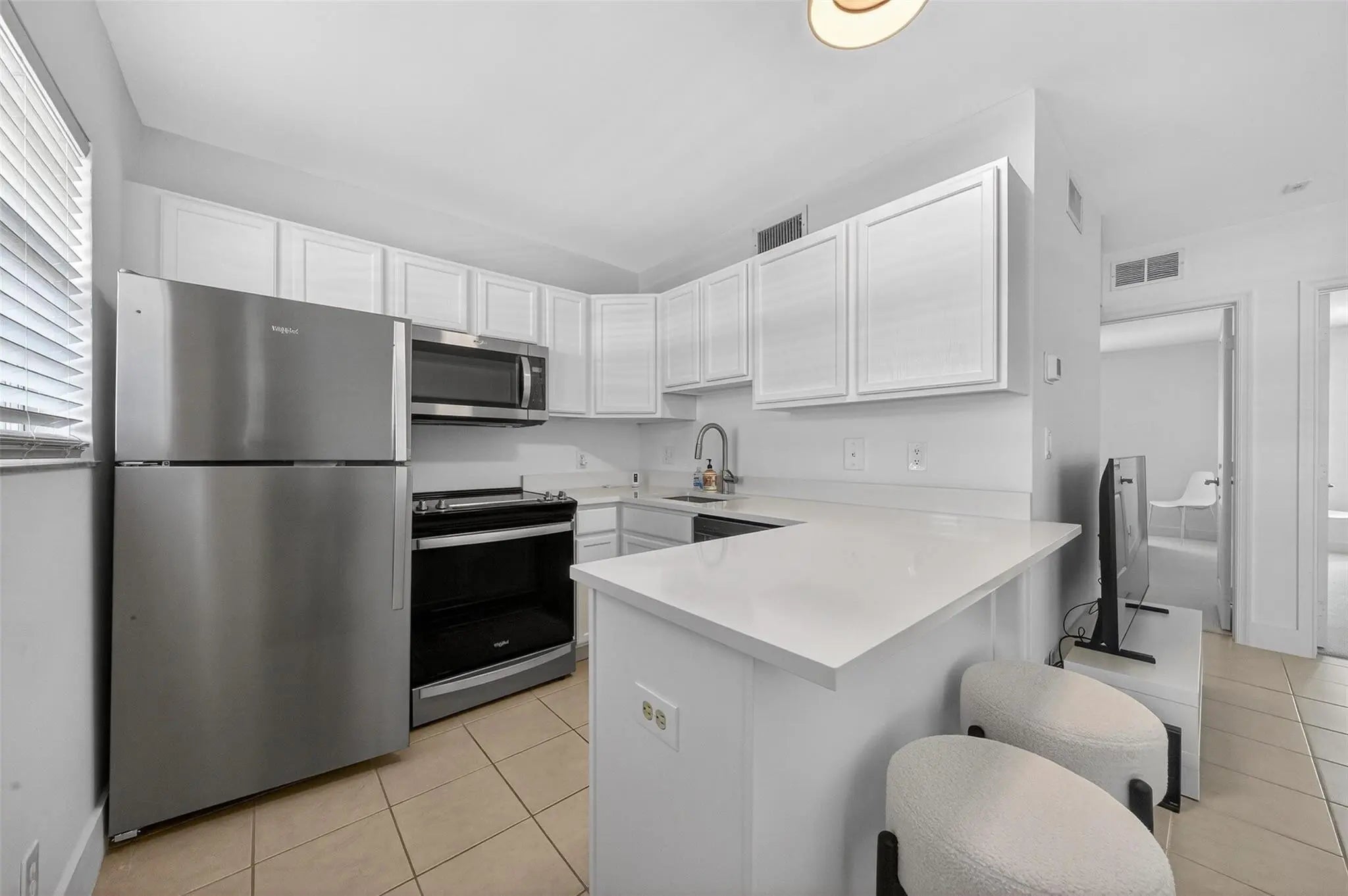 Don’t miss this freshly renovated 2/1, 2nd floor unit, just a few blocks off Wilton Drive. This move-in ready home features newer stainless steel appliances (2024), quartz countertops, breakfast bar, painted cabinets, new sink/faucet, and new kitchen ceiling light. Popcorn ceilings removed, walls smoothed, complete interior paint, new baseboards, and crown molding in both bedrooms. Updated bath with new vanity, sink/faucet, toilet, and light. New carpet in both bedrooms, custom closet built-ins. Newer A/C (2023), water heater (2023), impact windows/door, and building roof (2024). Gated, Key West style complex with heated pool. Excellent location in this pet friendly building steps to the The Drive. Fully Funded Reserves