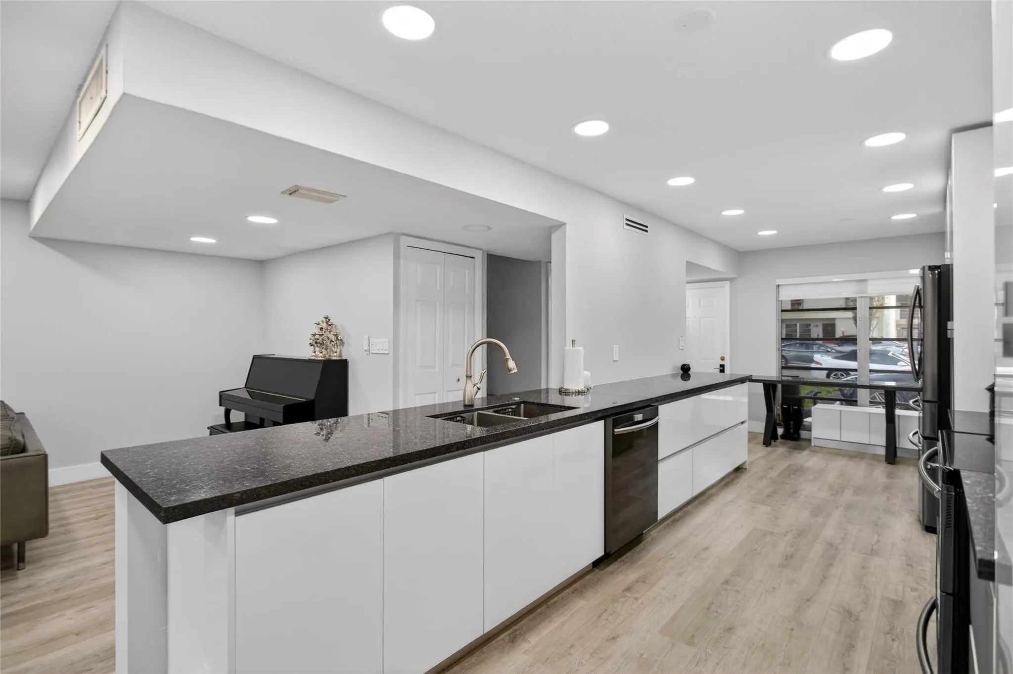 Beautifully clean, modern, fully updated townhouse in the heart of Hollywood, perfect for families seeking convenience. Ideally located near shopping, places of worship, and T.Y. Park. Bright minimalist interior with granite countertops, abundant counter space, smart refrigerator, double oven, and touch faucet. Spa-inspired master shower, separate laundry room, ample closets, outdoor cameras, advanced air system, and TV-ready walls. Manicured low-maintenance backyard and 2 parking spots right outside. Every detail reflects comfort, efficiency, and modern style…like living in South Beach with an awesome community.