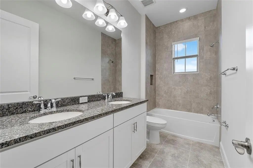 Awesome 2-story New Construction Home with a beautiful lakefront view, with 5 bedrooms and a den or could be an office, 4.5 bathrooms, and a 2-car garage. This gorgeous, expansive home comes equipped with the full stainless-steel package in a gourmet-style kitchen and Quartz countertops. Huge kitchen center island to bring all the Family and Friends together. Huge Laundry room with laundry tub, complete with lower cabinets for storage. Impact windows throughout. This secure community has an amazing Clubhouse with an outdoor patio and vacation-style amenities, including a resort-style pool, kids' play zone, Bocce Ball, and top-of-the-line fitness center.