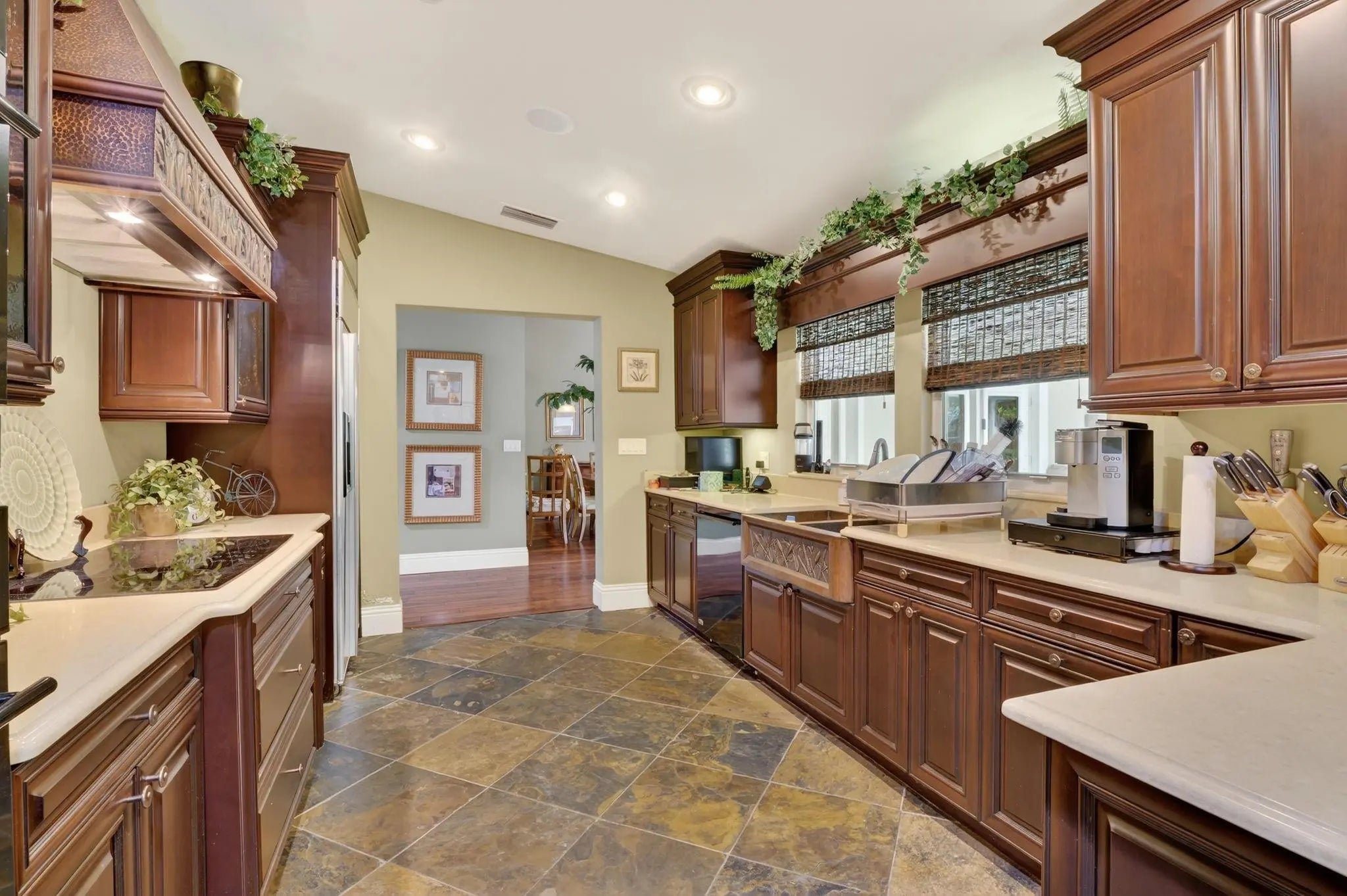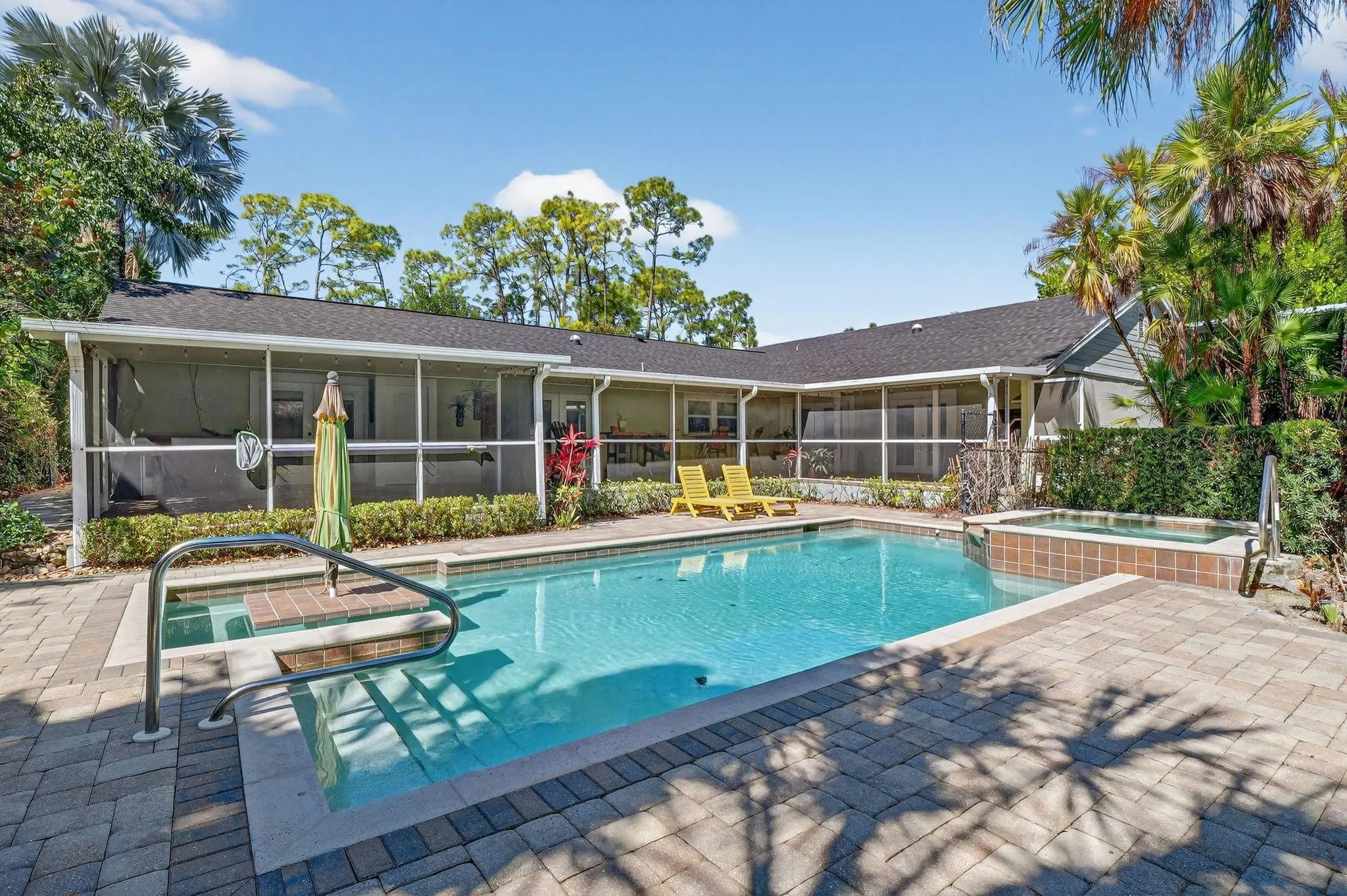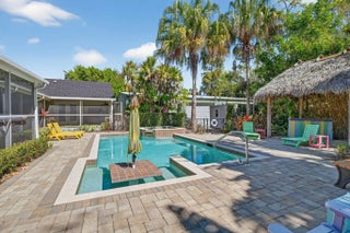 This unique, custom-built 3-bedroom, 2.5-bathroom pool home located on a private 1.25-acre lushly landscaped lot in prestigious San Carlos Estates neighborhood. This property features a heated pool with a spa, and a built-in table with stools, and a bench. The home includes a substantial 5-bay mechanic's garage with an office, which is ideal for a business and offers ample room for an RV or boat. Interior and exterior highlights include French doors and hardwood flooring, chef’s kitchen with dual-tone cabinetry, high-end appliances, and quartz countertops, pass-through window leading to the patio, pool, tiki area, summer kitchen great for entertaining. The home is located in a quiet neighborhood with no HOA, providing close access to shopping, restaurants, US-41, I-75, and local beaches.