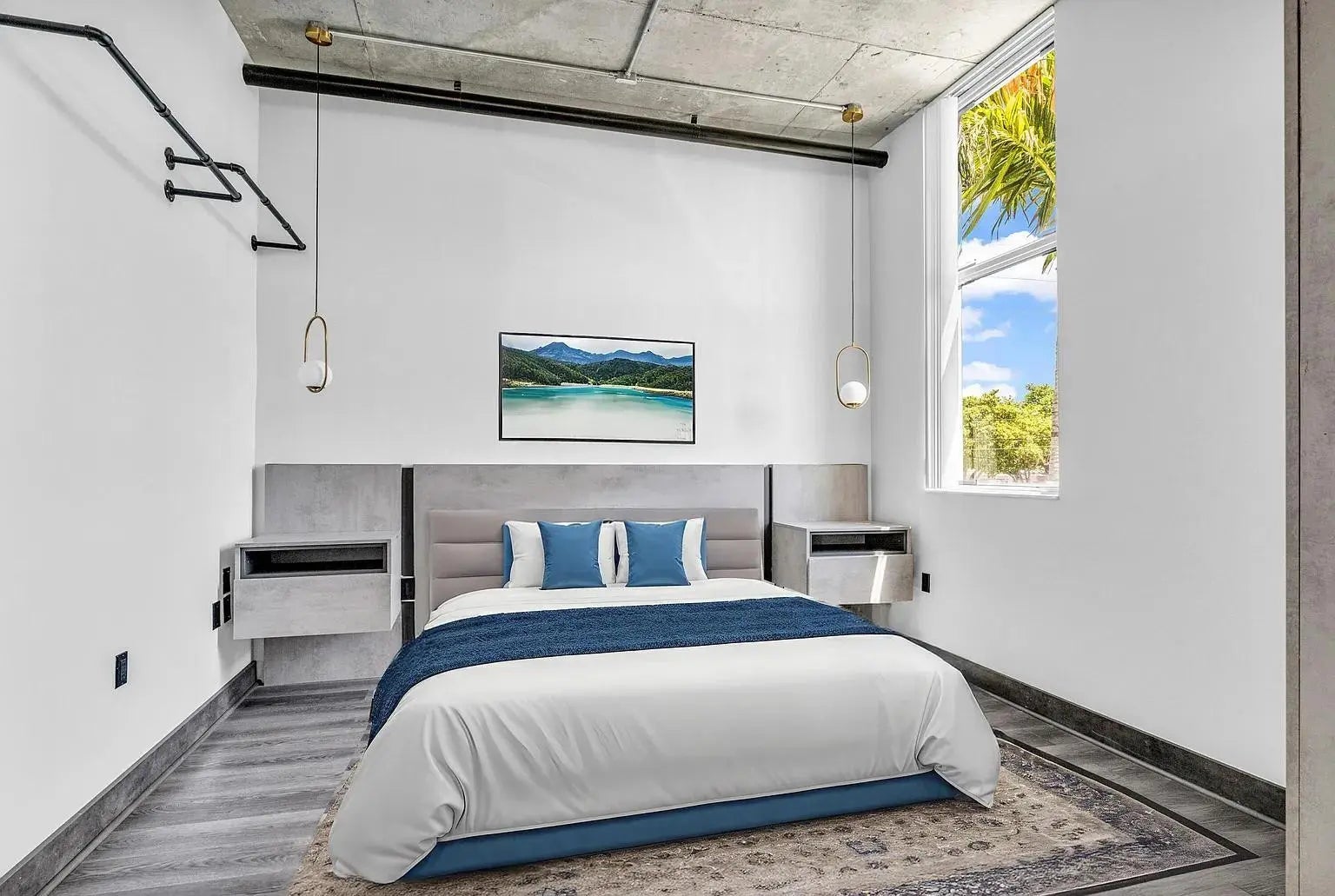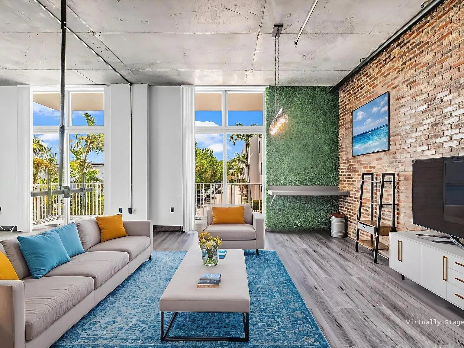 Unique New York Loft style in Florida! One-of-a -kind. This beautiful open concept loft blends industrial-inspired design with urban convenience. Fully customized, including a new floor, exquisite bathroom with dual sink, a wood wine bar, real brick walls, updated lighting fixtures, concrete ceiling with exposed pipes connections, and special custom-made furniture INCLUDED. Extensive private balcony, Building amenities: Pool, private assigned parking, storage, etc. PETS allowed! Located in the heart of Hollywood, just walking distance to restaurants, shops, parks, and only a bike ride away from Hollywood Beach and boardwalk. Live the New York lifestyle for a quarter of the price! (Short-term rental appv, 3 months minimum). 1 YEAR PAID HOA + PAID current assessment.