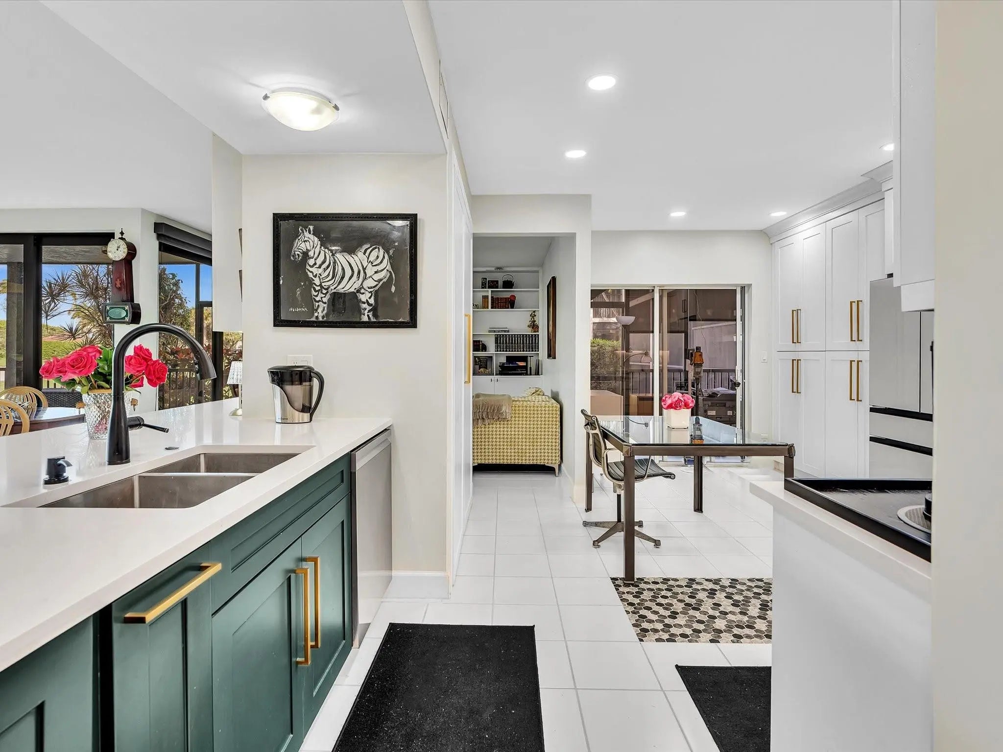 Southwinds at Boca Pointe Country Club, NON-mandatory membership community - VILLA-CONDO with magnificent SUNSET views over the lake and the golf course. This first-floor 2-bedroom, 2-bathroom home has been FULLY RENOVATED to a high level with premium finishes throughout. The property features brand-new, high-quality HURRICANE WINDOWS and sliders with a transferable 10-year warranty, electric blinds in the main living areas, and plantation shutters in the bedrooms. Enjoy tranquil lake views and sunsets over the golf course from the main living areas, enhancing the indoor-outdoor lifestyle within one of Boca Raton’s most desirable communities. Nearby Town Center Mall, A+ Schools, and the best restaurants. 15 minutes to the beach.