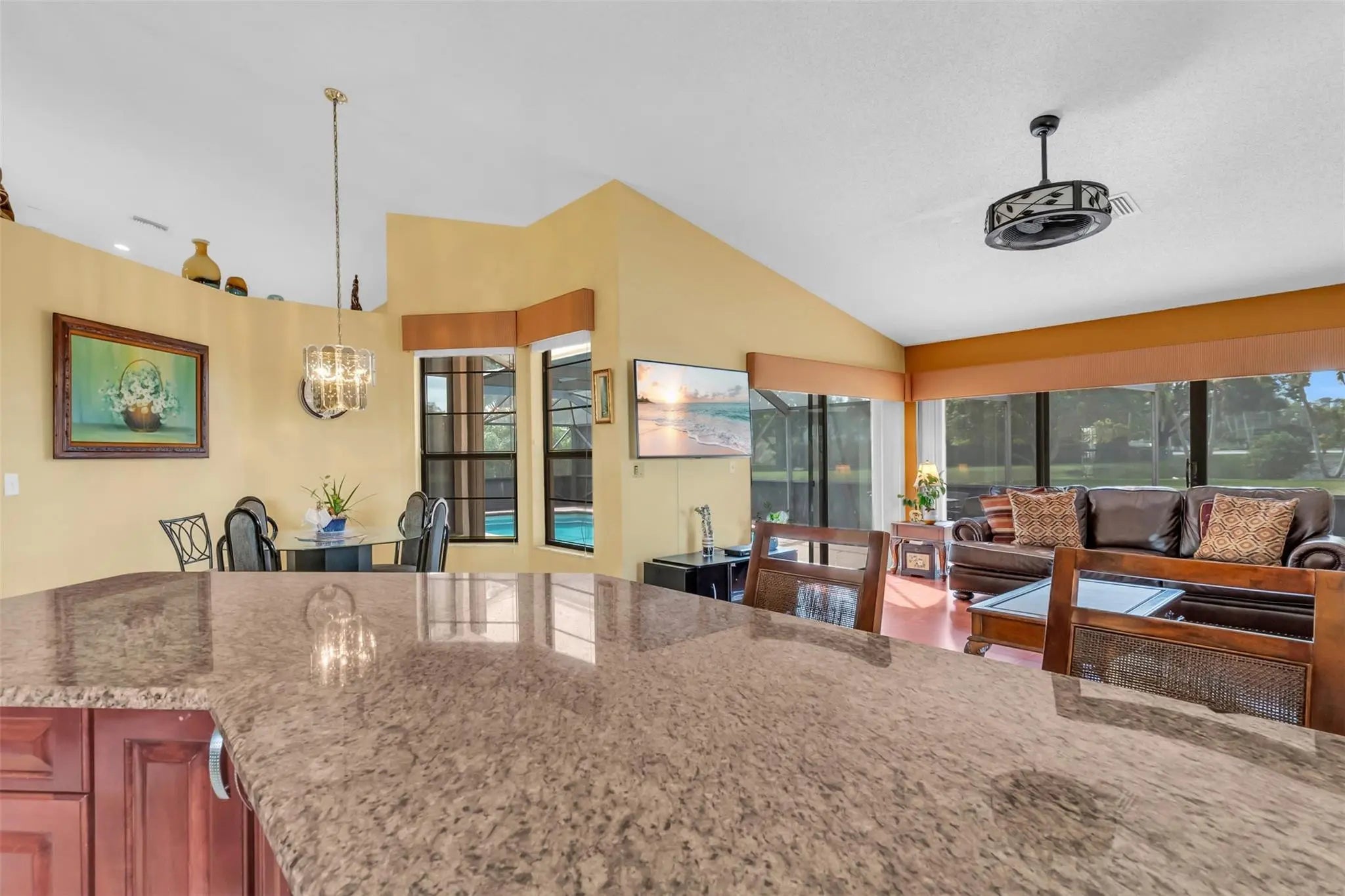 Live the Jacaranda Lakes lifestyle in this spacious 4BR/2.5 bath pool home on a huge 0.47-acre canal lot. Tropical backyard oasis with fruit and coconut trees, huge screened pool and multiple patio access points. Inside, 2,829 sqft of light-filled living has a formal living/dining room, staggered wood floors, tile walkways and a granite island kitchen with solid wood cabinetry, pantry and wine rack. Downstairs offers 3 bedrooms and a upgraded pool bath with dual sinks and exterior door. Private upstairs owner’s suite boasts a massive walk-in closet, spa bath with jacuzzi tub and walk-in shower, and a balcony overlooking the water. Jacaranda residents have their own park, nearby Central Park, Central Park Elementary and and walking distance to Publix, shopping, and plenty of Dining options.