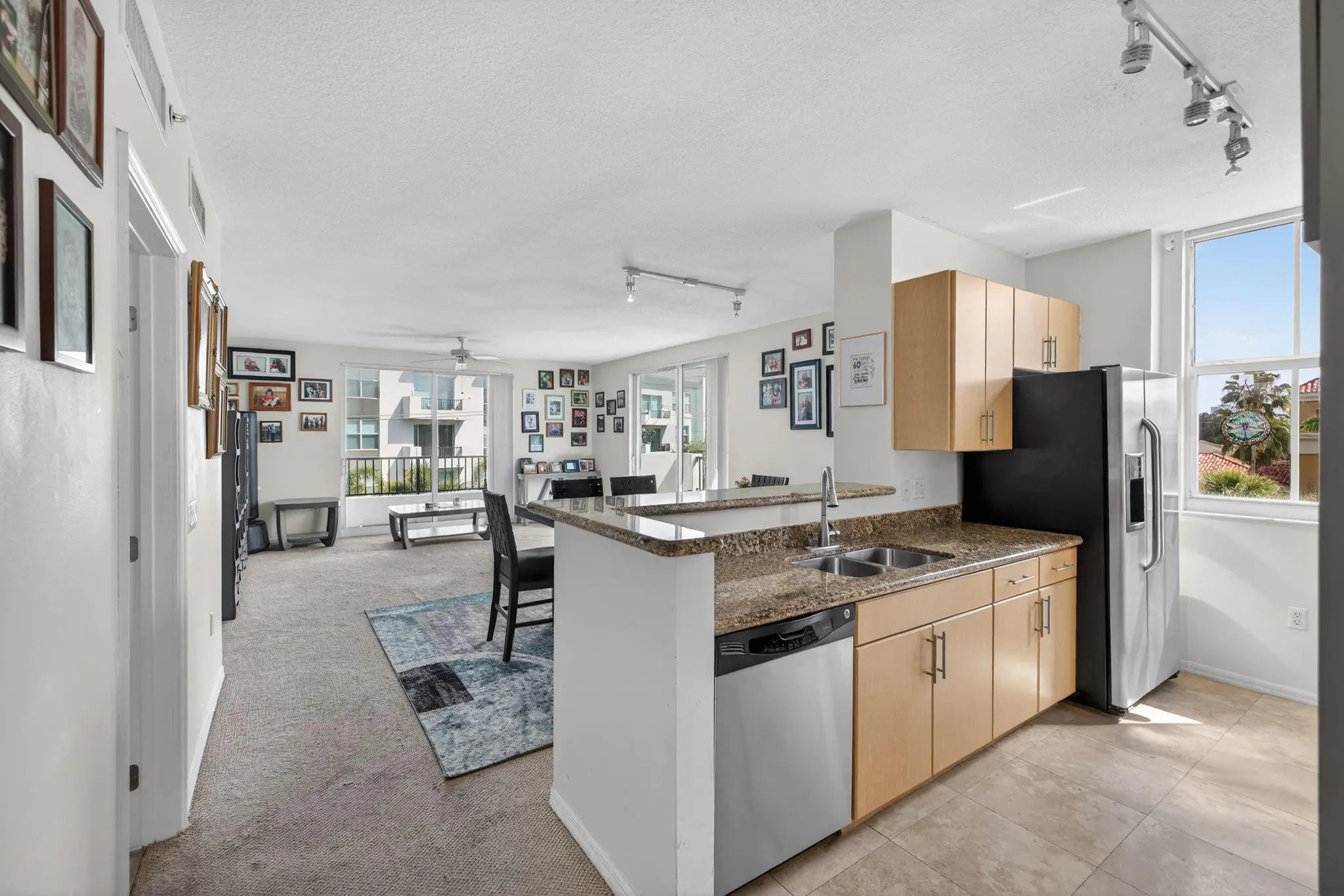 Extra-large 2 bed 2 bath Corner condo faces east, bringing in beautiful morning light throughout the home. The unit features granite countertops, stainless steel appliances, hurricane-impact windows, in-unit washer & dryer, high ceilings, & TWO open balconies! As a true corner residence, you’ll enjoy exceptional privacy. Great opportunity to customize the space to your taste. Internet & pest control are included in the maintenance fee. The building is pet-friendly, has a new roof, & allows rentals in the first year (2 leases per year, min 6 months). Amenities include: pool & Jacuzzi, sauna, fitness center, club room, business center, assigned covered parking with ample guest parking, EV charging stations, and an on-site property manager.