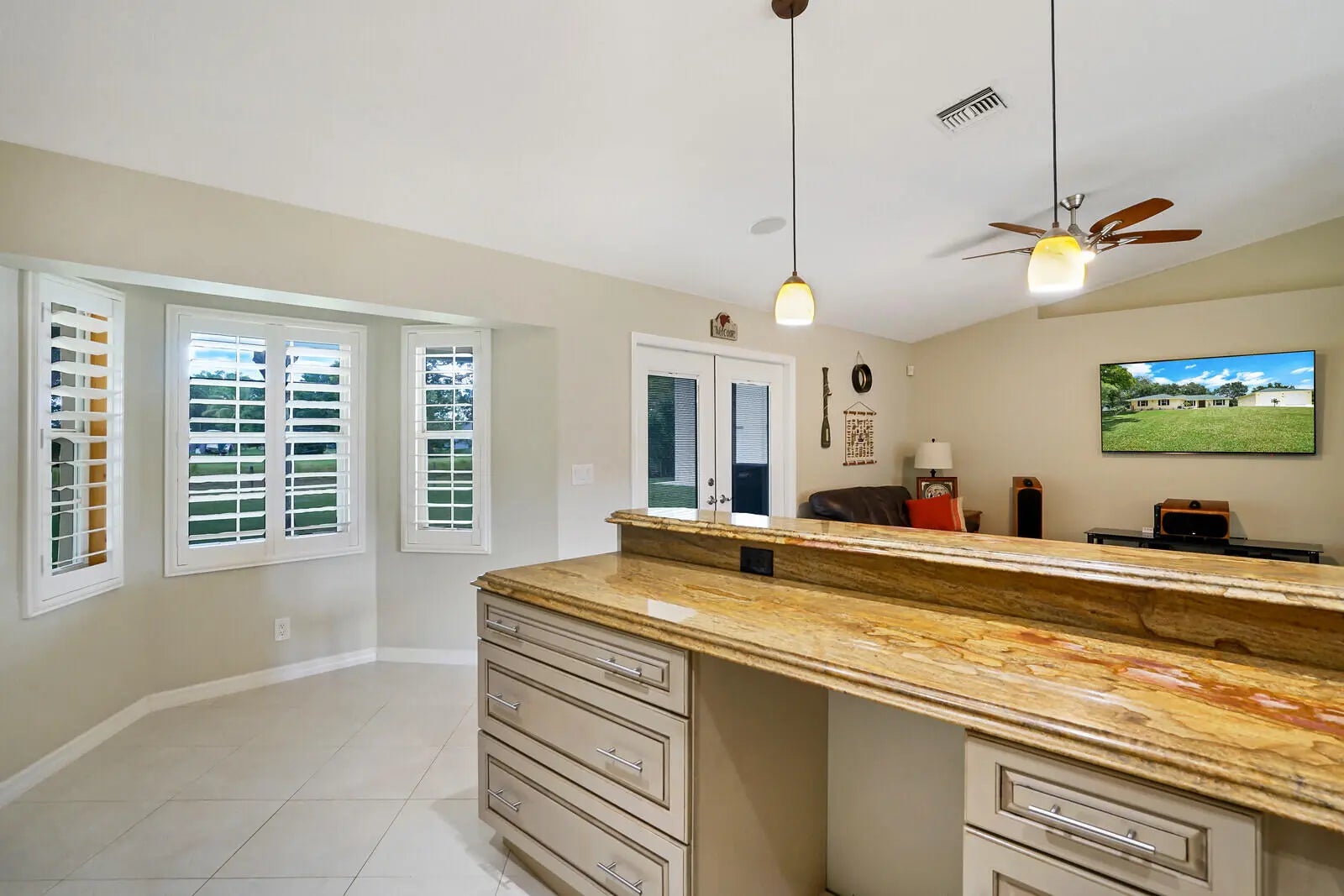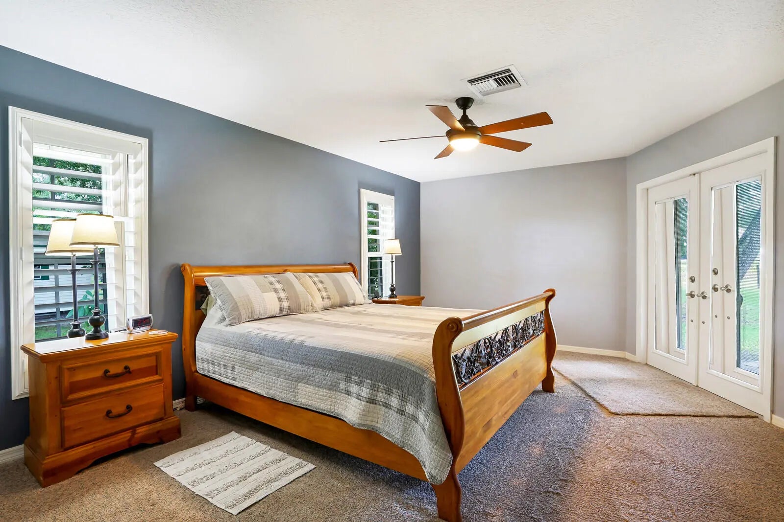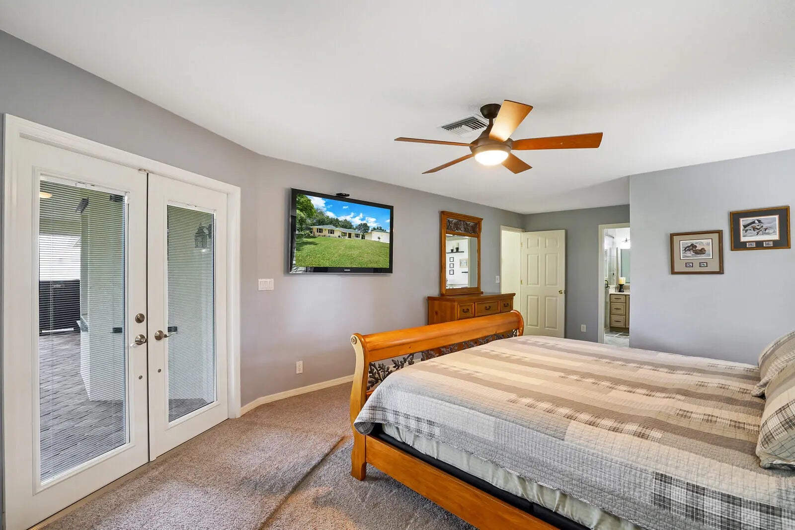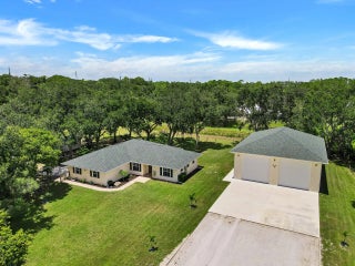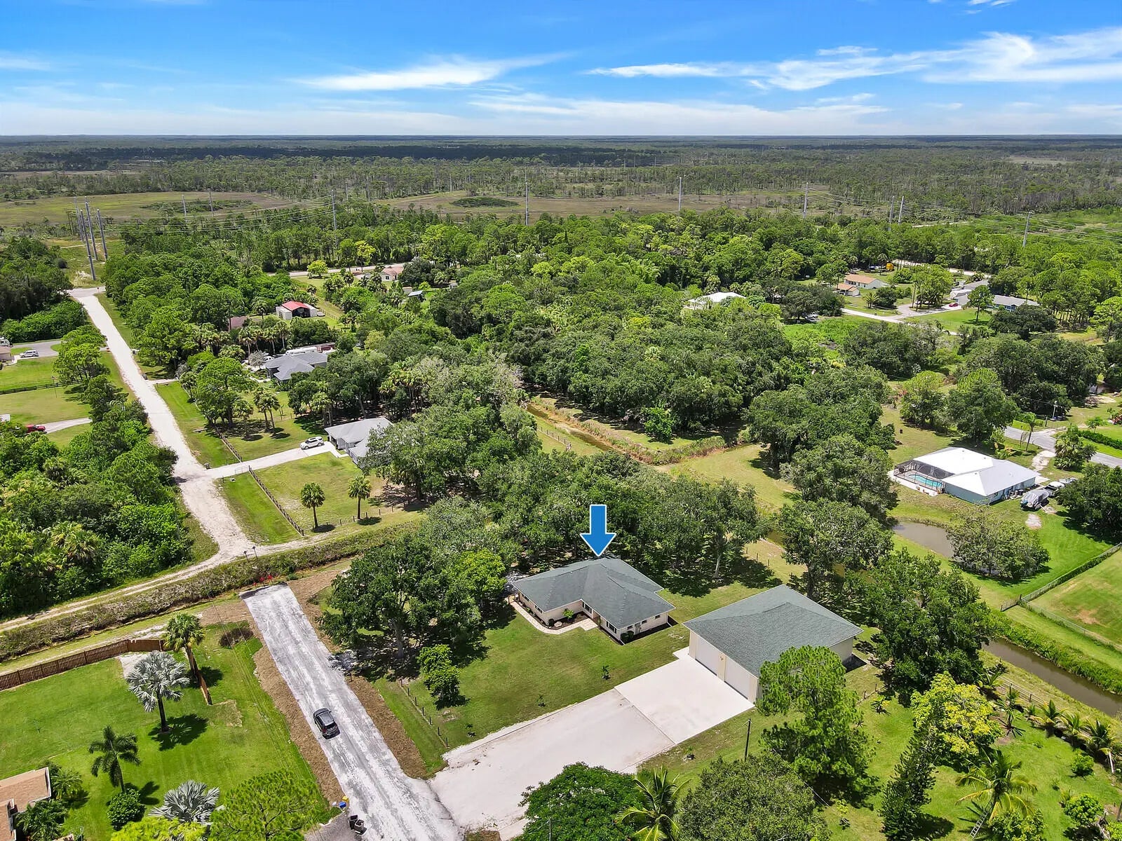 Residence is a country oasis on approx. one & one-half acres (built 1997), on a dead end newly paved street, Canal on side & rear of home. In addition to 2-car attached garage, large, detached garage (40'x56') able to house 2 recreational vehicles (walls 16' high) (front doors 14'x14') Built approx. 2019. If desired, 480 approx. sq. ft. can be constructed into a guest home. Kitchen has been upgraded with spectacular granite & cabinets. Breakfast bar can accommodate 4. Bay window area in kitchen has space for small cozy breakfast area. French doors across rear of kitchen & living area. Split bedroom plan. Master BR has small area for setting; master bath enjoys separate tub and shower. Plantation shutters enhance all windows. Attractive washer/dryer in laundry room. REVERSE OSMOSIS SYSTEM
