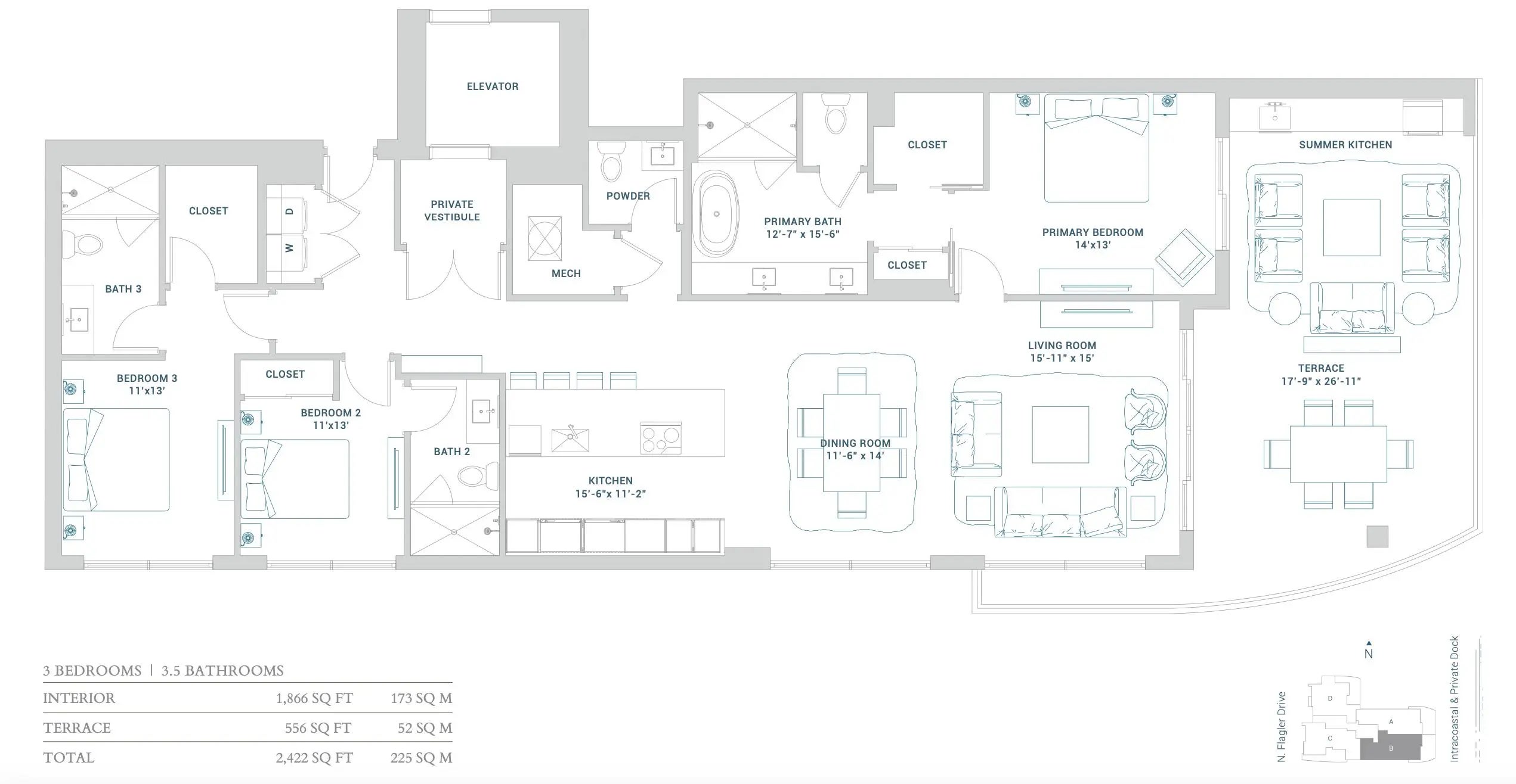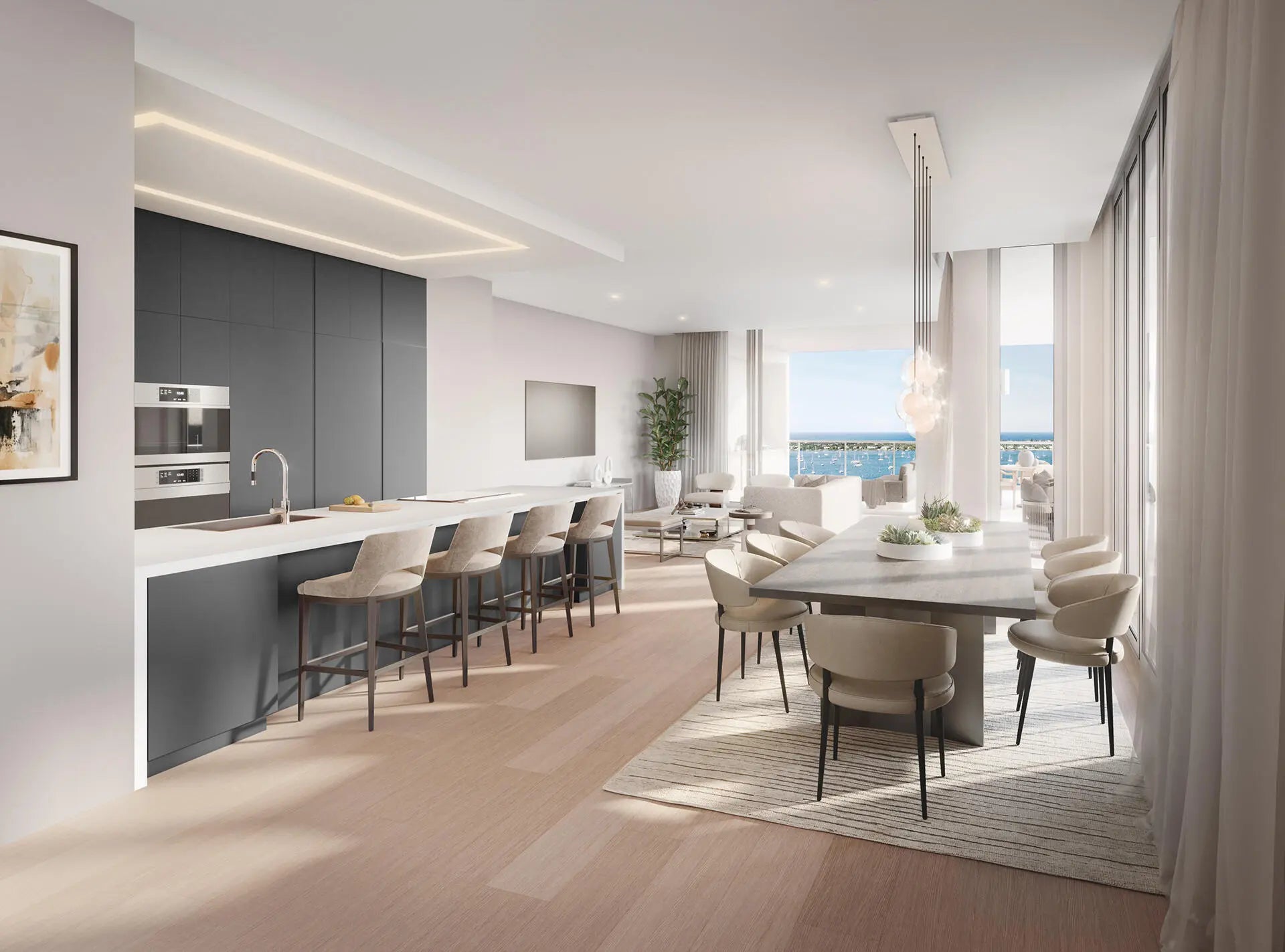 Welcome to ALBA, a private, boutique development directly on the intracoastal in West Palm Beach. With 55 exclusive residences, Alba offers breathtaking views of Palm Beach, the Intracoastal, the Ocean, and Downtown. Experience the ultimate in waterfront living in this new construction building designed by Spina O'Rourke + Partners. Residence 902 features 3 bedrooms, 3.5 bathrooms, and a spacious 556-square-foot terrace complete with a summer kitchen and stunning corner southeast views. Floor-to ceiling hurricane-resistant windows highlight the expansive water views, while the open-concept Italkraft kitchen includes professional-grade SubZero® and Wolf® appliances. The building features 2 pools, fitness center an spa, private waterfront dining room, and 24 hour Valet and Security. The spacious open style kitchen by Italkraft features professional-grade SubZero® and Wolf® appliances, including an induction stovetop with hood and a steam oven. Each residence has a private elevator and vestibule for ultimate privacy, and is pre-wired for smart-home technology. The primary bedroom boasts a double exposure, extra-large walk-in closet, access to the terrace and a gorgeous windowed five fixture bathroom. Alba residents will enjoy a private gated entry, private dock with boat slip access, and an elevated full-floor amenity level with both a sunrise and sunset pool for all day fun in the sun. Breathtaking views of the Intracoastal can be seen from the luxurious spa, state-of-the-art fitness center by TechnoGym®, yoga study and more! Elevate your lifestyle in this exclusive haven with incredible amenities such as private dining room equipped with climate-controlled wine storage for each owner and a commercial kitchen tailored for catered events. Additional amenities include an owners' conference room, multi-use business center, multi-sport simulator room, and a lounge with unobstructed views. Staffed lobby, valet parking, covered garage and EV charging, climate-controlled private storage, a package room, and recreational amenities including a bocce ball court, lawn chess, and expansive sun decks. Occupancy is anticipated for First Quarter 2026.