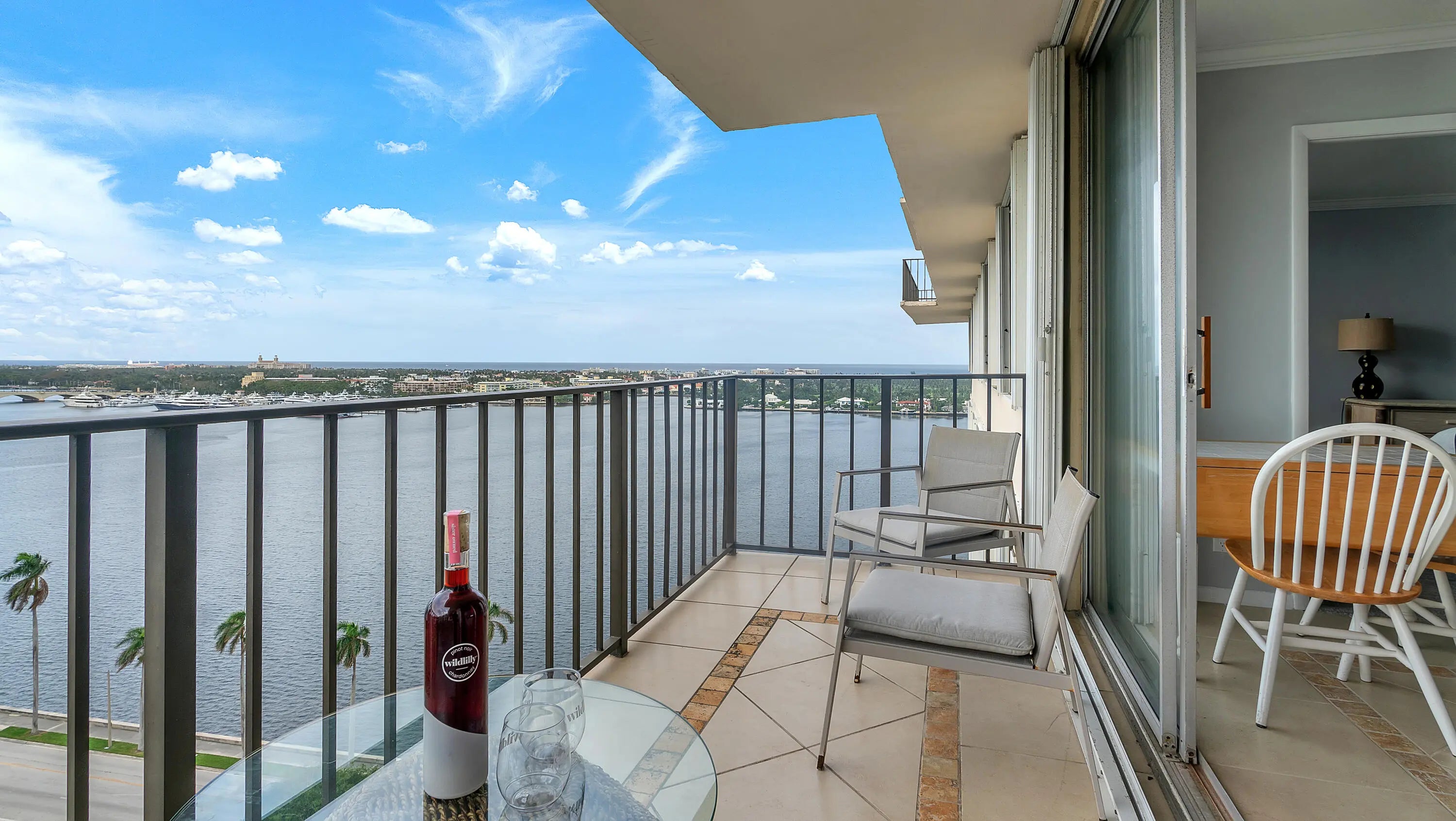 Lower waterfront penthouse with incredible Palm Beach ocean and Intracoastal views from every room! Tastefully reimagined in 2024 this 2 bed/2bath luxury condo features an open floor plan, split bed plan, & modern finishes, Kitchen outfitted with granite counters and all stainless steel appliances. Spacious bedrooms with modern baths. Private balcony perfect for entertaining while watching sunrise/sunset overlooking the tranquil waterways. The Luxurious Rappallo South is a full service building 24hr doorman, heated pool, fitness center, media room, and business center. Prime location just minutes from the best in nightlife, restaurants, shopping and entertainment. PBI airport less than 15 min drive and easy access to local marinas, Brightline, & best schools. Also avail for rent