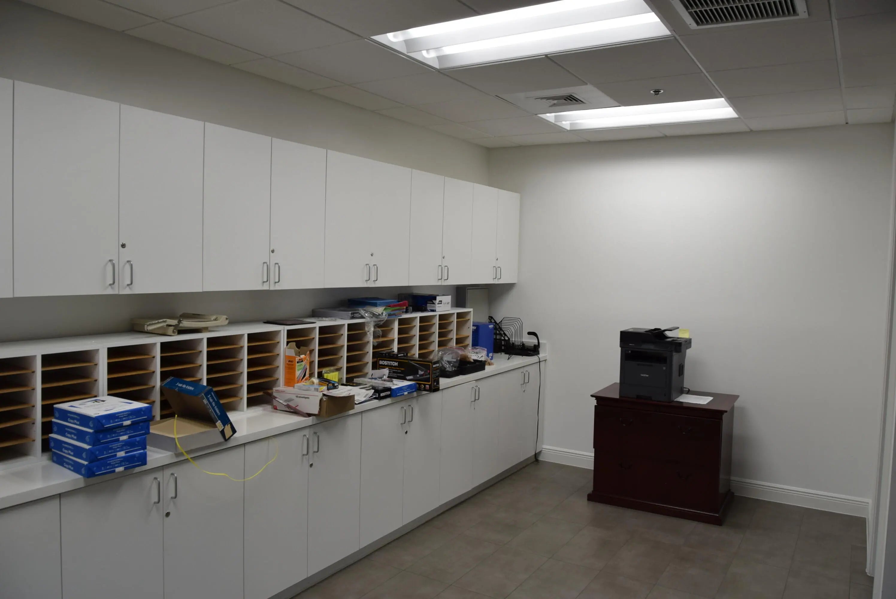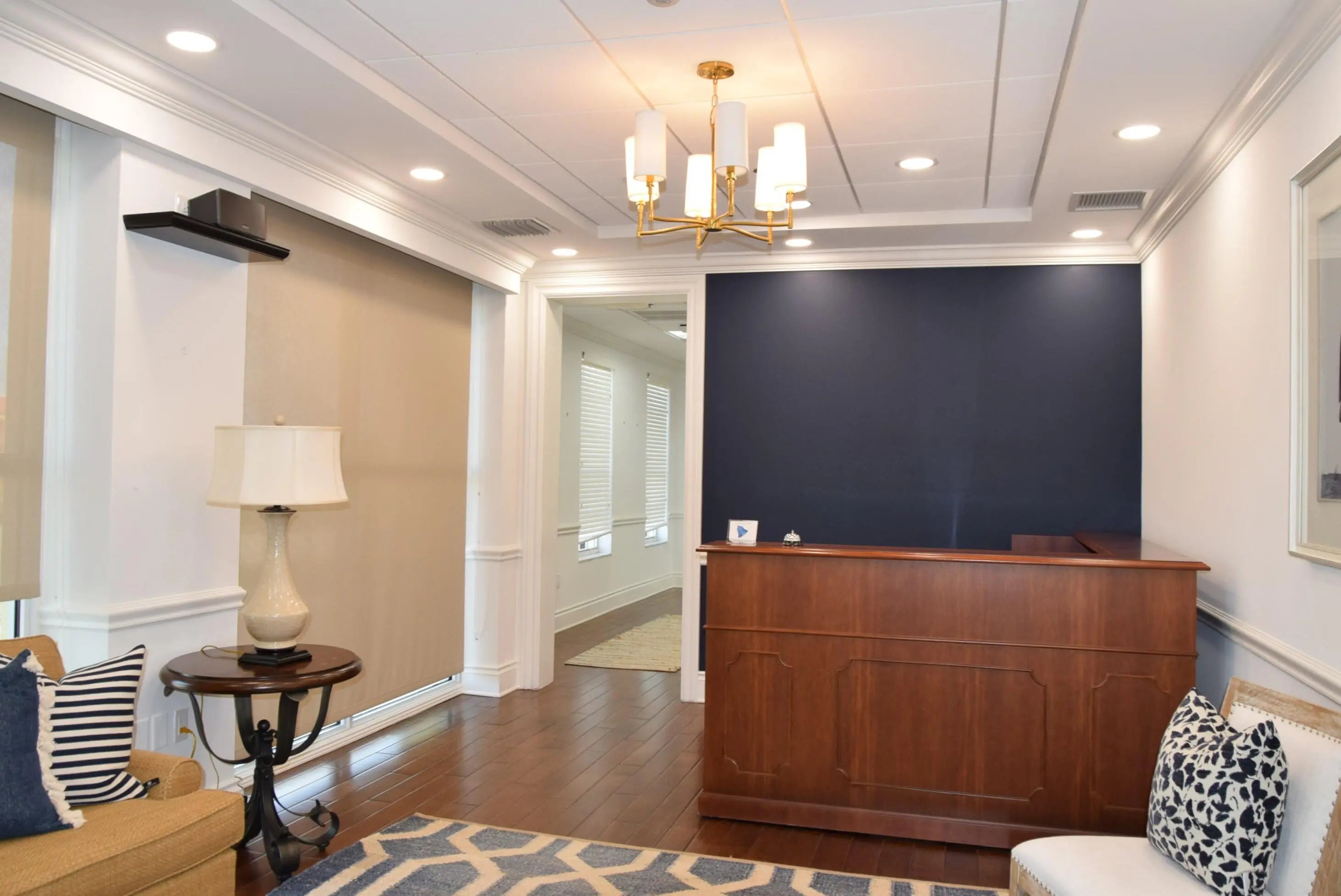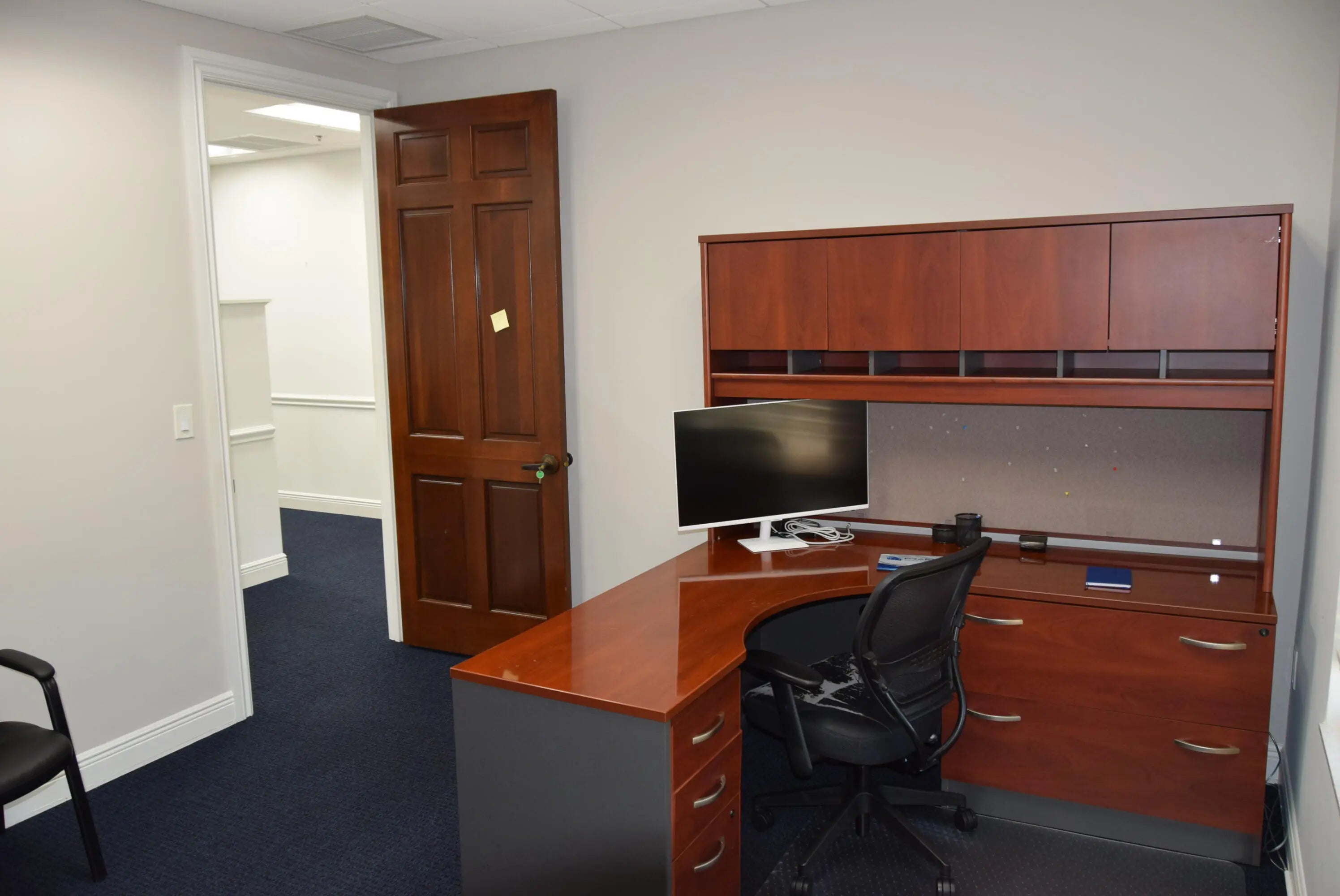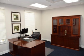 4,280± SF fully furnished office sublease with multiple private offices, conference room, and a large bullpen area with 16 workstations. The reception area welcomes you with gorgeous wood floors, elegant crown and cornice moulding, neutral colors and inviting decor. The private conference room includes a luxurious 8-person table with cream colored leather seats. There is also a large tv for presentations. The large bullpen area has 16 built out workstations ready for occupation. There are a total of seven private offices including two large executive offices, two junior executive offices, and three standard offices. The kitchen/break room includes a table with chairs, a refrigerator, toaster, microwave, dish washer, and a sink. There is a mailroom with plenty of space for a printer/copy machine (or two). The multiple his/her bathrooms include lockers for personal employee storage. This impeccable turn-key office space is ready for immediate occupation. This is an ideal location for a professional office seeking great visibility with heavy traffic. Building and Pylon Signage.