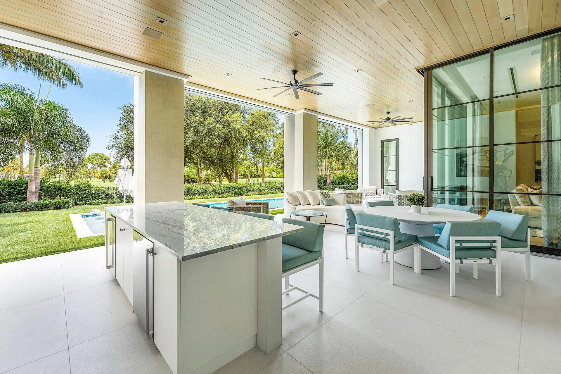 Located in the prestigious Royal Palm Yacht & Country Club, this extraordinary residence, meticulously crafted by Bloomfield Construction Inc., redefines luxury living. Encompassing 10,146 square feet, this fully furnished estate offers breathtaking views of multiple Jack Nicklaus Signature golf course fairways. The property features five exquisite bedroom suites, including a first-floor master suite, six full bathrooms, and two half bathrooms. The master suite showcases both his and her bathrooms; each outfitted with lavish steam showers for ultimate relaxation. Designed with convenience and style, the estate also boasts a four-car garage equipped with air conditioning and EV charging stations, ensuring comfort and functionality. The driveway, constructed with a durable concrete base and finished with porcelain, exudes sophistication and longevity. For those who value modern conveniences, the home offers cutting-edge smart home technology, seamlessly integrating security, climate, and entertainment systems alongside advanced water detection systems for peace of mind. The interior spaces are complemented by a club room, a gym, and dual kitchensone designed for gourmet creations and the other for outdoor summer entertaining. Unwind in the expansive swimming pool and spa, or savor a fine vintage from the 388-bottle wine room. This property is ideally suited for entertaining, with multiple gathering spaces that flow effortlessly throughout the home. Every detail is curated, offering a move-in-ready experience in Boca Raton's premier enclave. The buyer is responsible for documentary stamp taxes and title insurance.