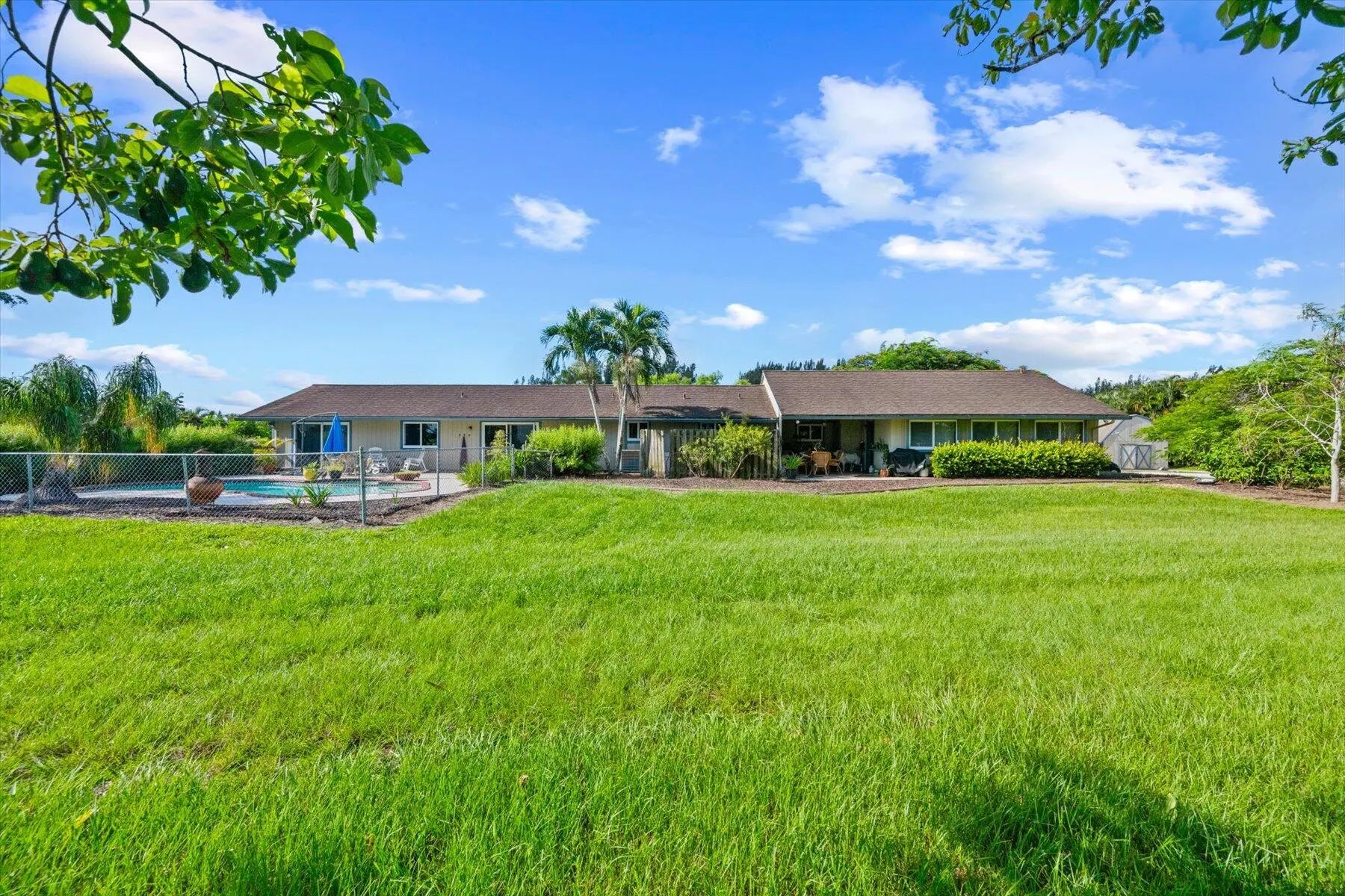 Beautifully landscaped 5 acre horse farm just off Boynton Beach Blvd. The farm features beautiful pasture and pond views. The recently updated 4 bedroom 3 bath home includes a mother in law or guest suite with panoramic views of the pool, pond and pastures. For the horses, there are 5 stalls attached to a large equipment barn where there is plenty of room to store all your feed, equipment and machinery. There are also 2 newly constructed stalls in one of the large paddocks. RV hookup on site as well. Conveniently located just off Boynton Beach Blvd and East of 441, acreage in this area is hard to find! Property is on a quiet dead end road, do not drive by, please make an appointment.