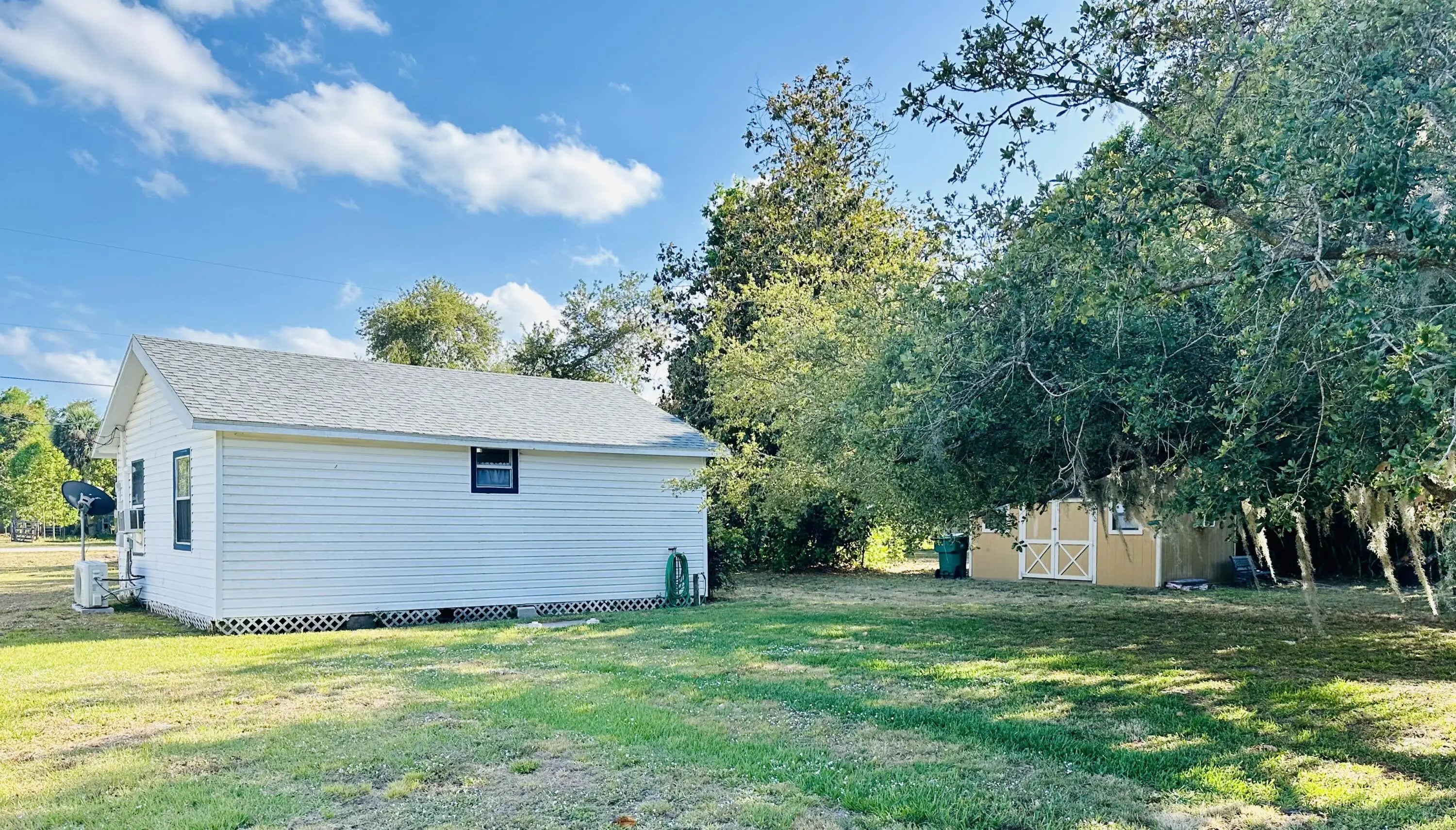 NON-Flood Zone X, in desirable SW Section, updated in 2022 and fully furnished,1960, wood frame, single family home on large .36ac lot. 2bed/1bath w/ laundry rm, living rm, & open kitchen. Covered front porch, open side porch. Two sheds w/ electric. One w/ window unit, another w/ attached lawnmower shed. Quarterly pest control, 2022 Roof, new mini split A/C w/ heat installed 2023. Public water, septic pumped & inspected w/ new lid. Conveniently located within walking distance to downtown shopping, schools, & 2 mins from boat launch. Front and rear of home accessible for ample parking. A non-paved, dead end easement road borders rear N property line. Grandfather Oak, Magnolia, & Palms. WELL MAINTAINED HOME! No owner finance. In house loan officer available, se Habla Español.