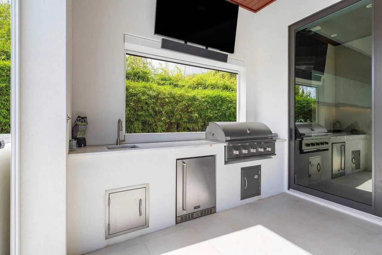Built-in Barbecue, Outdoor Shower, Custom Lighting, Summer Kitchen, Balcony