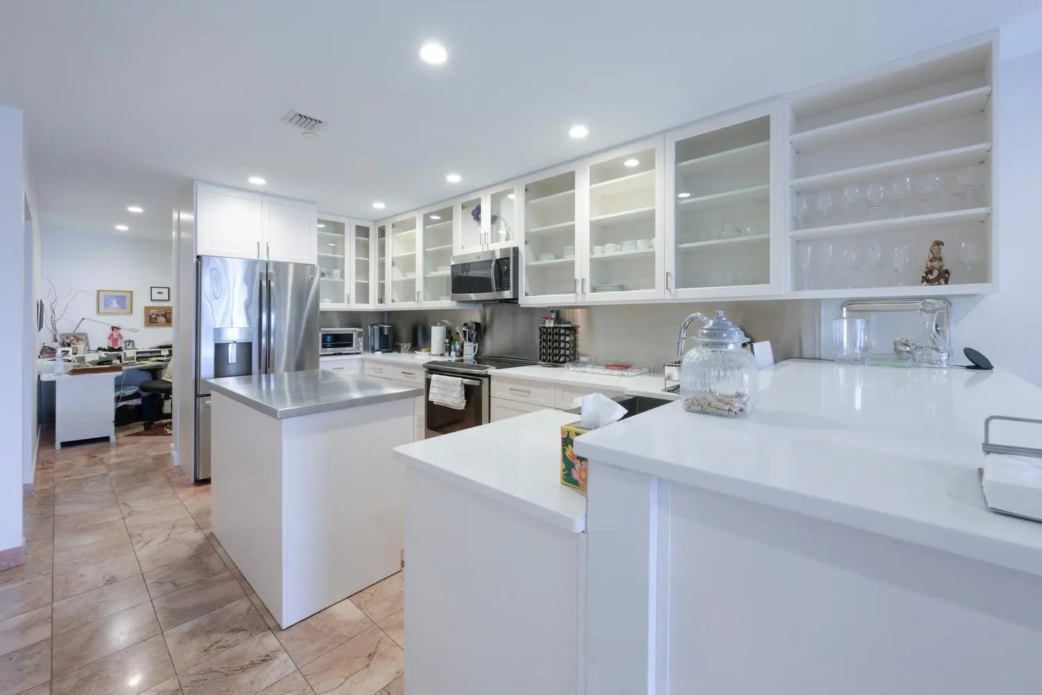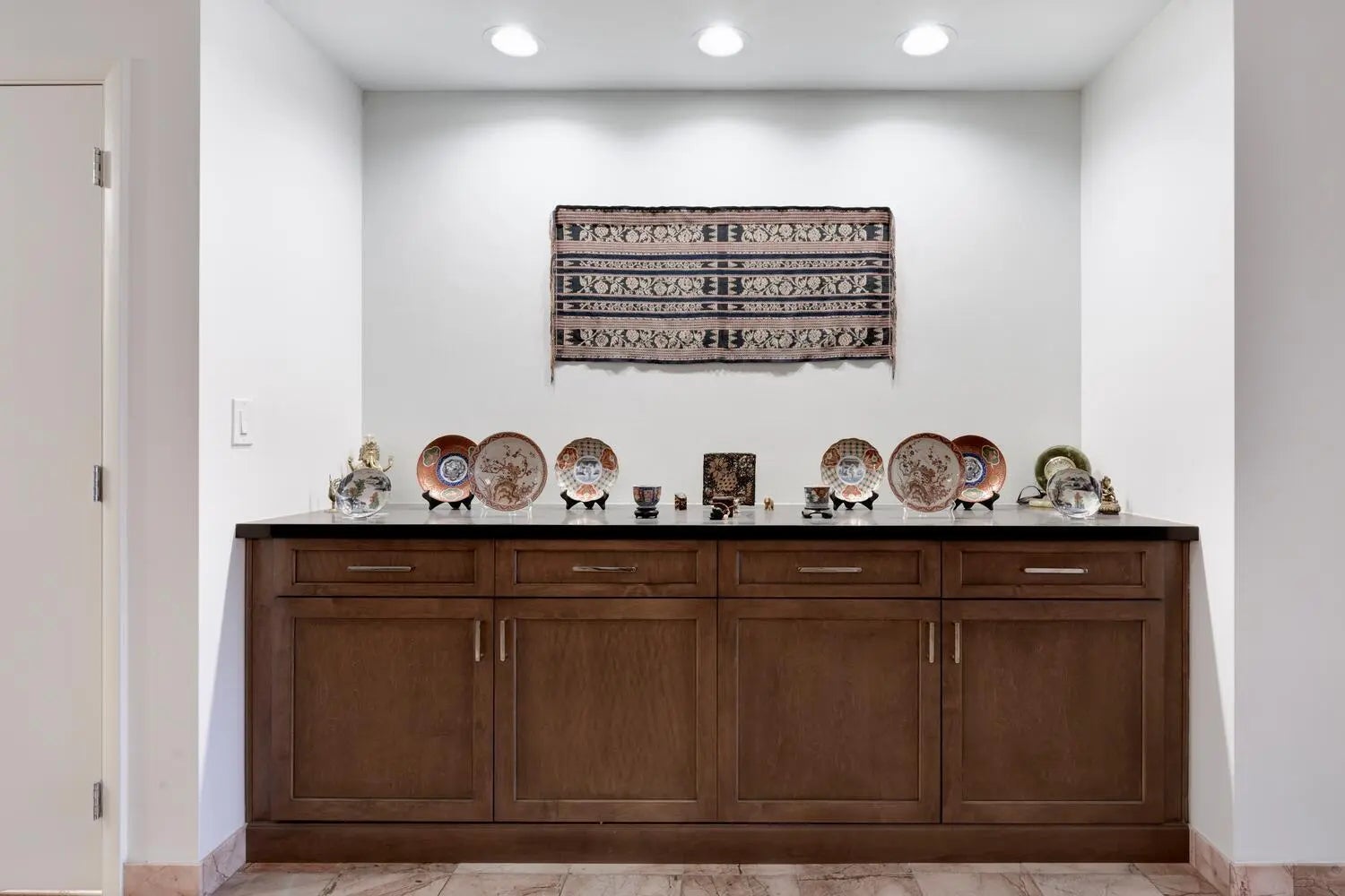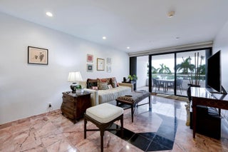 Lovely water views from this elegantly updated one-story townhouse with over 3,325 total sq. ft., (2,560 sq. ft., of living space under air), two large East and West facing terraces, perfect for entertaining. Gourmet kitchen with moveable island, pantry and abundant storage, 40 bottle wine cooler, wine rack, plus areas for spirits and glasses. Updated living and dining rooms with new lighting, new fire sprinklers, new electric outlet, new electric switches, new solid wood doors and hardware, new A/C with UV filter, new ceiling vents for A/C. Master suite includes walk in dressing room, large master bath with soaking tub, large shower, linen closet, and toilet closet. Guest bedroom has an ensuite bath. This lovely home also features a den, office, laundry room and powder room. Lives like a house but with the amenities of a condo. East and West exposures. Outdoor balcony offers exceptional living/dining space and water views. Full service, luxury building with 24-hour security, valet parking, concierge, two swimming pools, fitness room, conference room, and tennis court with pickleball. Pet friendly. The building has passed their Milestone Inspection as an "A" Rated Structurally Sound Building. New balcony and pool area renderings provided by The Plaza of the Palm Beaches. Along with the balcony railing and east pool projects a Four Seasons and Ritz-Carlton interior designer has been engaged to refresh the mezzanine, grand lobby, and other common areas.