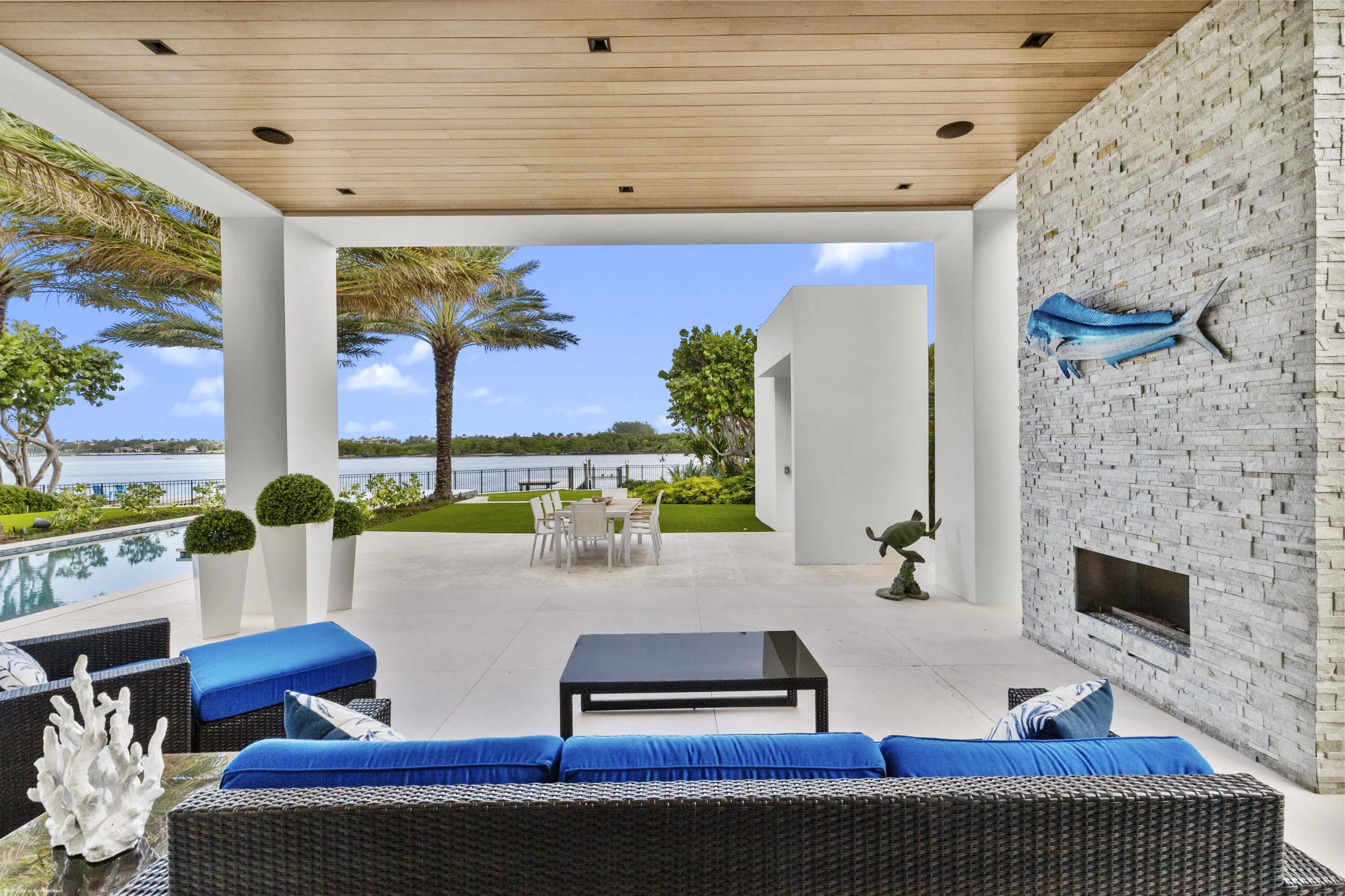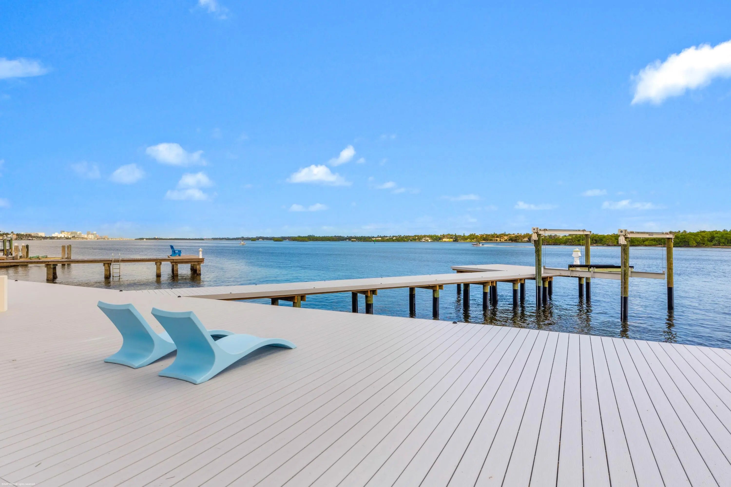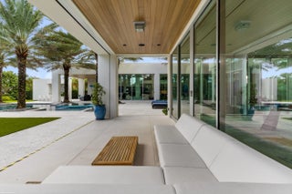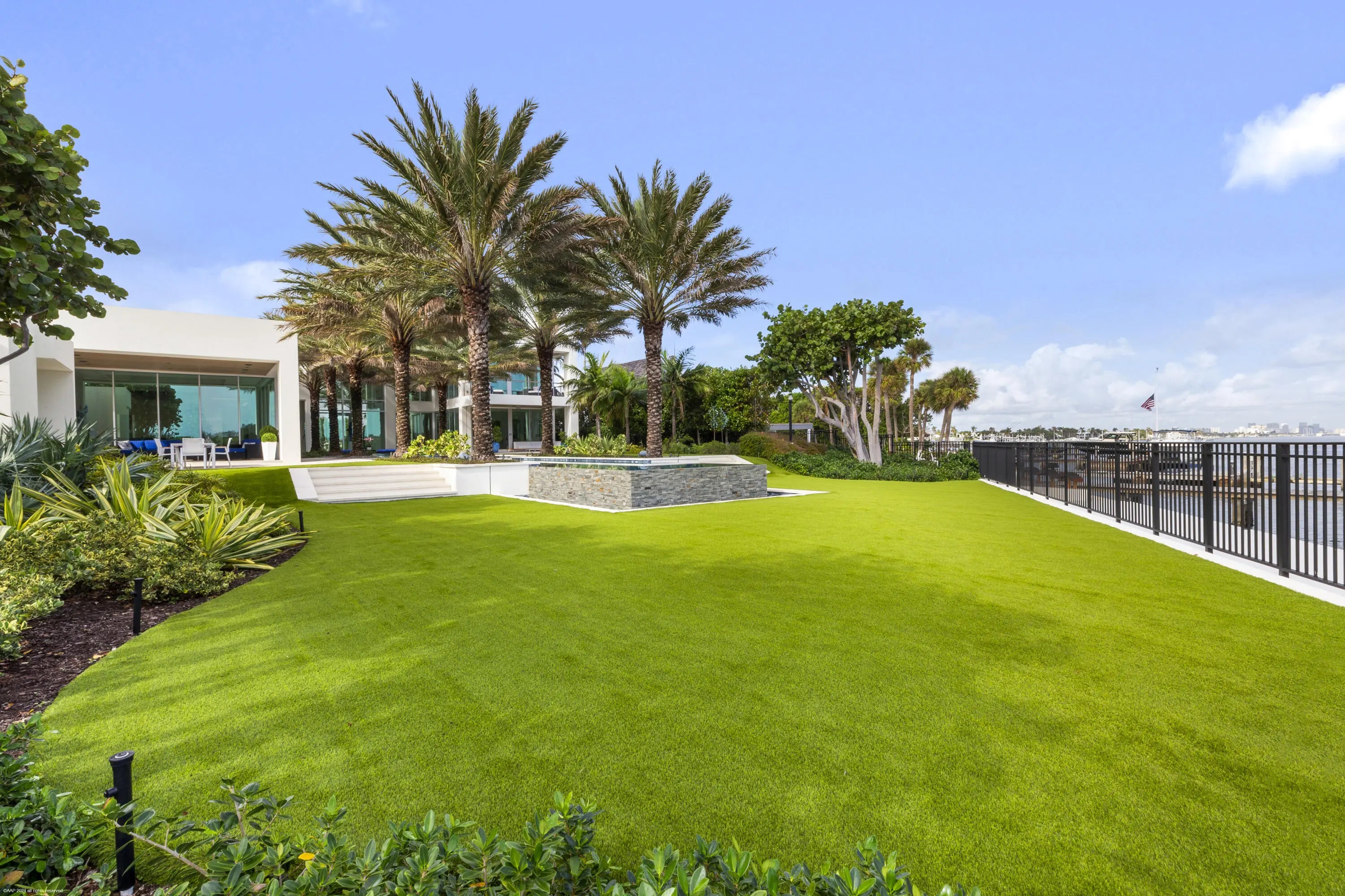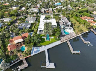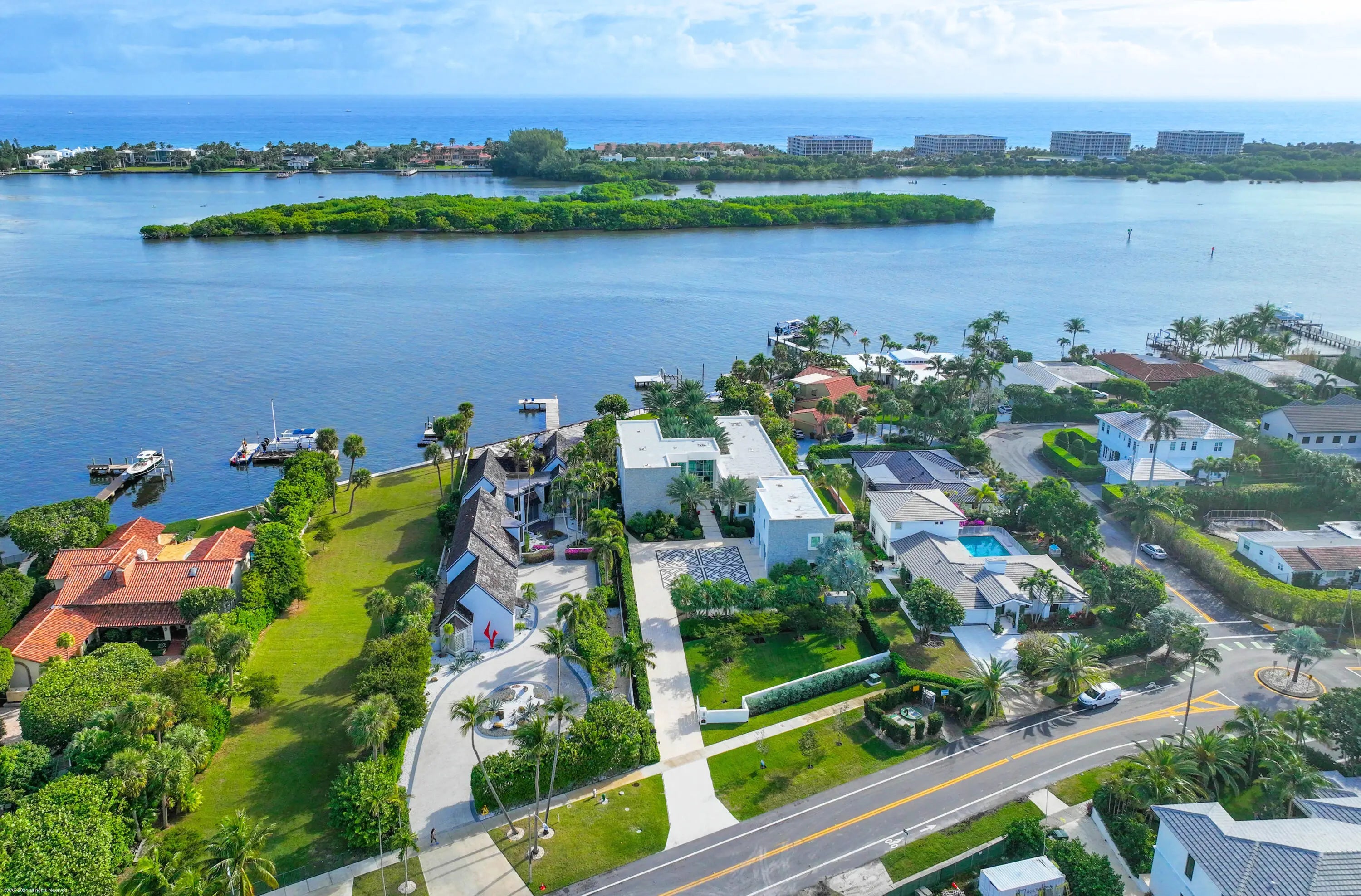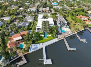 From the moment you enter the gates of this massive direct Intracoastal waterfront estate, you will experience first hand the hundreds of hours of creative design by famed and respected architect George Brewer. His vision coupled with the direction and inspiration from the owners' decades of world travels have created this stunning modern masterpiece that was completed in 2021. Water is the main focus as you experience it throughout this nearly one acre property. From the front entrance and its cascading fountains, to the walls of glass that frame the entire eastern elevation of the home showcasing the massive resort style pool and turfed courtyard including a unique acrylic heated spa actually sitting in the water, to the expansive Intracoastal waterfront that has one of the largest, if not the largest, over the water deck and boat docks in SoSo. This provides the most spectacular long water views of downtown West Palm Beach you'll experience. The primary suite overlooks all this incredible beauty boasting a Worth Avenue boutique sized closet and a bath that lacks nothing. The SOTArt gourmet kitchen has two huge islands and is loaded with everything needed to entertain family, friends and guests. The fabulous design includes an elevator, an office, a warehouse sized refrigerated wine cooler, a very gracious and private guest apartment, an oversized 3 car garage, an outdoor kitchen and incredible covered outdoor dining and relaxation spaces. Finally, the decorative paved auto courtyard has room for over 20 cars. Seller is replacing chandelier with a like-kind chandelier prior to the closing.
