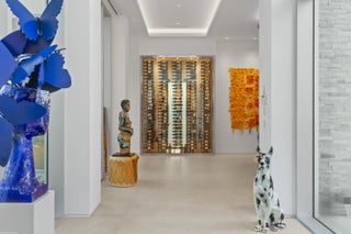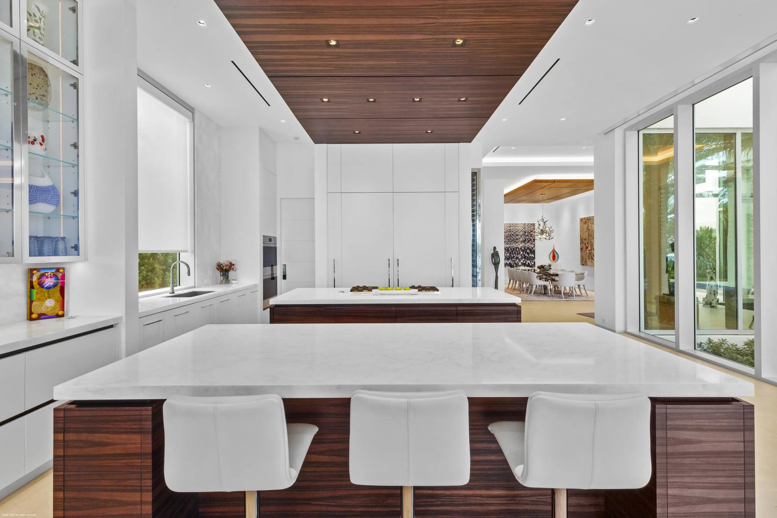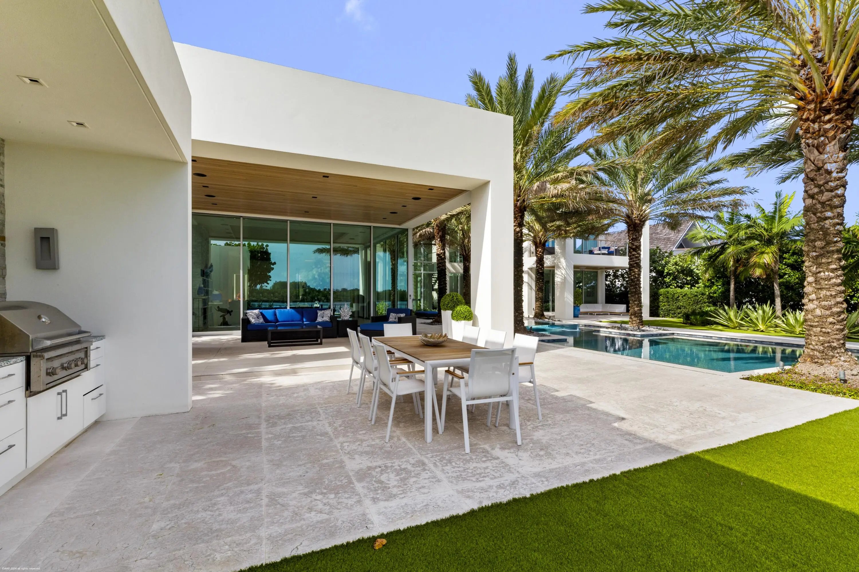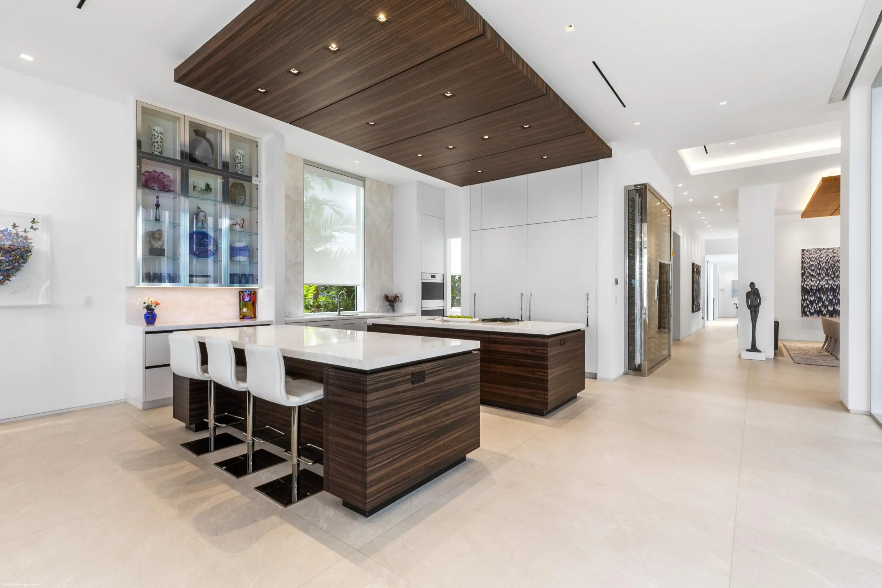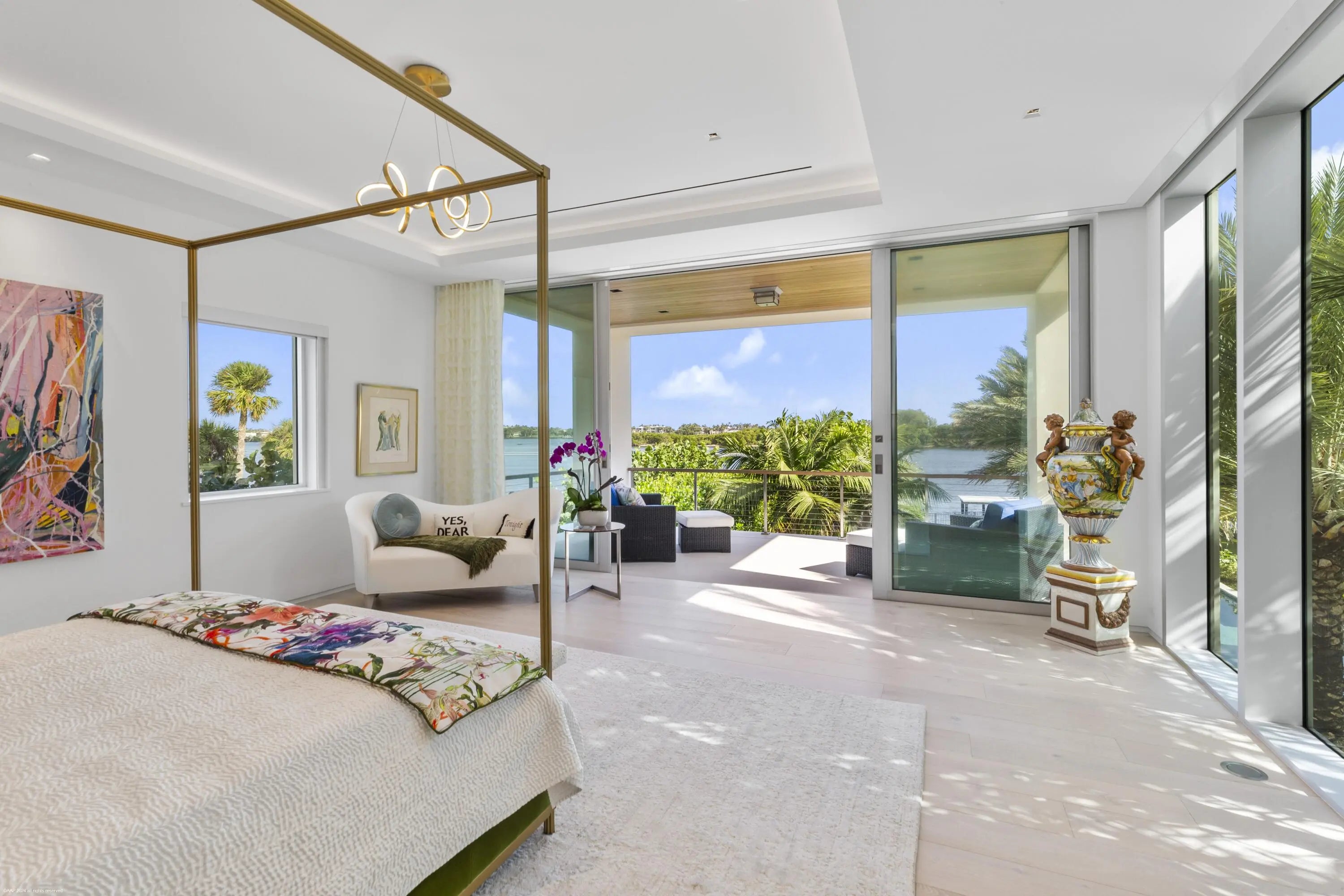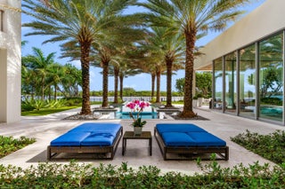 From the moment you enter the gates of this massive direct Intracoastal waterfront estate, you will experience first hand the hundreds of hours of creative design by famed and respected architect George Brewer. His vision coupled with the direction and inspiration from the owners' decades of world travels have created this stunning modern masterpiece that was completed in 2021. Water is the main focus as you experience it throughout this nearly one acre property. From the front entrance and its cascading fountains, to the walls of glass that frame the entire eastern elevation of the home showcasing the massive resort style pool and turfed courtyard including a unique acrylic heated spa actually sitting in the water, to the expansive Intracoastal waterfront that has one of the largest, if not the largest, over the water deck and boat docks in SoSo. This provides the most spectacular long water views of downtown West Palm Beach you'll experience. The primary suite overlooks all this incredible beauty boasting a Worth Avenue boutique sized closet and a bath that lacks nothing. The SOTArt gourmet kitchen has two huge islands and is loaded with everything needed to entertain family, friends and guests. The fabulous design includes an elevator, an office, a warehouse sized refrigerated wine cooler, a very gracious and private guest apartment, an oversized 3 car garage, an outdoor kitchen and incredible covered outdoor dining and relaxation spaces. Finally, the decorative paved auto courtyard has room for over 20 cars. Seller is replacing chandelier with a like-kind chandelier prior to the closing.