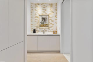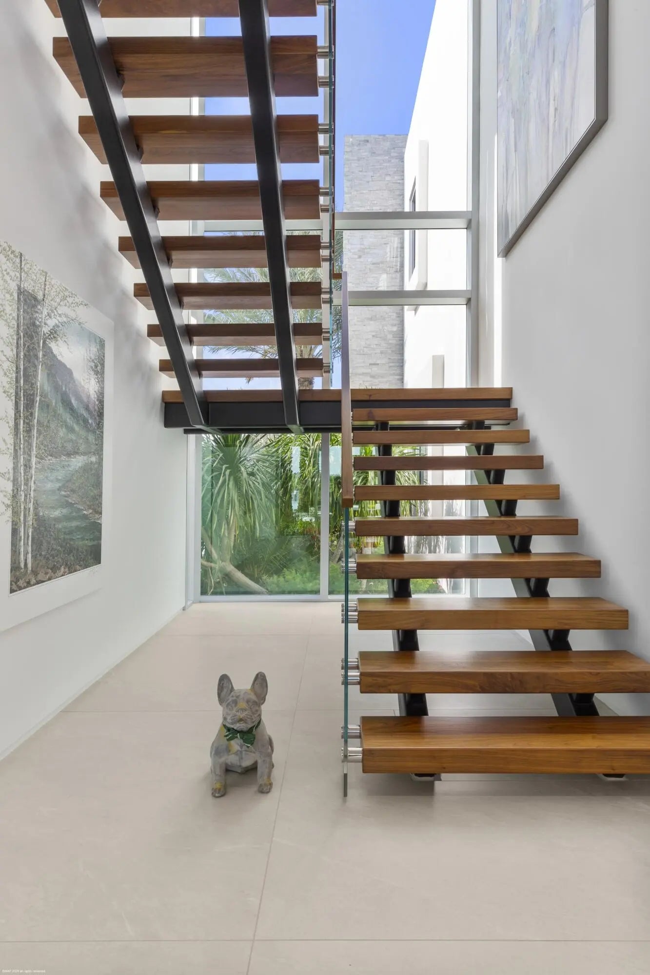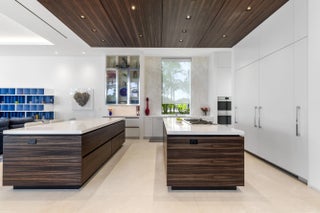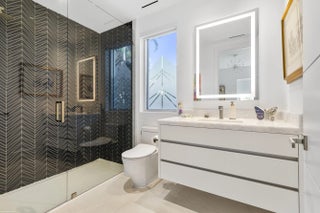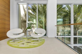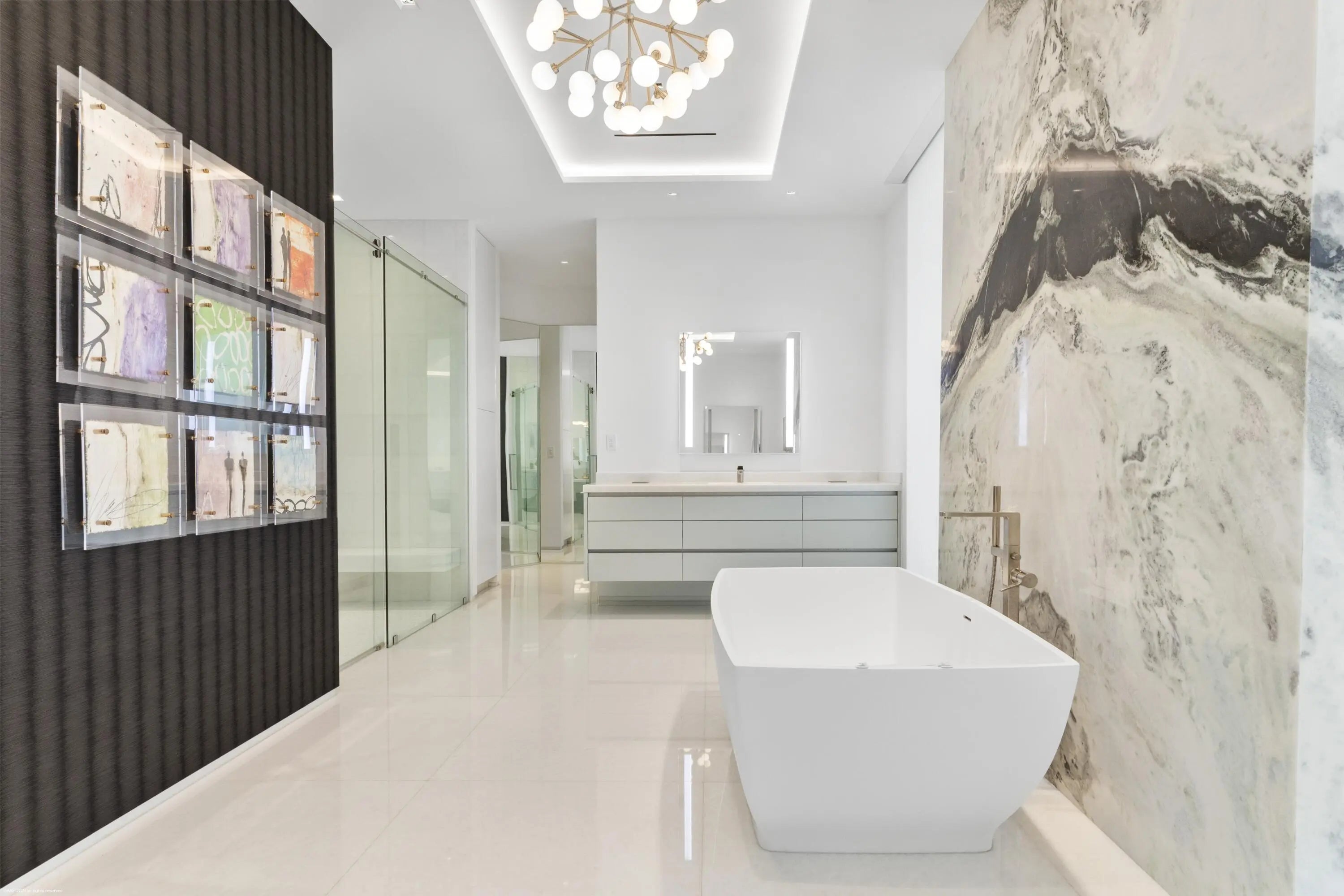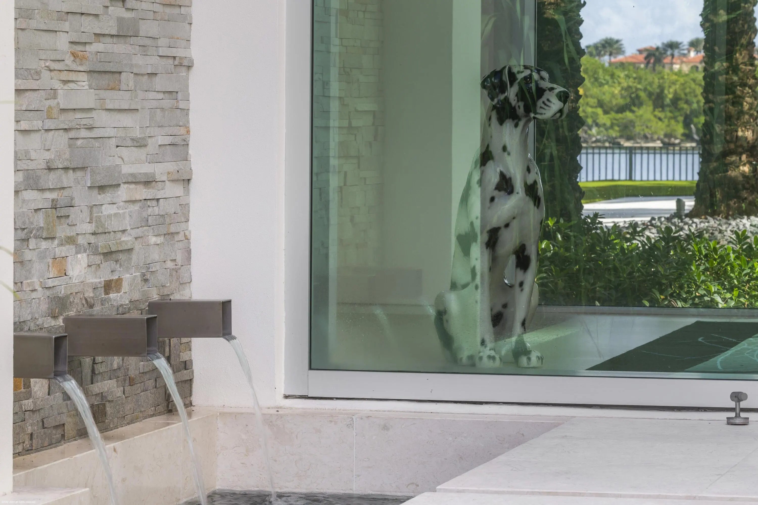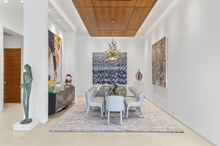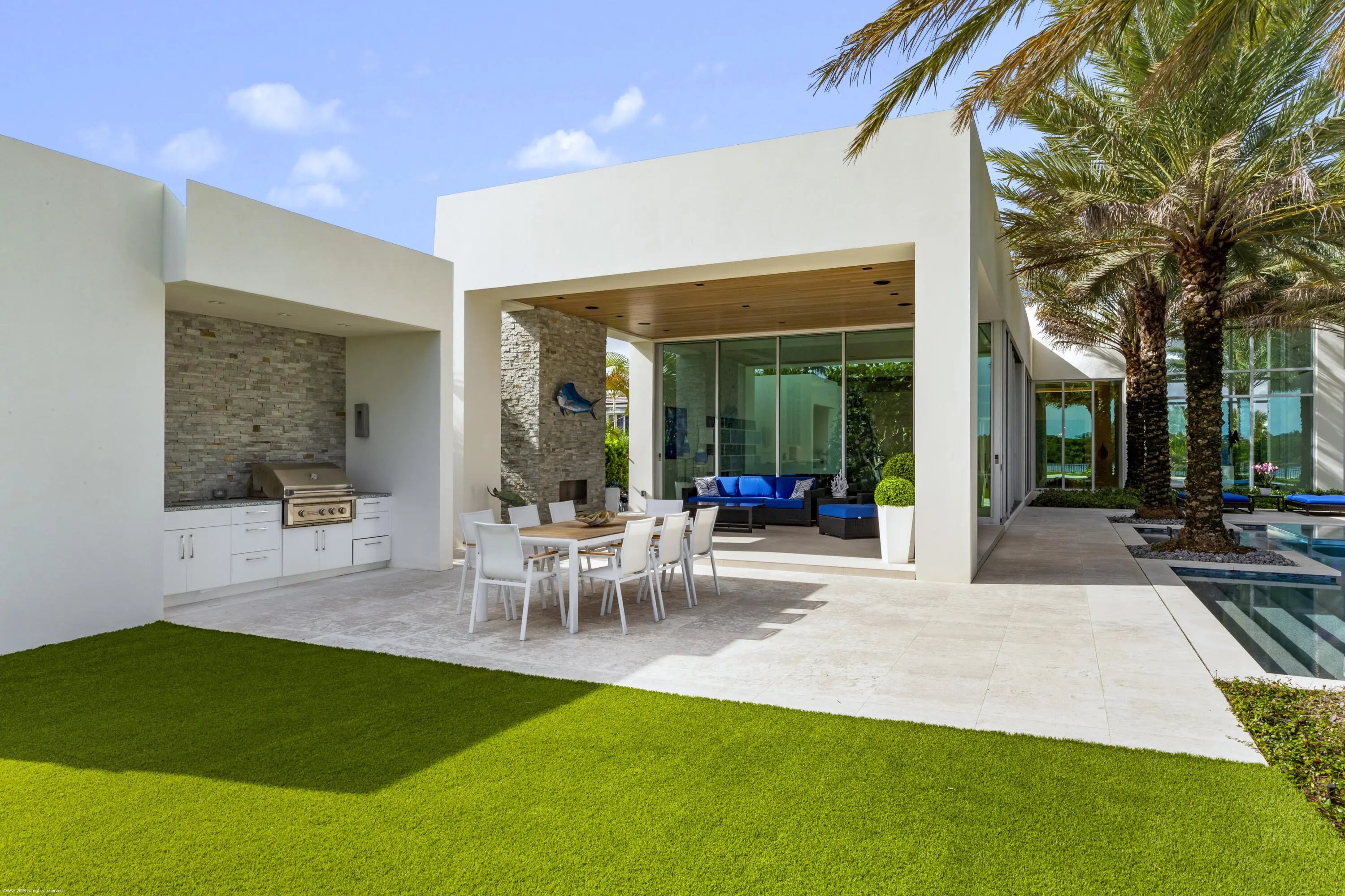 From the moment you enter the gates of this massive direct Intracoastal waterfront estate, you will experience first hand the hundreds of hours of creative design by famed and respected architect George Brewer. His vision coupled with the direction and inspiration from the owners' decades of world travels have created this stunning modern masterpiece that was completed in 2021. Water is the main focus as you experience it throughout this nearly one acre property. From the front entrance and its cascading fountains, to the walls of glass that frame the entire eastern elevation of the home showcasing the massive resort style pool and turfed courtyard including a unique acrylic heated spa actually sitting in the water, to the expansive Intracoastal waterfront that has one of the largest, if not the largest, over the water deck and boat docks in SoSo. This provides the most spectacular long water views of downtown West Palm Beach you'll experience. The primary suite overlooks all this incredible beauty boasting a Worth Avenue boutique sized closet and a bath that lacks nothing. The SOTArt gourmet kitchen has two huge islands and is loaded with everything needed to entertain family, friends and guests. The fabulous design includes an elevator, an office, a warehouse sized refrigerated wine cooler, a very gracious and private guest apartment, an oversized 3 car garage, an outdoor kitchen and incredible covered outdoor dining and relaxation spaces. Finally, the decorative paved auto courtyard has room for over 20 cars. Seller is replacing chandelier with a like-kind chandelier prior to the closing.