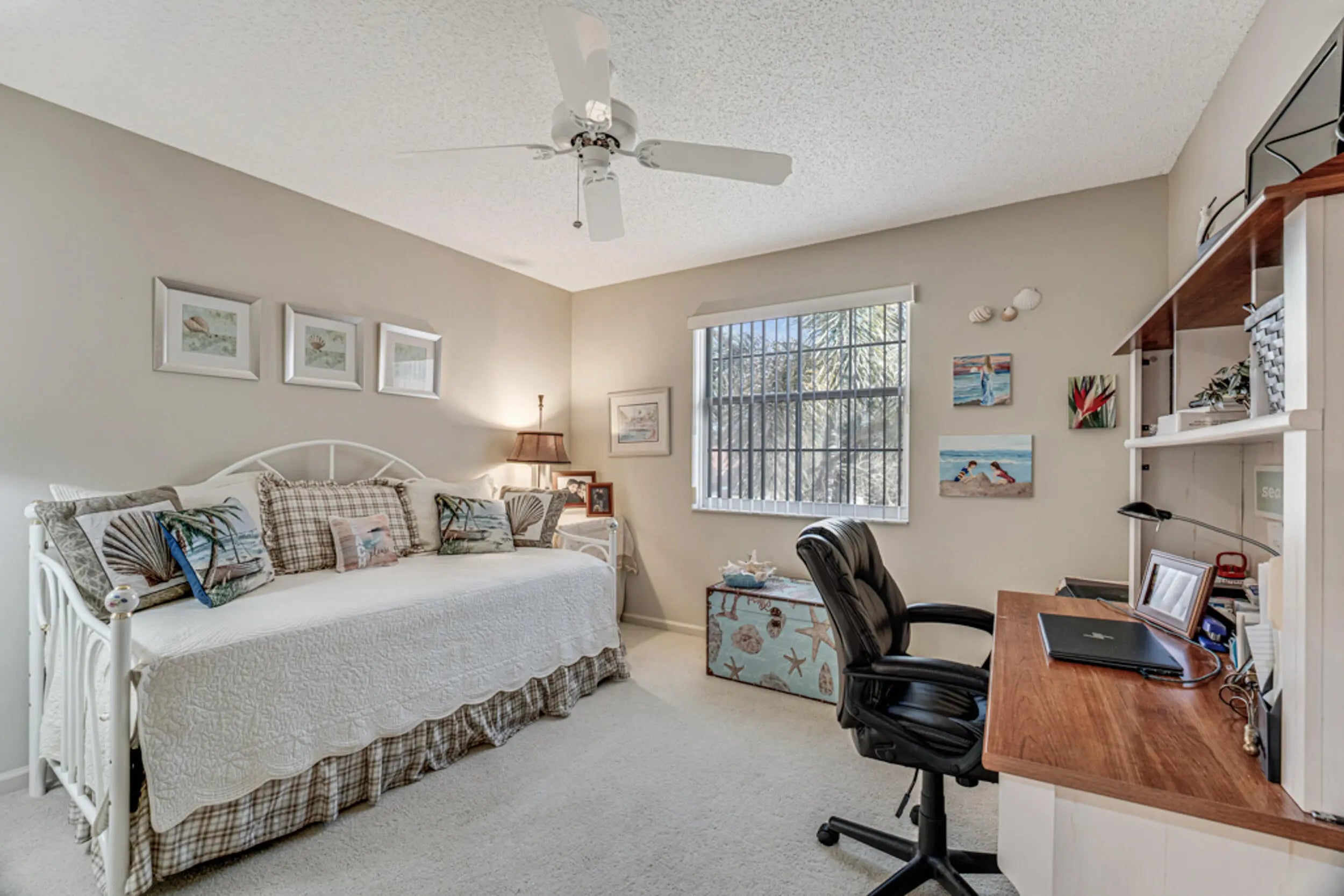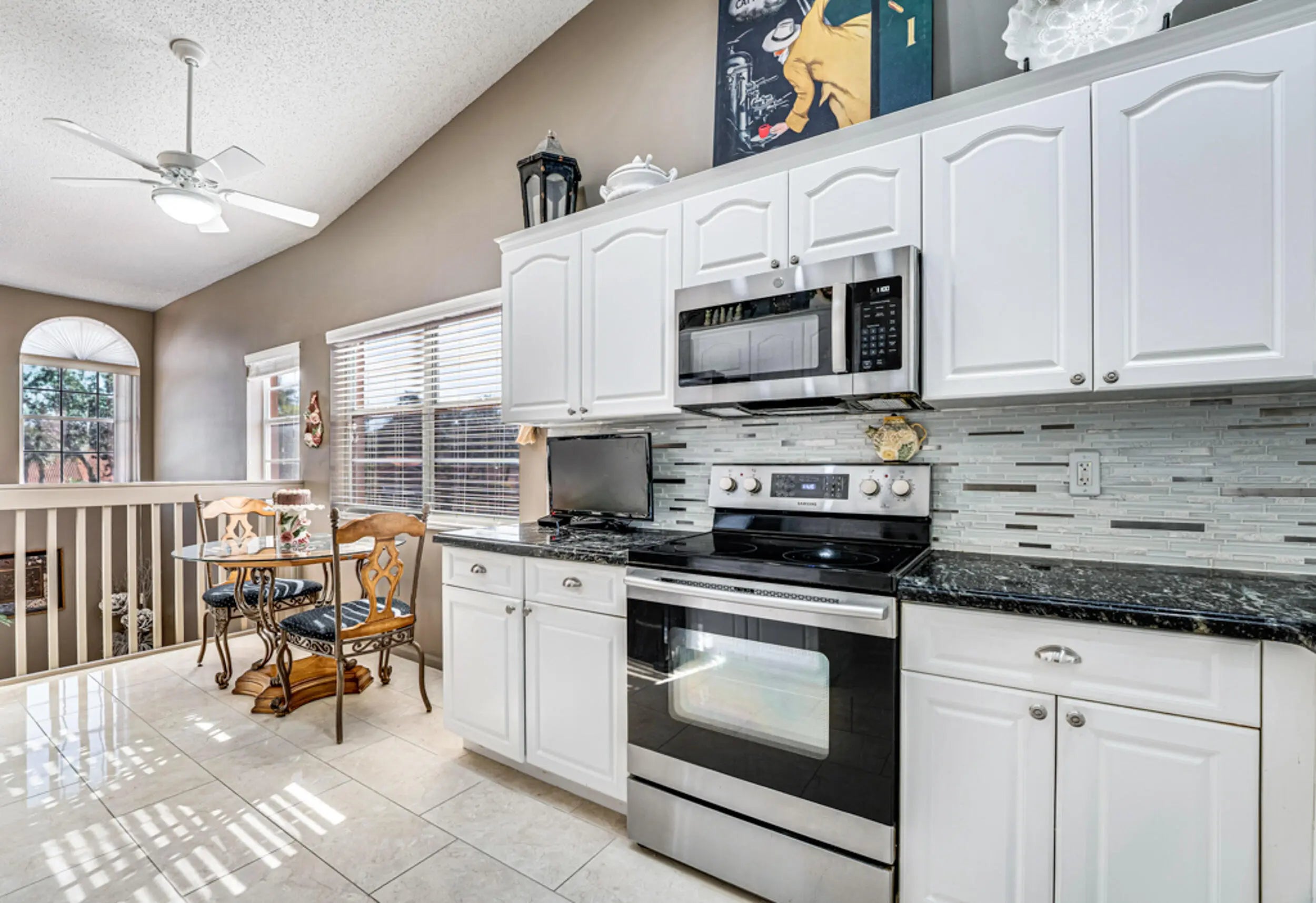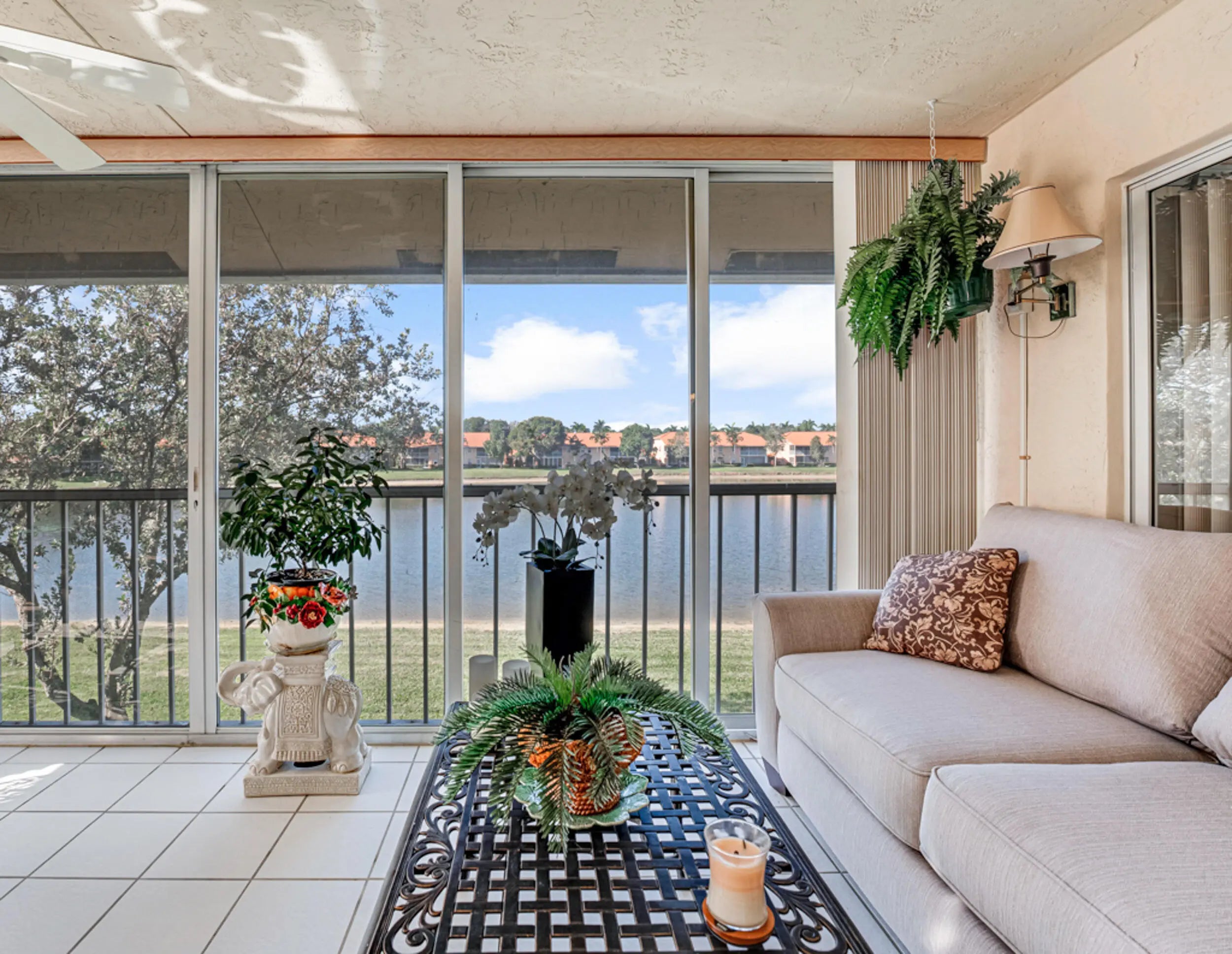 This super clean & well maintained home is a must see! Enjoy wide lake views & abundant natural light. The AC coils have been replaced w/ a 2 yr warranty. The updated kitchen & luxury tile floors add a modern touch, while the enclosed patio with Central AC offers additional living space to relax and enjoy nature year-round. An interior laundry room & private elevator provide everyday convenience. Be sure to check out the 3D walkthrough tour for an ''in-person'' view of this lovely home. Located in the very active 55+ community of Palm Isles, it's close to new shopping centers with easy access to dining and retail. Palm Isles features 5 pools (including one indoor), tennis, pickleball, numerous events, an on-site café, and more! The multi-million-dollar renovated clubhouse reopens very so Renovation of the over 54k square foot clubhouse soon to open December 2025. Offering on-site cafe (currently opened), 600 seat theater, card rooms, billiard room, pottery room kiln, 4 outdoor pools, 1 indoor pool, tennis and pickleball. This community is perfectly located with easy access to highways, shopping, restaurants and so much more.