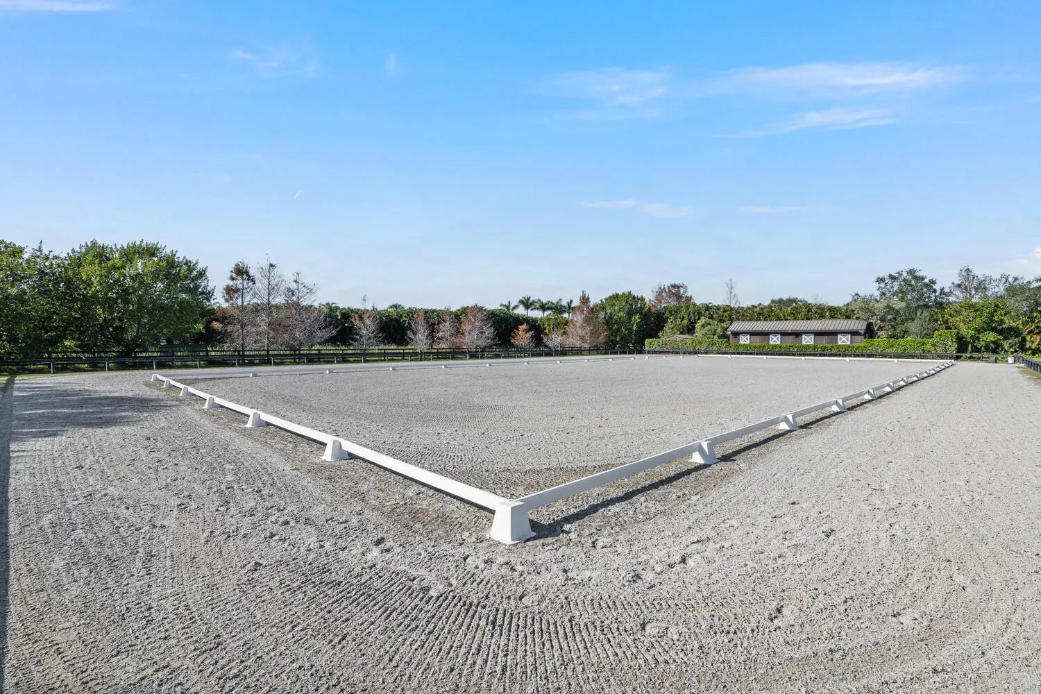 Location, Location, Location! This gated 5 acre 20 stall Stables Way equestrian oasis has it all. Located within hacking distance to the new show grounds and new entrance. The main barn has 16 stalls, tack room, riders lounge, laundry, feed & hay storage, 3 wash stalls, 5 grooming stalls, shutters and roll down doors. There is a luxurious owners quarters with porch and patio overlooking the property. There is also a 2 bedroom staff apartment and ample parking for cars, trucks and trailers.The fully irrigated arena is 130'X220' with a covered viewing area. There are 5 paddocks plus a 60' round pen. The 6 horse covered MK walker is adjacent to the main barn. Truly a MUST SEE property!