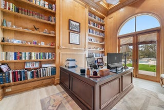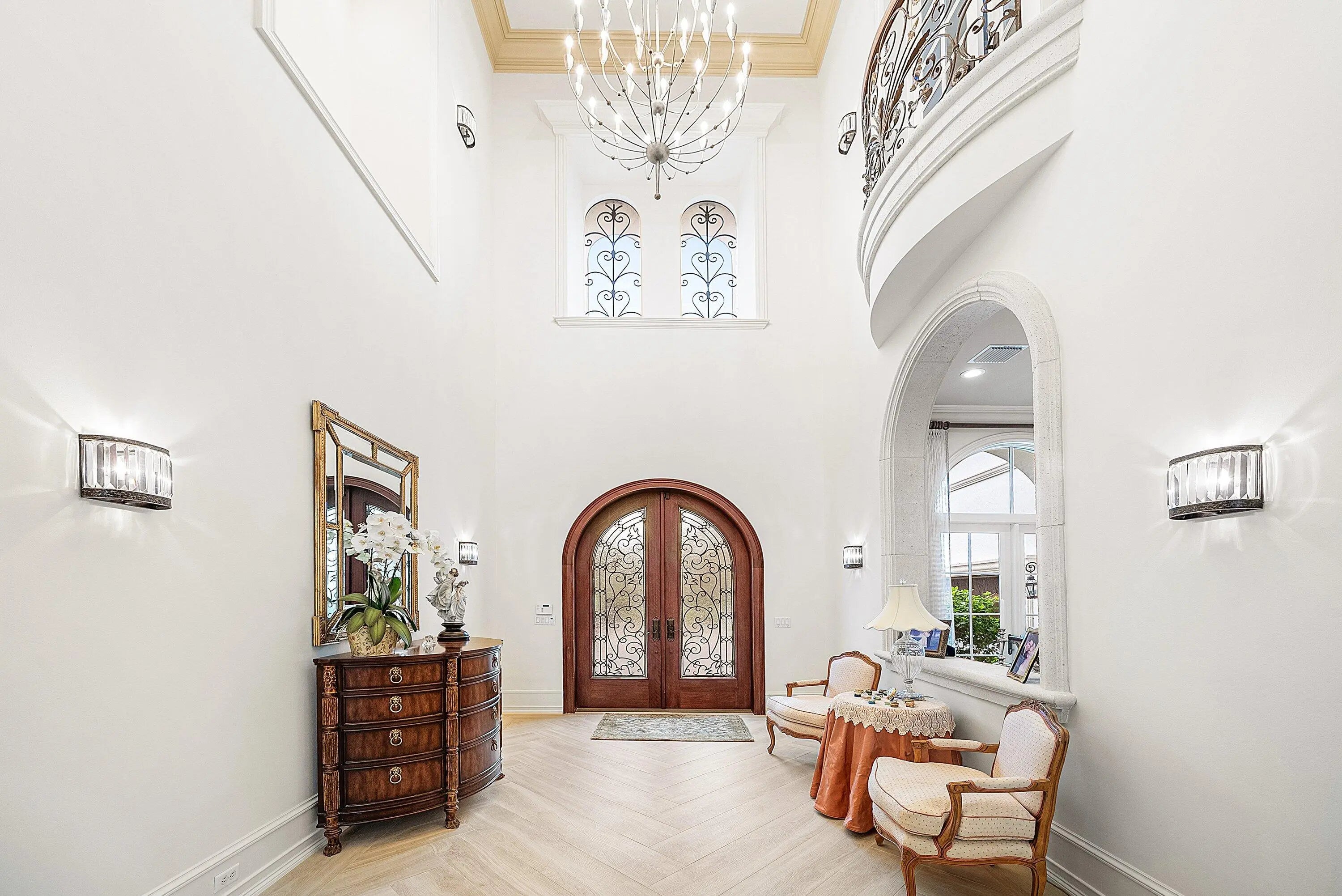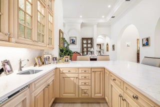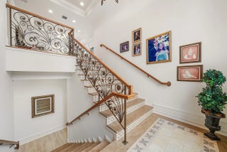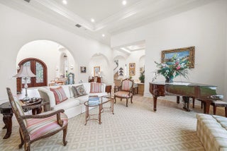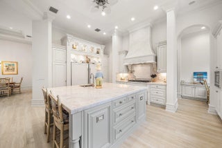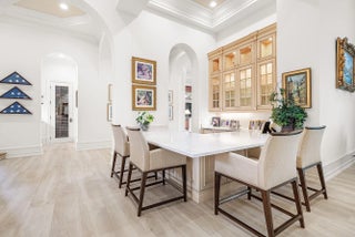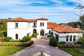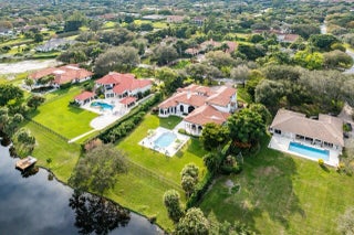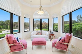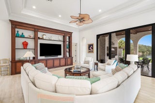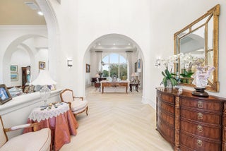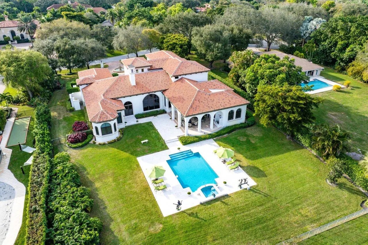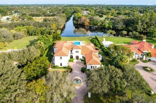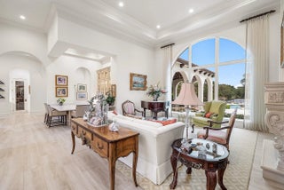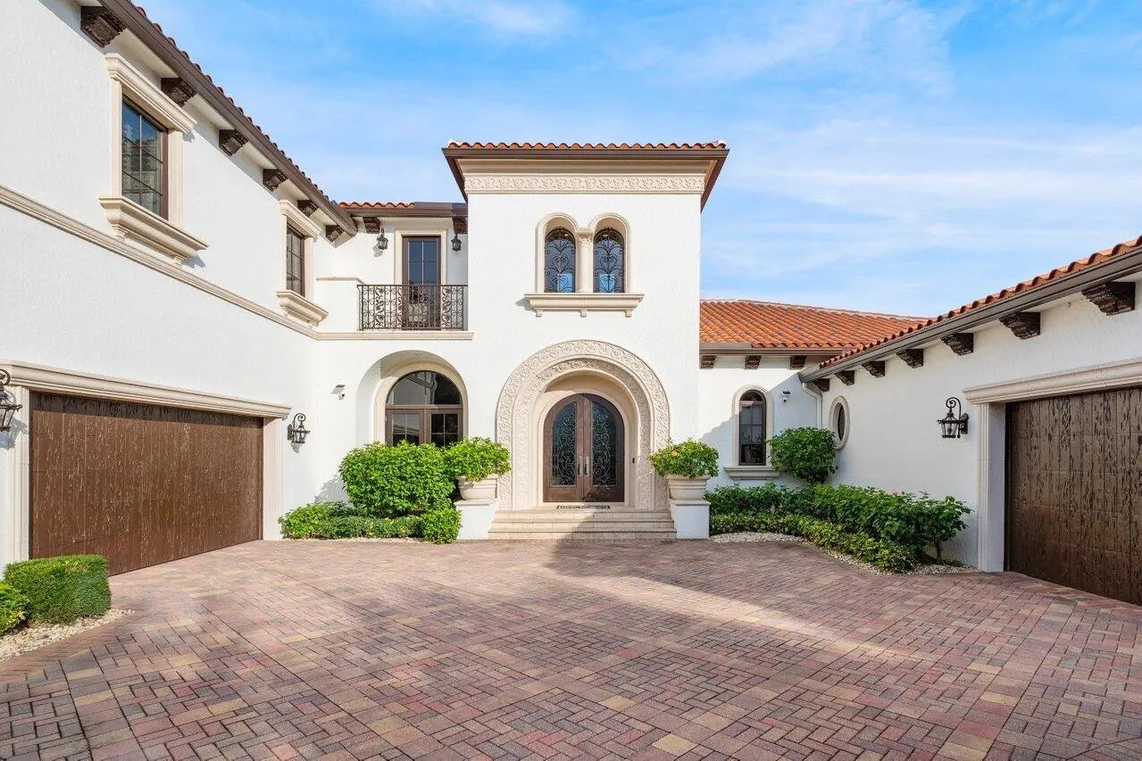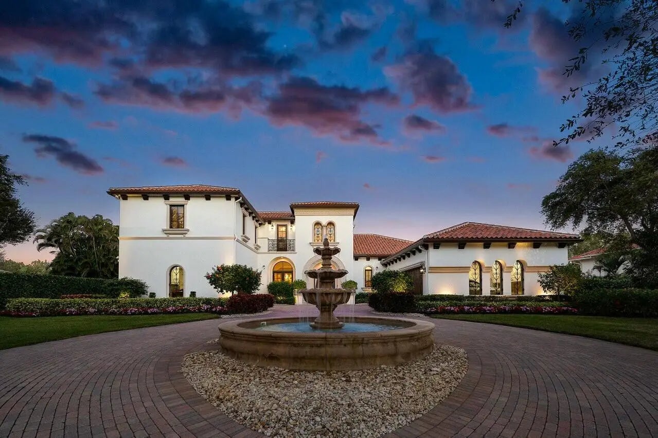 Discover exceptional luxury and stunning water views from this 7,200 sq. ft. Sabatello Signature estate, set on a full acre in the highly sought-after Steeplechase community. Thoughtfully designed and beautifully finished, the home offers 5 bedrooms, 6.5 baths, a refined library/office, a generous media or bonus room, a second-floor loft with sitting and study areas, and a four-car air conditioned garage. From the moment you enter, the grand foyer—with its intricate ironwork and soaring ceilings—sets the tone for the craftsmanship found throughout. Custom millwork enhances every space, while the first floor features brand-new porcelain tile, an office, a bonus room, and the primary suite. The primary suite is a true private retreat, complete with a spacious sitting area framed by arched windows that capture serene lake views. Two newly updated primary en-suite bathrooms featuring sleek glass showers, a soaking tub with a picturesque window view, new vanities, and updated flooring. The suite also includes an exercise or hobby area with a juice bar and two large custom walk-in closets. The gourmet kitchen, upgraded in 2022, is a chef's dream, boasting rich wood cabinetry, granite countertops, expansive center island and top-of-the-line appliances including Sub-Zero, Thermador, Bosch, and Dacor. Offering Florida indoor/outdoor living, steps away see the wall of sliders spanning the rear of the home to allow effortless entertaining in the expansive covered loggia with a summer kitchen, gas BBQ, and Sub-Zero fridge, all overlooking the stunning pool, spa, and cascading water features enhancing the serene experience. New pool, summer kitchen, waterfall and patio in 2022. With lush landscaping, a circular brick-paved driveway with a tiered fountain, and stunning wide water views, this estate offers the perfect blend of elegance, privacy, and convenience. Complete impact windows throughout, including front and garage doors, whole house generator, air conditioned garages, Four-zone A/C and modern automation systems complete this exceptional property. A true masterpiece in one of Palm Beach Gardens' most sought-after communities! Schedule your private showing and experience this extraordinary home for yourself.