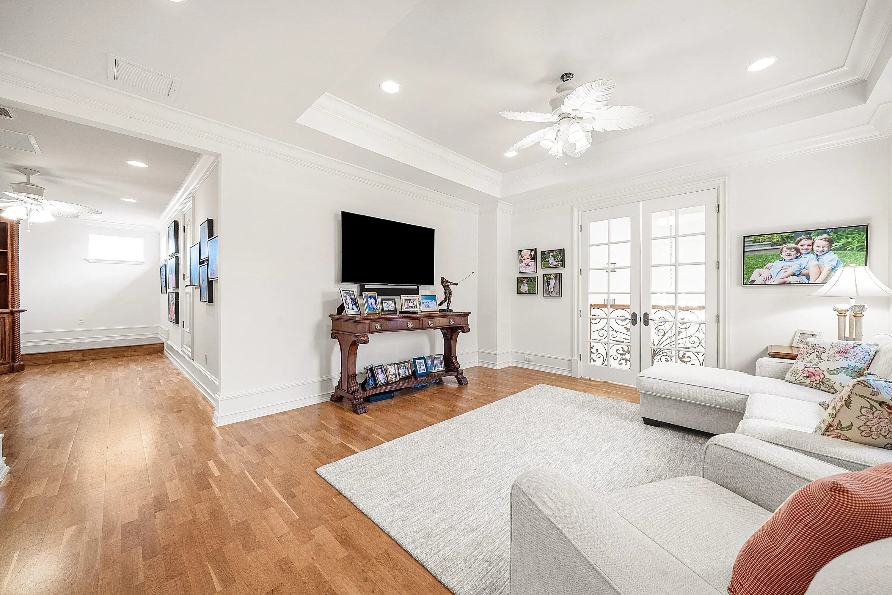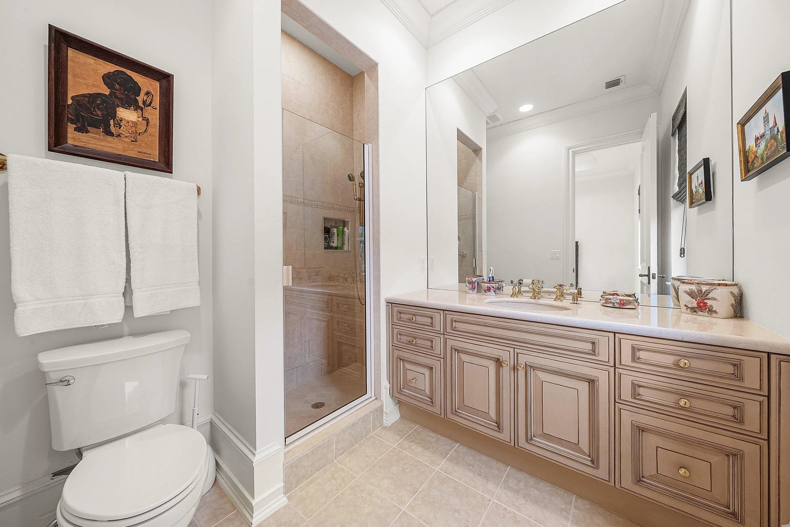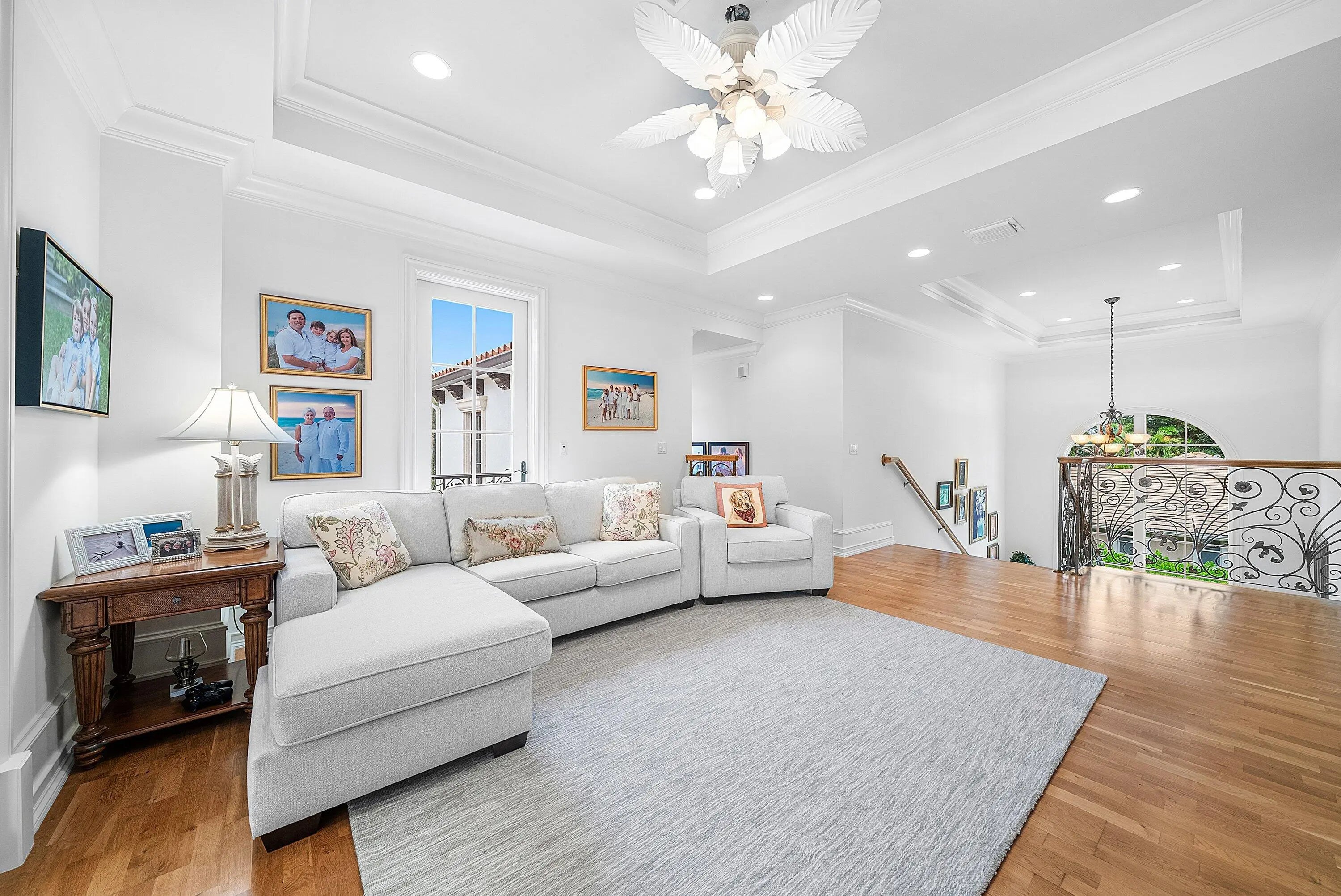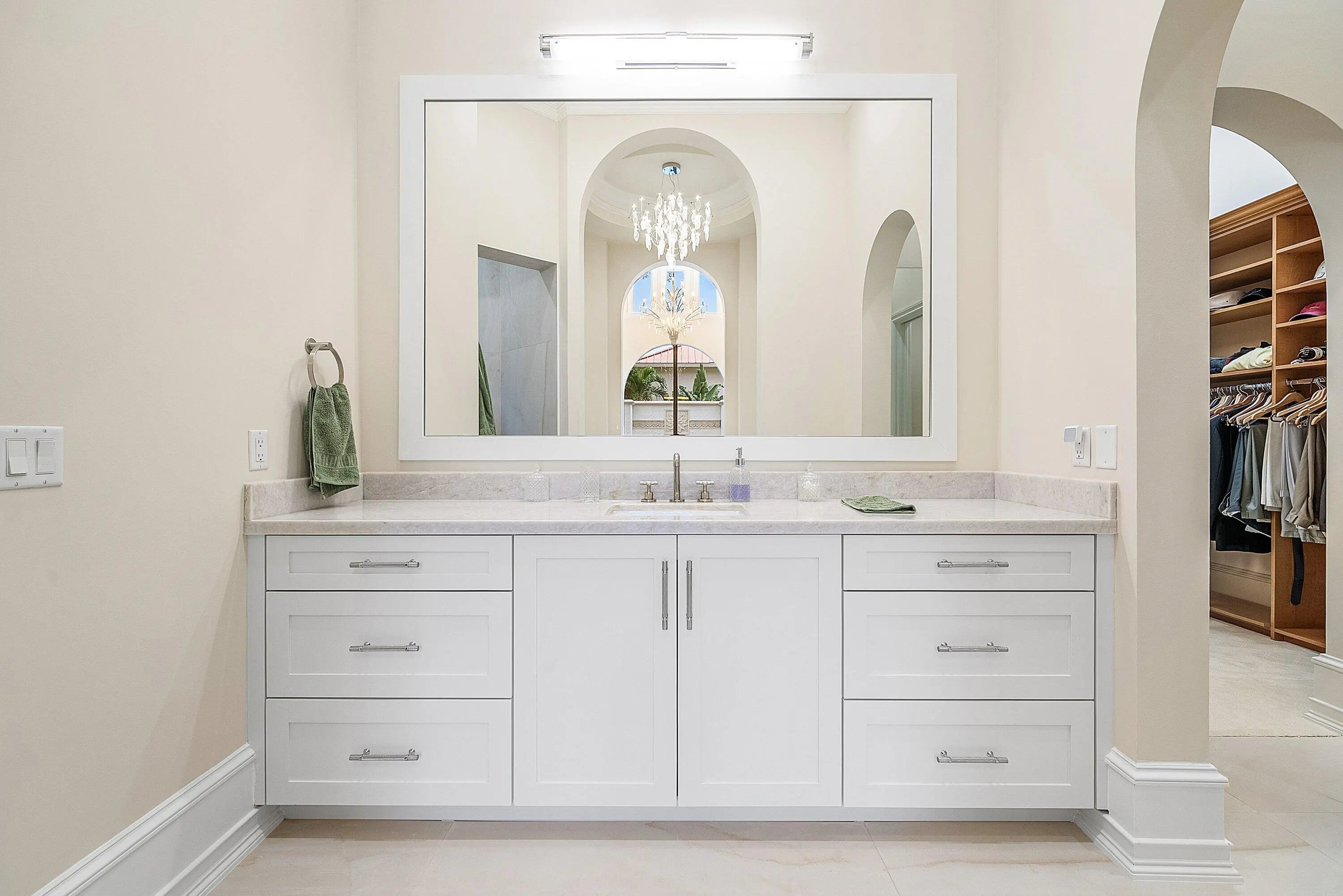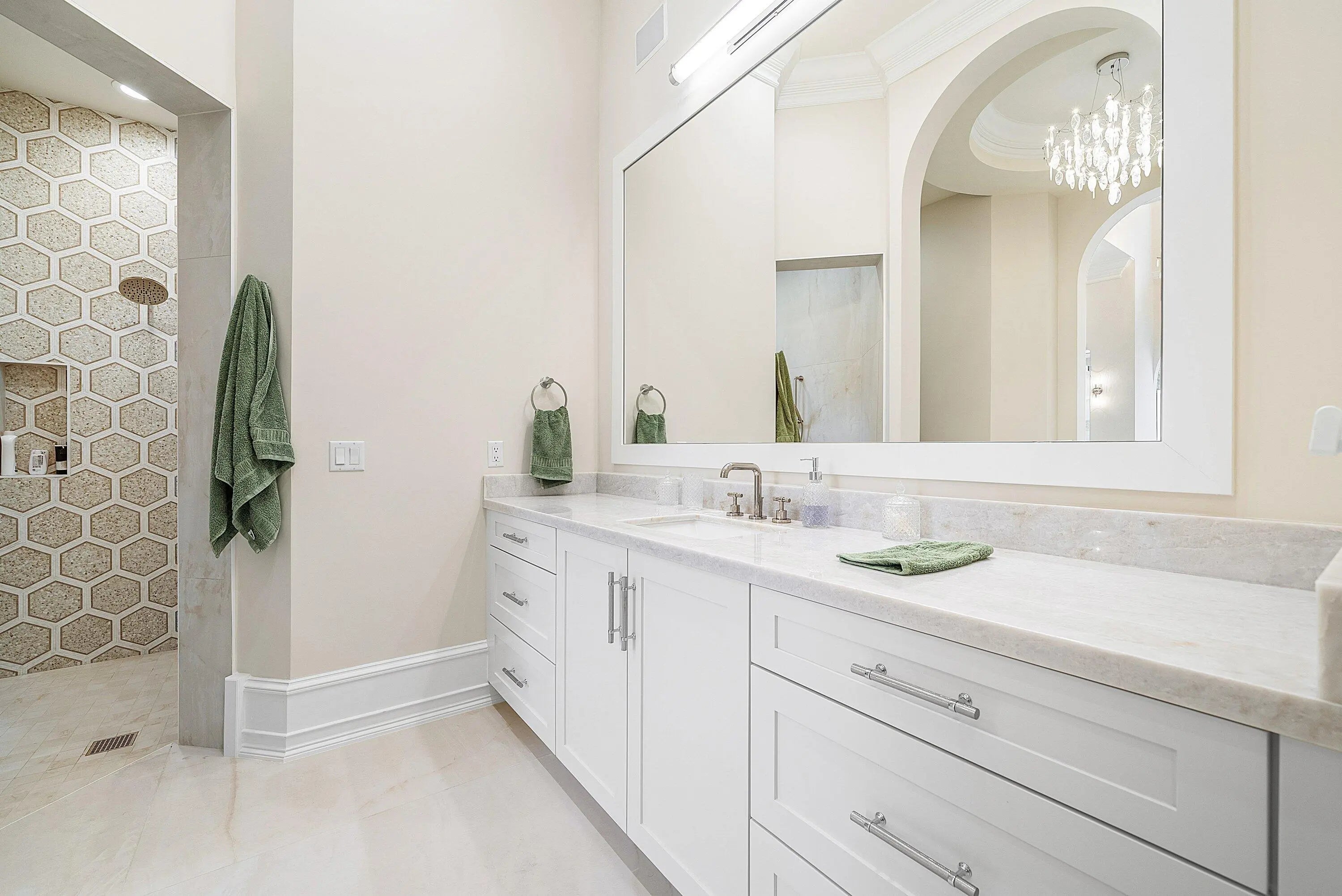 Discover exceptional luxury and stunning water views from this 7,200 sq. ft. Sabatello Signature estate, set on a full acre in the highly sought-after Steeplechase community. Thoughtfully designed and beautifully finished, the home offers 5 bedrooms, 6.5 baths, a refined library/office, a generous media or bonus room, a second-floor loft with sitting and study areas, and a four-car air conditioned garage. From the moment you enter, the grand foyer—with its intricate ironwork and soaring ceilings—sets the tone for the craftsmanship found throughout. Custom millwork enhances every space, while the first floor features brand-new porcelain tile, an office, a bonus room, and the primary suite. The primary suite is a true private retreat, complete with a spacious sitting area framed by arched windows that capture serene lake views. Two newly updated primary en-suite bathrooms featuring sleek glass showers, a soaking tub with a picturesque window view, new vanities, and updated flooring. The suite also includes an exercise or hobby area with a juice bar and two large custom walk-in closets. The gourmet kitchen, upgraded in 2022, is a chef's dream, boasting rich wood cabinetry, granite countertops, expansive center island and top-of-the-line appliances including Sub-Zero, Thermador, Bosch, and Dacor. Offering Florida indoor/outdoor living, steps away see the wall of sliders spanning the rear of the home to allow effortless entertaining in the expansive covered loggia with a summer kitchen, gas BBQ, and Sub-Zero fridge, all overlooking the stunning pool, spa, and cascading water features enhancing the serene experience. New pool, summer kitchen, waterfall and patio in 2022. With lush landscaping, a circular brick-paved driveway with a tiered fountain, and stunning wide water views, this estate offers the perfect blend of elegance, privacy, and convenience. Complete impact windows throughout, including front and garage doors, whole house generator, air conditioned garages, Four-zone A/C and modern automation systems complete this exceptional property. A true masterpiece in one of Palm Beach Gardens' most sought-after communities! Schedule your private showing and experience this extraordinary home for yourself.