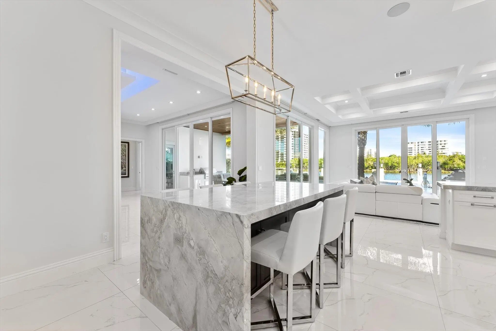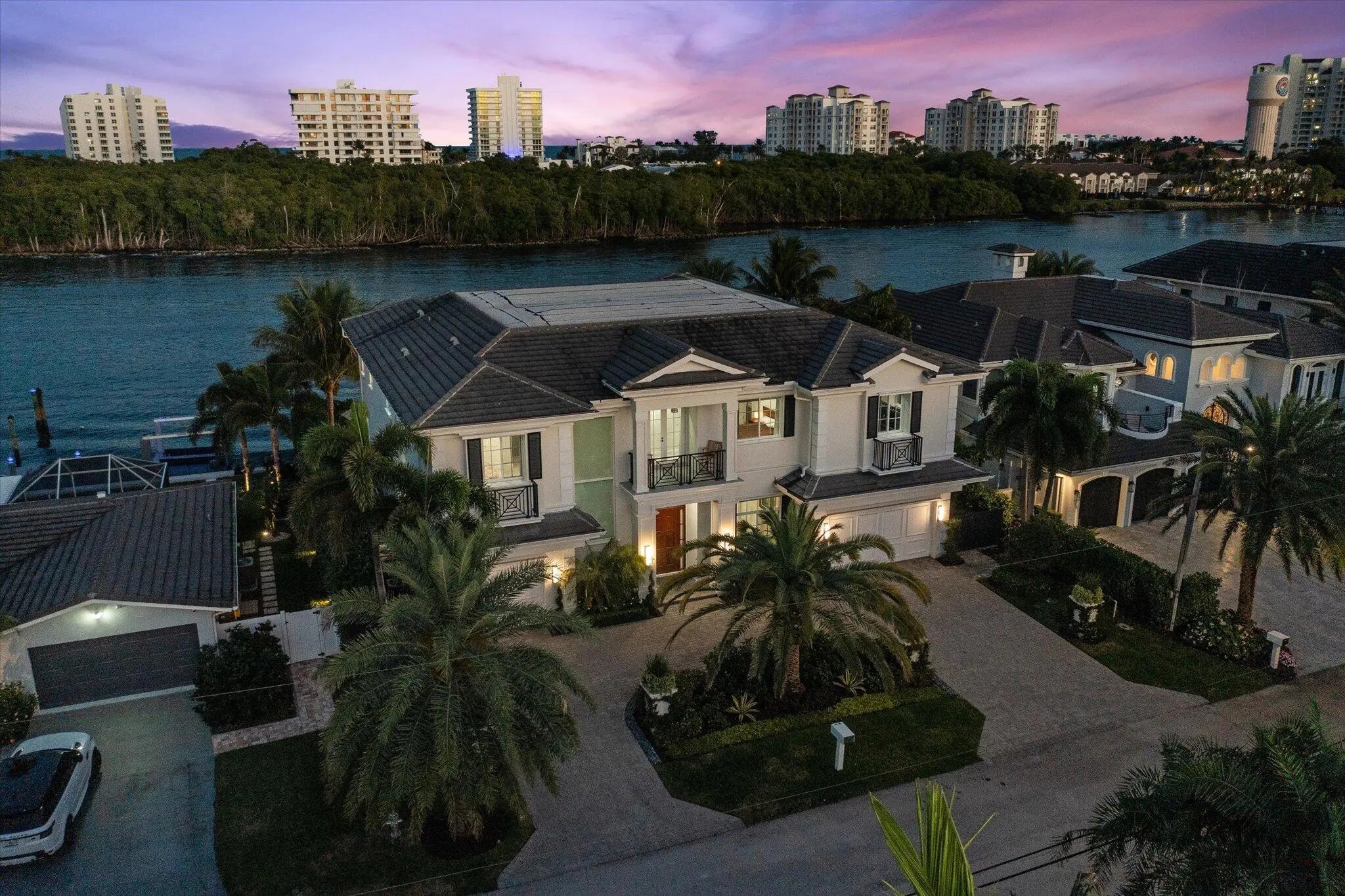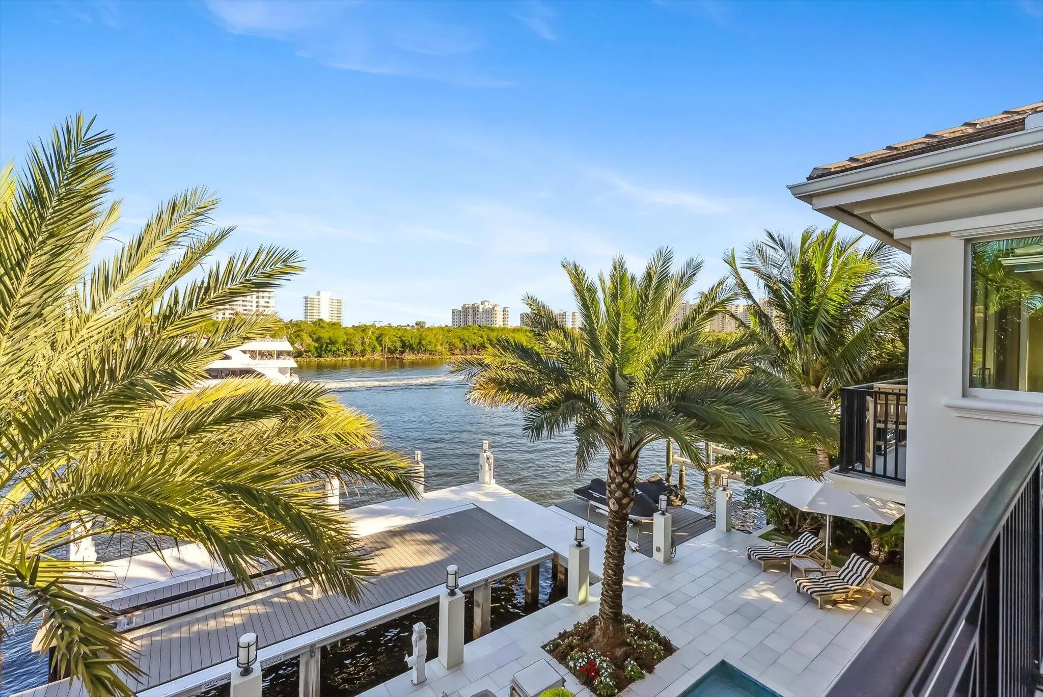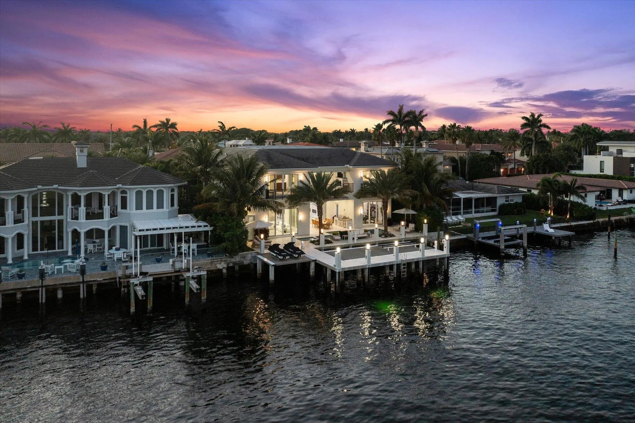 The Pinnacle of Waterfront Luxury - A One-of-a-Kind Private Island Estate. Prepare to be captivated by the most extraordinary waterfront estate in Boca Raton. Nestled on an exclusive private island of only 35 custom estates, this newly constructed masterpiece built in 2019 offers the ultimate in privacy, luxury, and breathtaking views. With unobstructed panoramas of the widest section of the Intracoastal Waterway, this home is a rare gem designed for the most discerning buyer. Sprawling across over 7,100 sq. ft. of opulent living space, this 5-bedroom, 7.5-bath estate is crafted with uncompromising attention to detail, with a state of the art theater, home office, gym, and 3-car garage. Featuring the ONLY L-Shaped Finger Pier Dock of its kind in Boca Raton, with 2 Dock Structures! Unrivaled Location & Prestige This architectural marvel enjoys a double cul-de-sac setting, ensuring serenity and seclusion. A non-gated bridge entry welcomes you to this sanctuary, while still placing you just minutes from Mizner Park, Atlantic Avenue, elite shopping, fine dining, private airports, and world-class golf and tennis. Unique Location: o Widest part of the Intracoastal in Boca Raton o Faces Wildlife Sanctuary o Boca Harbour Island - Private Island with 35 Custom Estate Homes o Bridge Entry (Non-Gated) o Double Cul de Sac Drive Points of Interest: Mizner Park - 4.6 Miles Atlantic Avenue - 4.2 Miles Town Center Mall - 7.2 Miles Spanish River Park (Beach) - 3.7 Miles Boca Executive Airport - 4.2 Miles Brightline Train Station - 6.0 Miles Tri Rail Train Station - 4.4 Miles I-95 - 4.2 Miles Palm Beach International Airport - 22.7 Every inch of this home is a showcase of sophisticated design, featuring: Gourmet Kitchen & Butler's Pantry - Outfitted with State-of-the-art appliances and features, this chef's dream is as stunning as it is functional. Kitchen: Gourmet Chef's Kitchen - Open with Water View Thermador Side-by-Side Refrigerator and Freezer (Stainless Steel (84"H x 72"W x 24"D) with Massive Door Pulls) Thermador Double Oven (Propane Gas (LP)) 3 Dishwashers: DW 1: Thermador Dishwasher DW 2: Fisher & Paykel Dishwasher DW 3: Fisher & Paykel Dishdrawer Thermador 6 Burner Rangetop with Griddle (Propane Gas (LP)) Delta Pot Filler Faucet over Thermador Rangetop Sharp Microwave Drawer Built Into Cabinetry Double Sinks Double Islands Center Island: 72" (L) x 60" (W) Side Island: 94" (L) x 51" (W) (Seats 6 People) Solid Wood Custom Cabinetry with Soft-Close Drawers Custom Interior Wood Shelving Systems for Storage of Glassware, Cookware, Flatware, and Dinnerware Marble Countertops Three Food Preparation Areas Custom Recessed Lighting, Sconces, Fixtures, and Chandeliers Sonos Sound System Overall Dimensions: 18' x 25'6" Butler's Pantry: Sub-Zero Wine Storage Cooler with 86 Bottle Capacity (30"W x 84"H x 24"D) Sub-Zero Refrigerator Drawer 1 with Custom Wood Panel to Match Cabinetry Sub-Zero Refrigerator Drawer 2 with Custom Wood Panel to Match Cabinetry Scotsman Ice Machine with Custom Wood Panel to Match Cabinetry & Sink Marble Countertops Solid Wood Custom Cabinetry with Soft-Close Drawers and Glass Display Cabinetry Custom Interior Wood Shelving Systems for Storage of Glassware, Cookware, Flatware, and Dinnerware Custom Recessed Lighting and Lighting in Glass Display Cabinetry Overall Dimensions: 9'2" x 7'5" Exquisite Finishes Throughout - Marble and wood floors, coffered and tray ceilings, cove and recessed lighting, crystal chandeliers, and high-end designer fixtures create an ambiance of timeless elegance. Living Room: Intracoastal Waterway View 12' High Coffered Ceilings with Recessed and Cove Lighting (Multi-Color Feature) Sonos Sound System Motorized Shades Recessed Lighting Cove Lighting (Multi-Colored) Fireplace (Propane, Lighted, and Heated) Modern Flames Landscape Fullview Series Floor to Ceiling Flat Slab of Marble Fireplace Wall Two opulent primary suites with breathtaking direct intracoastal views are designed for the ultimate in comfort and privacy and feature unobstructed panoramas of the water, seamlessly blending elegance and tranquility. Both offer private balconies and an outdoor terrace/patio overlooking the pool/deck/dock and intracoastal waterway, adjourned with a vent free linear gas outdoor fireplace. State-of-the-Art Theater - Featuring a Sony VPL Laser 4K projector, Black Diamond ALR screen, Martin Logan surround sound, Crestron smart controls, and acoustic suede panels for a true cinematic experience. Home Theater: State of the Art IPIC type Home Theater Sony VPL Laser 4K Projector Black Diamond ALR Zero Edge 120" 0.80 Gain Screen Martin Logan Surround System and Speakers Creston TSR-310 Remote Fabric Track Acoustic Suede Columns Raised Seated Area with 6 Leather Recliner Chairs on Riser Platform to Elevate Back Row of Seating to Enable Clear View of Screen 12' High Coffered Ceilings with Recessed Lighting, Cove Lighting, and Crown Molding Path Lighting on Stairs to Seating Area Recessed Lighting Cove Lighting (Multi-Colored) Sconces Carpet Flooring Overall Dimensions: 18'10" x 12' (Excluding Server Room) Crestron Whole-Home Automation - Control lighting, temperature, motorized shades, theater, and security from your smartphone or tablet. Resort-Style Outdoor Living - A complete landscaping transformation surrounds the sparkling pool, set on an ice-white marble deck, and a private dock with: 40' foot by 20' L-Shaped concrete finger pier dock (366 sq. ft.) extension to existing 60' x 2'9" concrete dock (89 sq. ft.) with a 15,000 lbs. 34' x 14' No Profile Hydraulic Boat Lift (476 sq. ft.) and a 5,000 lbs. 14' x 12' No Profile DualHydraulic Jet Ski Lift (168 sq. ft.) Ultimate Comfort & Security - Sonos music system, ColorVu IP cameras, Digital Watchdog monitoring, 48kW Generac whole-house generator, and Daikin A/C units for climate-controlled luxury car storage. Systems: Smart House Crestron System Sonos Sound System (Indoor and Outdoor) Camera System with HD Cameras/Remote Viewing