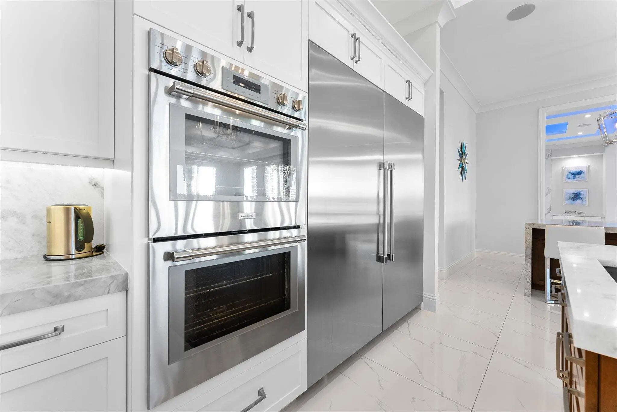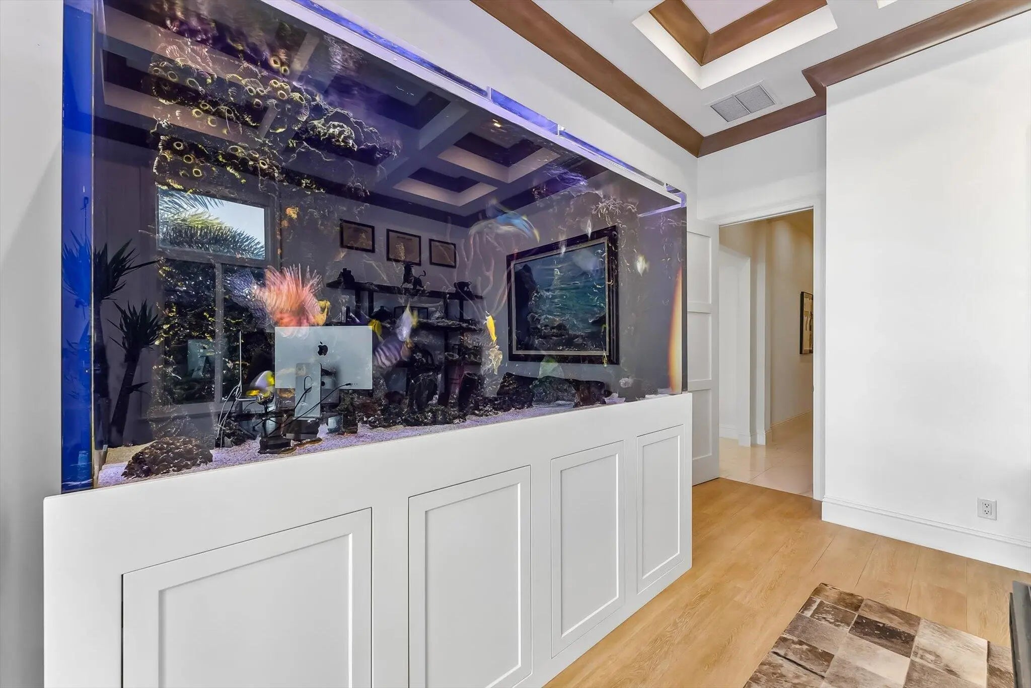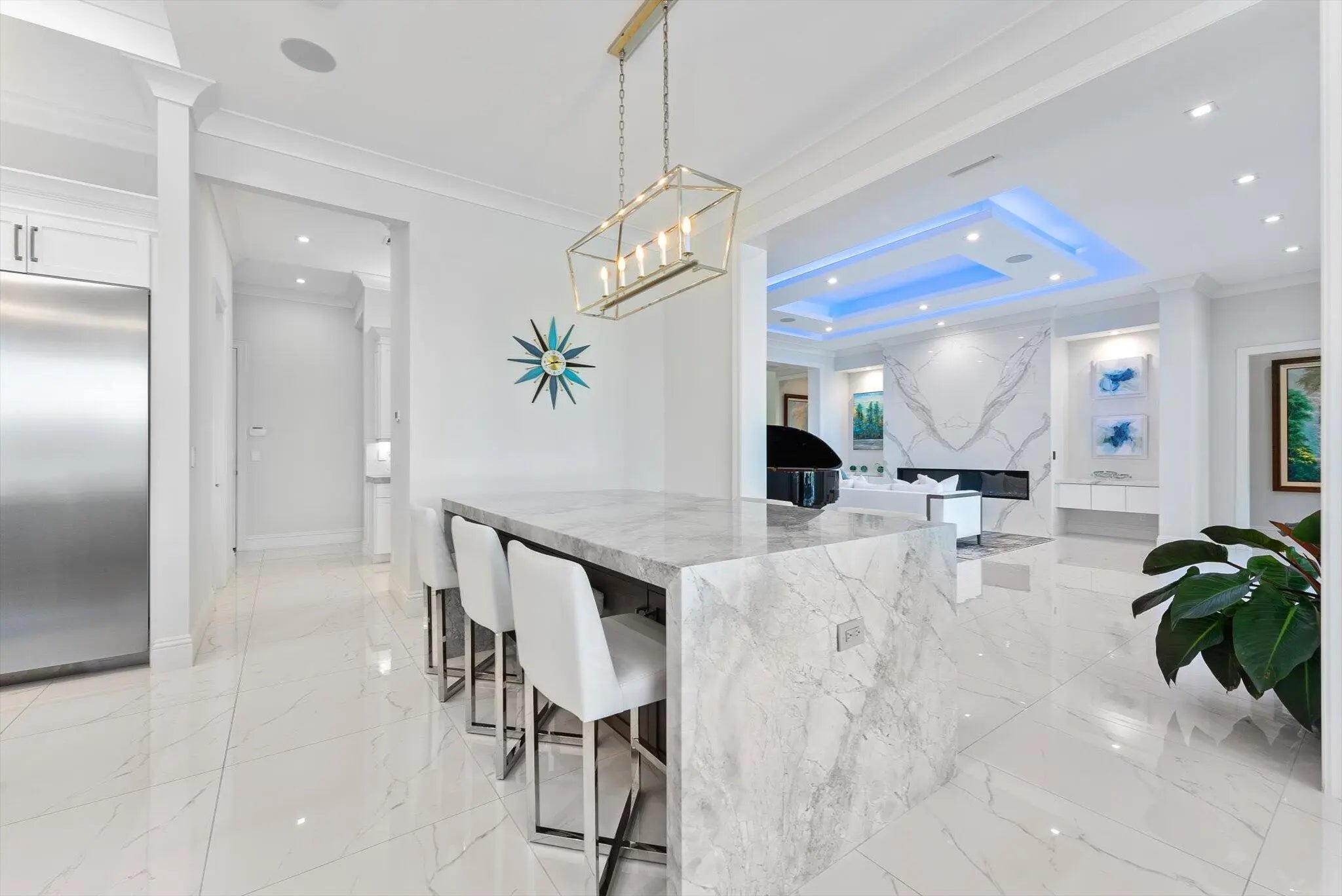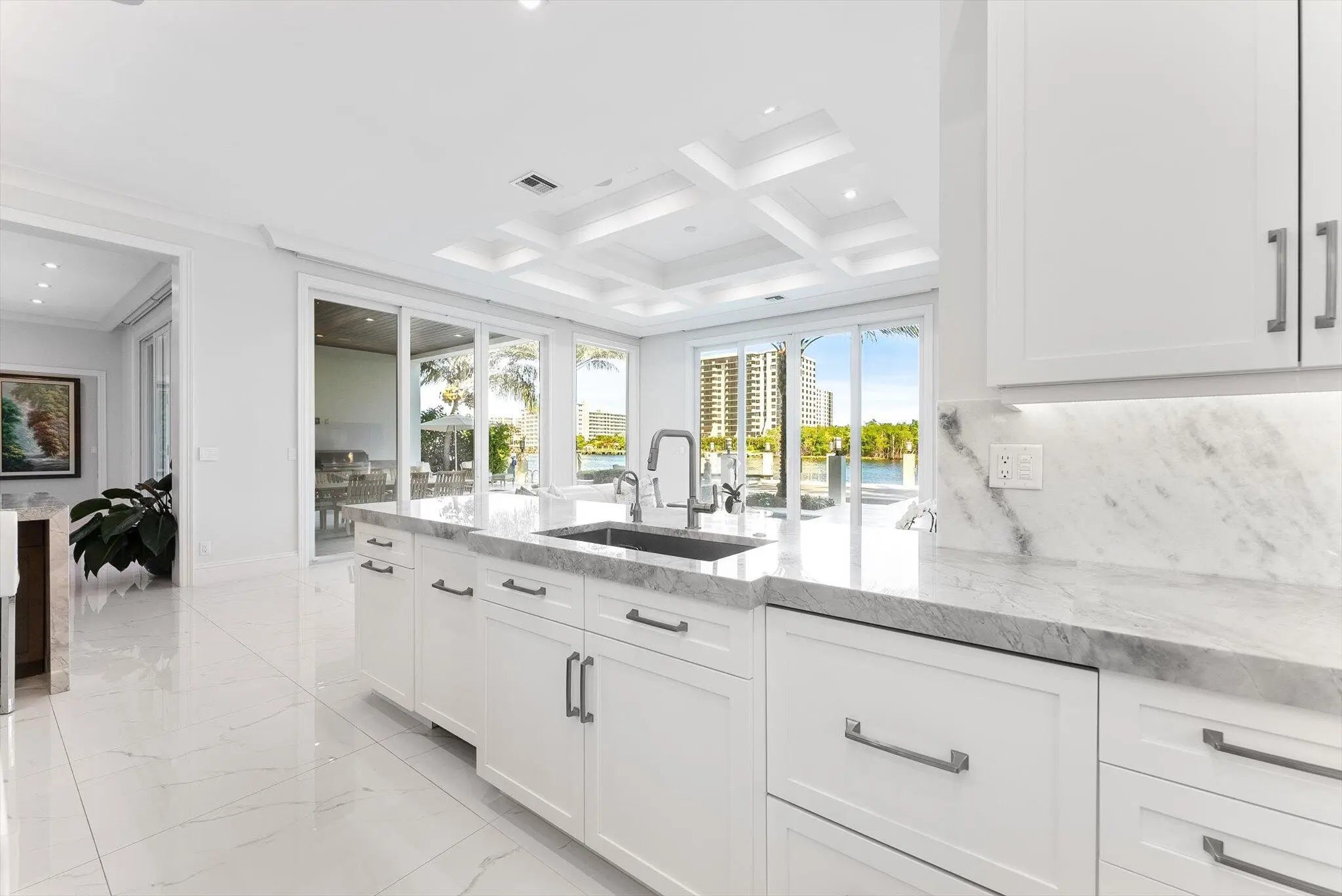 The Pinnacle of Waterfront Luxury - A One-of-a-Kind Private Island Estate. Prepare to be captivated by the most extraordinary waterfront estate in Boca Raton. Nestled on an exclusive private island of only 35 custom estates, this newly constructed masterpiece built in 2019 offers the ultimate in privacy, luxury, and breathtaking views. With unobstructed panoramas of the widest section of the Intracoastal Waterway, this home is a rare gem designed for the most discerning buyer. Sprawling across over 7,100 sq. ft. of opulent living space, this 5-bedroom, 7.5-bath estate is crafted with uncompromising attention to detail, with a state of the art theater, home office, gym, and 3-car garage. Featuring the ONLY L-Shaped Finger Pier Dock of its kind in Boca Raton, with 2 Dock Structures! Unrivaled Location & Prestige This architectural marvel enjoys a double cul-de-sac setting, ensuring serenity and seclusion. A non-gated bridge entry welcomes you to this sanctuary, while still placing you just minutes from Mizner Park, Atlantic Avenue, elite shopping, fine dining, private airports, and world-class golf and tennis. Unique Location: o Widest part of the Intracoastal in Boca Raton o Faces Wildlife Sanctuary o Boca Harbour Island - Private Island with 35 Custom Estate Homes o Bridge Entry (Non-Gated) o Double Cul de Sac Drive Points of Interest: Mizner Park - 4.6 Miles Atlantic Avenue - 4.2 Miles Town Center Mall - 7.2 Miles Spanish River Park (Beach) - 3.7 Miles Boca Executive Airport - 4.2 Miles Brightline Train Station - 6.0 Miles Tri Rail Train Station - 4.4 Miles I-95 - 4.2 Miles Palm Beach International Airport - 22.7 Every inch of this home is a showcase of sophisticated design, featuring: Gourmet Kitchen & Butler's Pantry - Outfitted with State-of-the-art appliances and features, this chef's dream is as stunning as it is functional. Kitchen: Gourmet Chef's Kitchen - Open with Water View Thermador Side-by-Side Refrigerator and Freezer (Stainless Steel (84"H x 72"W x 24"D) with Massive Door Pulls) Thermador Double Oven (Propane Gas (LP)) 3 Dishwashers: DW 1: Thermador Dishwasher DW 2: Fisher & Paykel Dishwasher DW 3: Fisher & Paykel Dishdrawer Thermador 6 Burner Rangetop with Griddle (Propane Gas (LP)) Delta Pot Filler Faucet over Thermador Rangetop Sharp Microwave Drawer Built Into Cabinetry Double Sinks Double Islands Center Island: 72" (L) x 60" (W) Side Island: 94" (L) x 51" (W) (Seats 6 People) Solid Wood Custom Cabinetry with Soft-Close Drawers Custom Interior Wood Shelving Systems for Storage of Glassware, Cookware, Flatware, and Dinnerware Marble Countertops Three Food Preparation Areas Custom Recessed Lighting, Sconces, Fixtures, and Chandeliers Sonos Sound System Overall Dimensions: 18' x 25'6" Butler's Pantry: Sub-Zero Wine Storage Cooler with 86 Bottle Capacity (30"W x 84"H x 24"D) Sub-Zero Refrigerator Drawer 1 with Custom Wood Panel to Match Cabinetry Sub-Zero Refrigerator Drawer 2 with Custom Wood Panel to Match Cabinetry Scotsman Ice Machine with Custom Wood Panel to Match Cabinetry & Sink Marble Countertops Solid Wood Custom Cabinetry with Soft-Close Drawers and Glass Display Cabinetry Custom Interior Wood Shelving Systems for Storage of Glassware, Cookware, Flatware, and Dinnerware Custom Recessed Lighting and Lighting in Glass Display Cabinetry Overall Dimensions: 9'2" x 7'5" Exquisite Finishes Throughout - Marble and wood floors, coffered and tray ceilings, cove and recessed lighting, crystal chandeliers, and high-end designer fixtures create an ambiance of timeless elegance. Living Room: Intracoastal Waterway View 12' High Coffered Ceilings with Recessed and Cove Lighting (Multi-Color Feature) Sonos Sound System Motorized Shades Recessed Lighting Cove Lighting (Multi-Colored) Fireplace (Propane, Lighted, and Heated) Modern Flames Landscape Fullview Series Floor to Ceiling Flat Slab of Marble Fireplace Wall Two opulent primary suites with breathtaking direct intracoastal views are designed for the ultimate in comfort and privacy and feature unobstructed panoramas of the water, seamlessly blending elegance and tranquility. Both offer private balconies and an outdoor terrace/patio overlooking the pool/deck/dock and intracoastal waterway, adjourned with a vent free linear gas outdoor fireplace. State-of-the-Art Theater - Featuring a Sony VPL Laser 4K projector, Black Diamond ALR screen, Martin Logan surround sound, Crestron smart controls, and acoustic suede panels for a true cinematic experience. Home Theater: State of the Art IPIC type Home Theater Sony VPL Laser 4K Projector Black Diamond ALR Zero Edge 120" 0.80 Gain Screen Martin Logan Surround System and Speakers Creston TSR-310 Remote Fabric Track Acoustic Suede Columns Raised Seated Area with 6 Leather Recliner Chairs on Riser Platform to Elevate Back Row of Seating to Enable Clear View of Screen 12' High Coffered Ceilings with Recessed Lighting, Cove Lighting, and Crown Molding Path Lighting on Stairs to Seating Area Recessed Lighting Cove Lighting (Multi-Colored) Sconces Carpet Flooring Overall Dimensions: 18'10" x 12' (Excluding Server Room) Crestron Whole-Home Automation - Control lighting, temperature, motorized shades, theater, and security from your smartphone or tablet. Resort-Style Outdoor Living - A complete landscaping transformation surrounds the sparkling pool, set on an ice-white marble deck, and a private dock with: 40' foot by 20' L-Shaped concrete finger pier dock (366 sq. ft.) extension to existing 60' x 2'9" concrete dock (89 sq. ft.) with a 15,000 lbs. 34' x 14' No Profile Hydraulic Boat Lift (476 sq. ft.) and a 5,000 lbs. 14' x 12' No Profile DualHydraulic Jet Ski Lift (168 sq. ft.) Ultimate Comfort & Security - Sonos music system, ColorVu IP cameras, Digital Watchdog monitoring, 48kW Generac whole-house generator, and Daikin A/C units for climate-controlled luxury car storage. Systems: Smart House Crestron System Sonos Sound System (Indoor and Outdoor) Camera System with HD Cameras/Remote Viewing