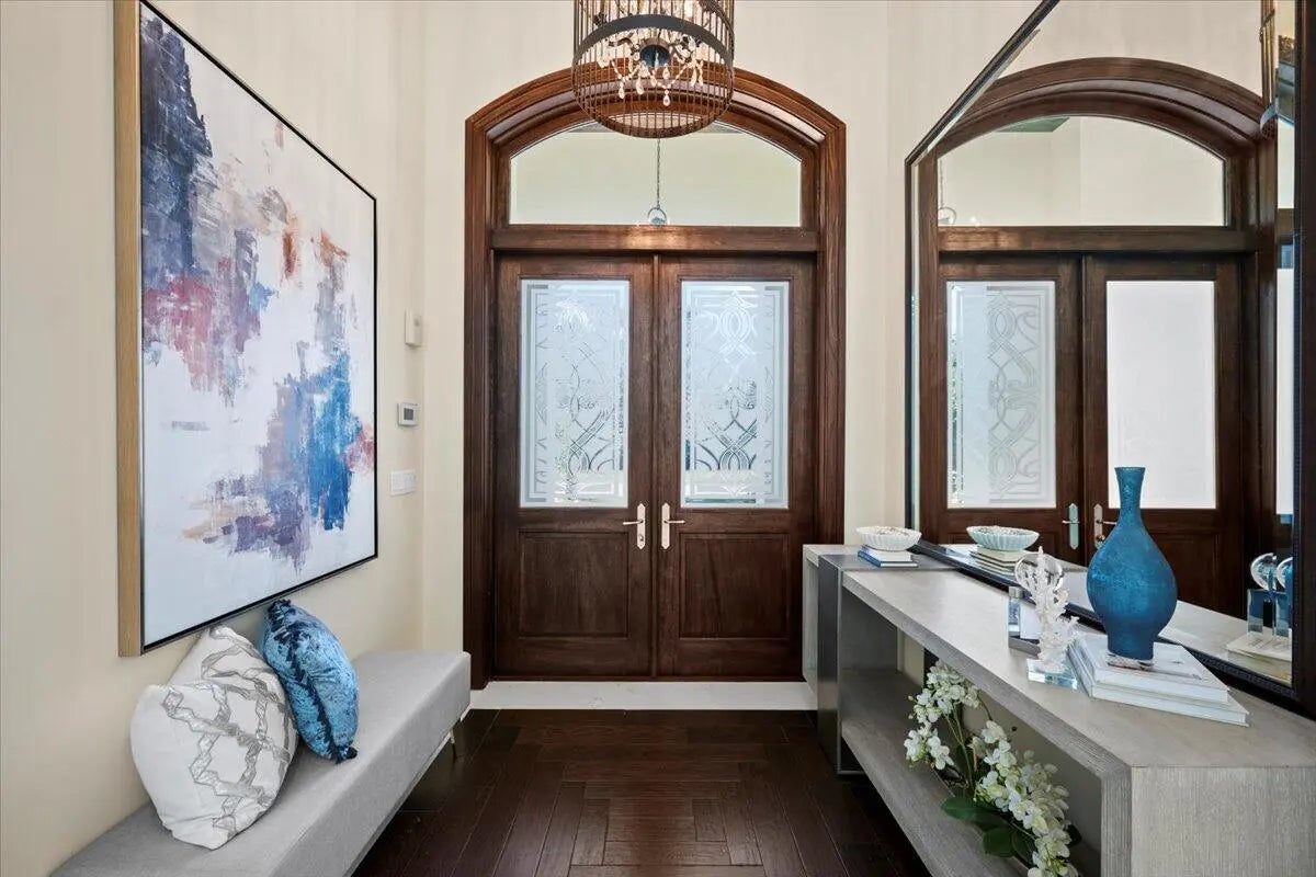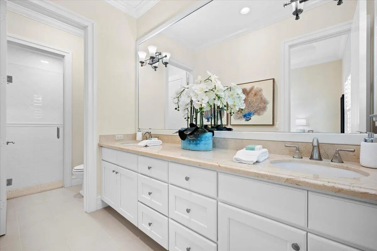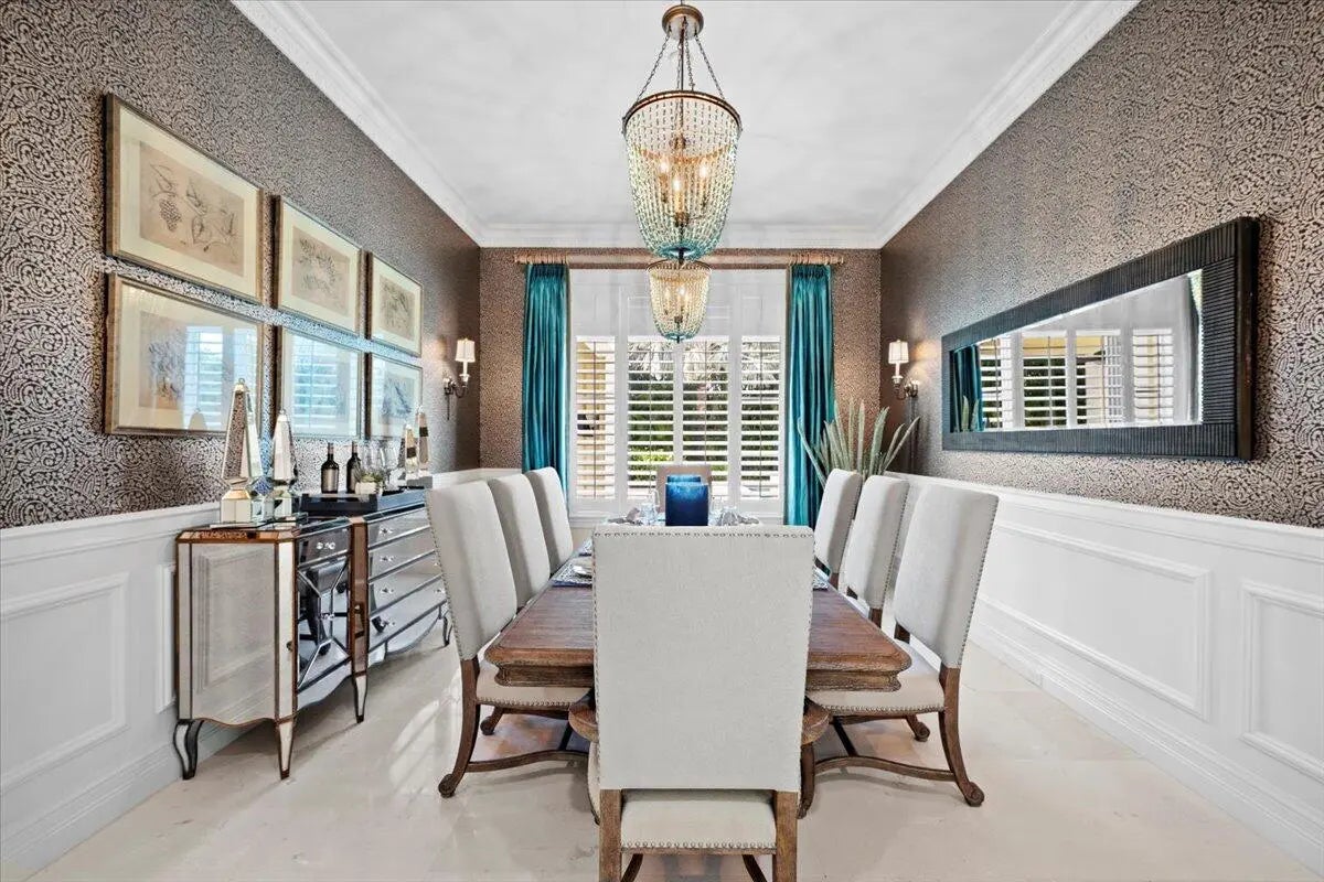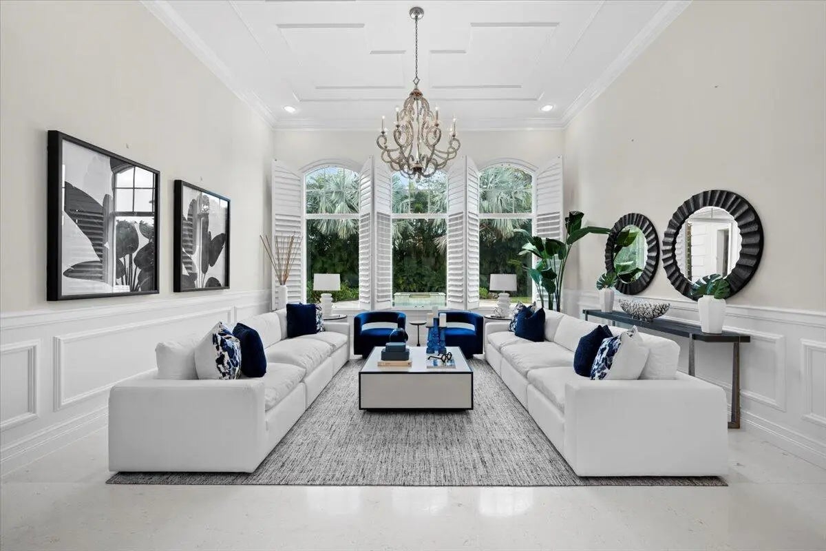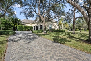 Welcome to 5775 Lady Luck Road, an exquisite property located in the tranquil Steeplechase community. This transitional home effortlessly combines modern features with timeless design on a sprawling 1.17 acre lot. Situated on the corner of Steeplechase Drive and Lady Luck Road, the home offers 5,800 square feet of expansive living space, with soaring ceilings, regal arched hallways, five en-suite bedrooms, a dedicated office, three garage bays, luxurious kitchen, salt water pool, an upstairs bonus space and much more. As you enter the home from the convenient half circle-driveway you will be greeted with a stunning, solid-wood double door entry as you step into the foyer overlooking an inviting formal entertainment area with sweeping views of the pool and the fully fenced backyard. From there you will find primary living quarters on one wing of the home and entertainment and another en-suite bedroom on another wing of the home. Make your way through the arched hallway where you will find three generous bedrooms each featuring their own full bathroom and closet. This wing of the home also features the substantial primary suite with two walk-in closets, linen closet, dual vanities, roman tub, walk-in shower, and water closet in addition to room for a sitting area and access to the outdoor patio and backyard. As you make your way back through the home you will enter the home's entertainment wing of the home. Here you will find a dedicated office, a welcoming formal dining space, powder room, an open concept area combining a family living area, gourmet kitchen, and informal dining space, as well as a spacious pantry, laundry room, a fifth en-suite bedroom and access to the garage and bonus space. The kitchen offers every amenity that an at-home chef could ever dream of; with a built-in wine refrigerator, luxurious stainless steel appliances, impressive Wolf gas range, pot filler faucet, and ample cabinetry to store all of your specialty kitchen appliances. You will look forward to preparing meals in this space that combines informal dining and a family living area overlooking your covered loggia and outdoor kitchen with it's own sink, refrigerator, built-in gas range, and cabinetry. Glide open your four-panel, impact glass, sliding glass doors and step outside into your backyard oasis. The covered loggia allows you to enjoy the outside space all year long, while you take in views of the heated, salt-water pool with tanning shelf and the manicured backyard. Back inside is a fully-equipped laundry room with front loading washer and dryer, sink, and utility shower. This wing of the home is rounded out with a fifth en suite bedroom, access to your 3-bay garage, and an upstairs bonus room. The home also features impact glass throughout and a whole home generator. Lady Luck is situated on 1.17 sprawling acres in the gated Steeplechase community, with easy access to Florida's Turnkpike and I-95, as well as world class dining, shopping, and beaches. You can enjoy the everyday serenity of this community while still having close access to Palm Beach County's world-class restaurants, shopping, and beaches! Schedule your private tour of 5775 Lady Luck Road, Palm Beach Gardens today!