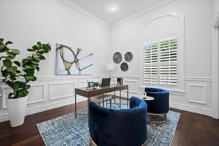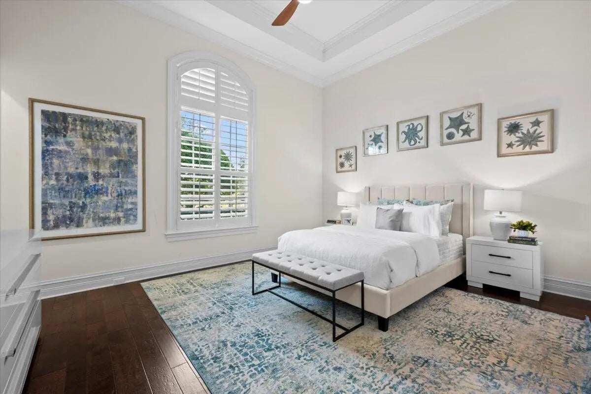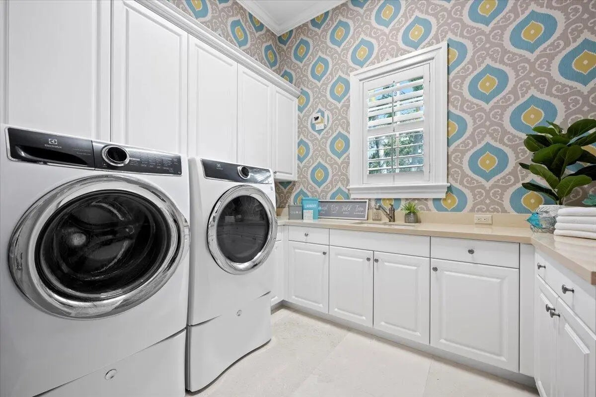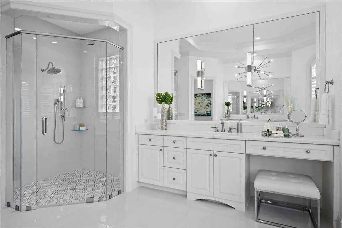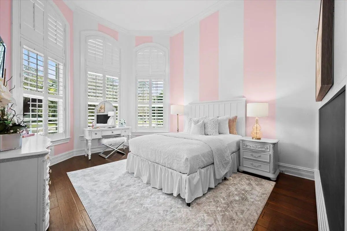 Welcome to 5775 Lady Luck Road, an exquisite property located in the tranquil Steeplechase community. This transitional home effortlessly combines modern features with timeless design on a sprawling 1.17 acre lot. Situated on the corner of Steeplechase Drive and Lady Luck Road, the home offers 5,800 square feet of expansive living space, with soaring ceilings, regal arched hallways, five en-suite bedrooms, a dedicated office, three garage bays, luxurious kitchen, salt water pool, an upstairs bonus space and much more. As you enter the home from the convenient half circle-driveway you will be greeted with a stunning, solid-wood double door entry as you step into the foyer overlooking an inviting formal entertainment area with sweeping views of the pool and the fully fenced backyard. From there you will find primary living quarters on one wing of the home and entertainment and another en-suite bedroom on another wing of the home. Make your way through the arched hallway where you will find three generous bedrooms each featuring their own full bathroom and closet. This wing of the home also features the substantial primary suite with two walk-in closets, linen closet, dual vanities, roman tub, walk-in shower, and water closet in addition to room for a sitting area and access to the outdoor patio and backyard. As you make your way back through the home you will enter the home's entertainment wing of the home. Here you will find a dedicated office, a welcoming formal dining space, powder room, an open concept area combining a family living area, gourmet kitchen, and informal dining space, as well as a spacious pantry, laundry room, a fifth en-suite bedroom and access to the garage and bonus space. The kitchen offers every amenity that an at-home chef could ever dream of; with a built-in wine refrigerator, luxurious stainless steel appliances, impressive Wolf gas range, pot filler faucet, and ample cabinetry to store all of your specialty kitchen appliances. You will look forward to preparing meals in this space that combines informal dining and a family living area overlooking your covered loggia and outdoor kitchen with it's own sink, refrigerator, built-in gas range, and cabinetry. Glide open your four-panel, impact glass, sliding glass doors and step outside into your backyard oasis. The covered loggia allows you to enjoy the outside space all year long, while you take in views of the heated, salt-water pool with tanning shelf and the manicured backyard. Back inside is a fully-equipped laundry room with front loading washer and dryer, sink, and utility shower. This wing of the home is rounded out with a fifth en suite bedroom, access to your 3-bay garage, and an upstairs bonus room. The home also features impact glass throughout and a whole home generator. Lady Luck is situated on 1.17 sprawling acres in the gated Steeplechase community, with easy access to Florida's Turnkpike and I-95, as well as world class dining, shopping, and beaches. You can enjoy the everyday serenity of this community while still having close access to Palm Beach County's world-class restaurants, shopping, and beaches! Schedule your private tour of 5775 Lady Luck Road, Palm Beach Gardens today!