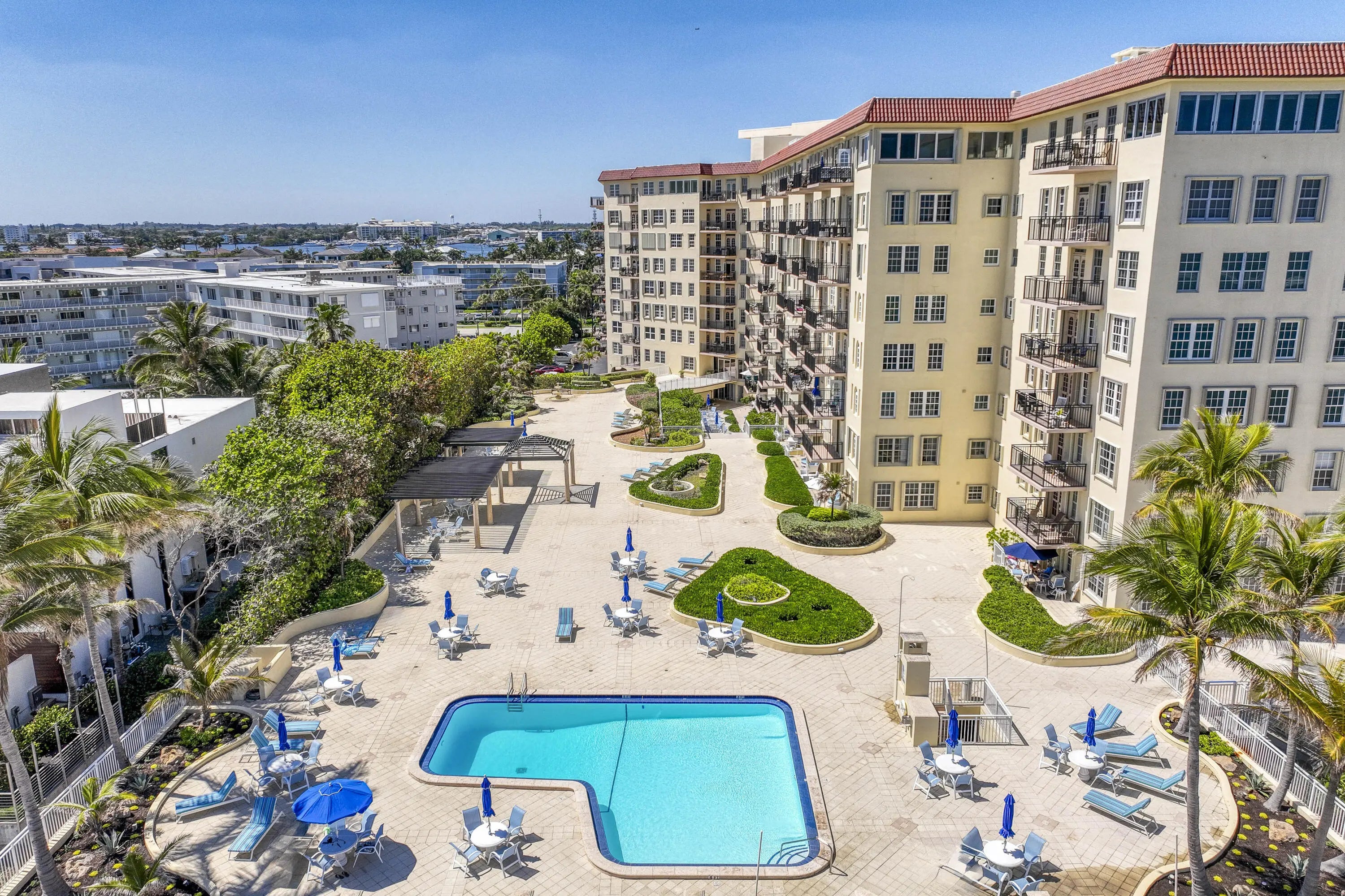 Affordable and priced to sell Investment property with a long-time renter or turn-key on the beach residence in Palm Beach. Reserves are paid for 2026! HOA is an affordable $ 1,309 per month. Move in this Fall to a beautiful new carefree lifestyle at La Bonne Vie. This home has a newly renovated kitchen, baths, lighting, flooring and windows - all in modern taste and convenience. This 2 BR, 2 Bath, 1395 sf of large rooms with high 8-10' ceilings - so hard to find at this price!! The master bedroom has a huge walk-in closet and dressing vanity. Enjoy an unusually lovely view from the balcony, unhindered to ocean and intracoastal with NO views of any parking lot. A modern glass round pedestal dining table seating 6 easily (not shown in the photos) and chandelier is included included in the sale. La Bonne Vie is a well maintained Palm Beach classic property with a milestone inspection completed and approved, new roof, common area hurricane windows and doors, new lobby, ample parking and friendly residents - lots of organized social events here. LBV offers a resort like atmosphere with amenities such as large pool and terrace decks, fitness room, party room, gym, sauna and 24-hour doorman security. This is a fantastic opportunity to own an affordable property in Palm Beach. So take the plunge!!"