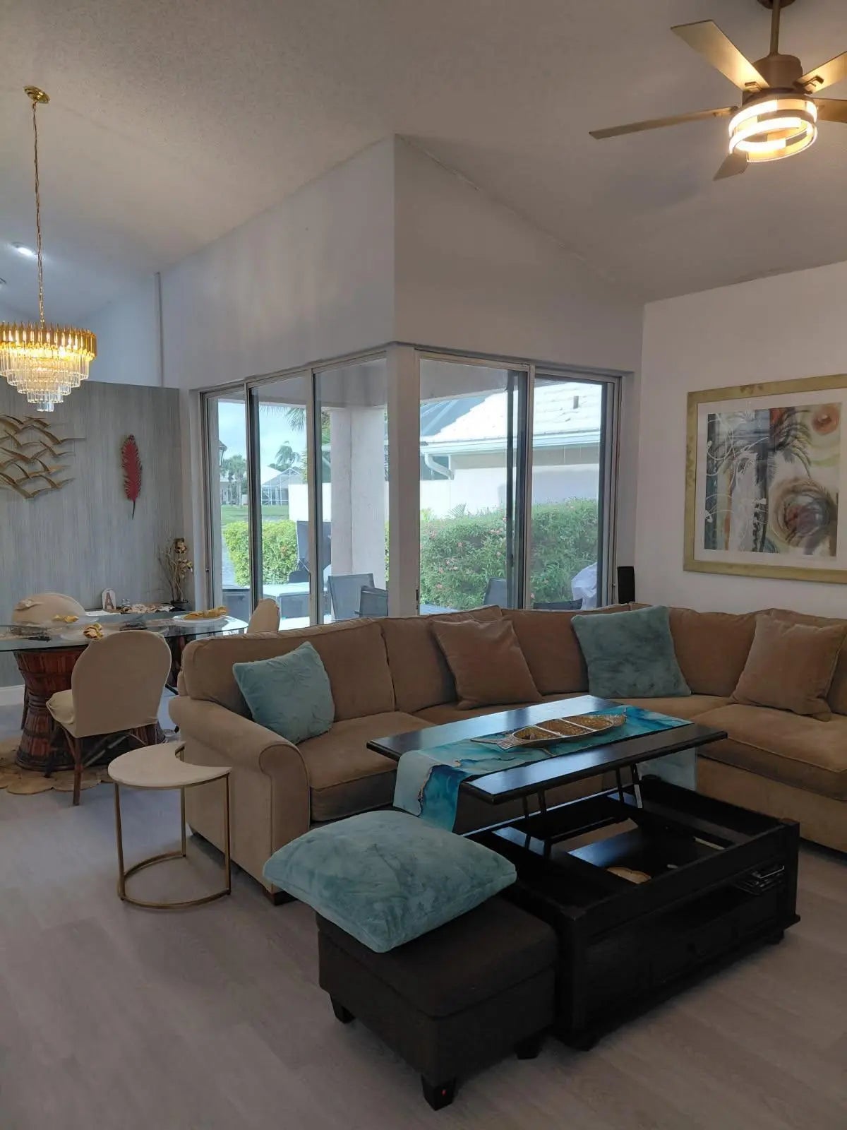 Imagine waking up to breathtaking, panoramic lake views every morning from your own tranquil retreat. Perfectly positioned at the end of a serene cul-de-sac within the highly sought-after Breakers West community, this beautifully designed one-story home offers unparalleled privacy and peace. This residence is truly move-in ready, offering both elegance and peace of mind. The interiors boast a gorgeous, modern kitchen and a thoughtfully updated primary bathroom, creating a sophisticated yet comfortable atmosphere. Essential upgrades, including a recently replaced roof and a whole-house generator, ensure effortless, worry-free living. Currently, the third bedroom serves as a charming, versatile den—perfect for a home office, library, or media room. The best part? This wonderful home welcomes residents of all ages, and no membership is required to enjoy this exceptional location. For those desiring an enhanced lifestyle, exclusive club memberships are available but completely optional, allowing you to tailor your community experience perfectly. Come discover the effortless luxury and stunning views that make this house not just a home, but a lifestyle.