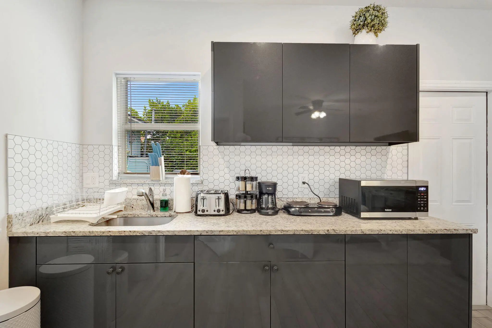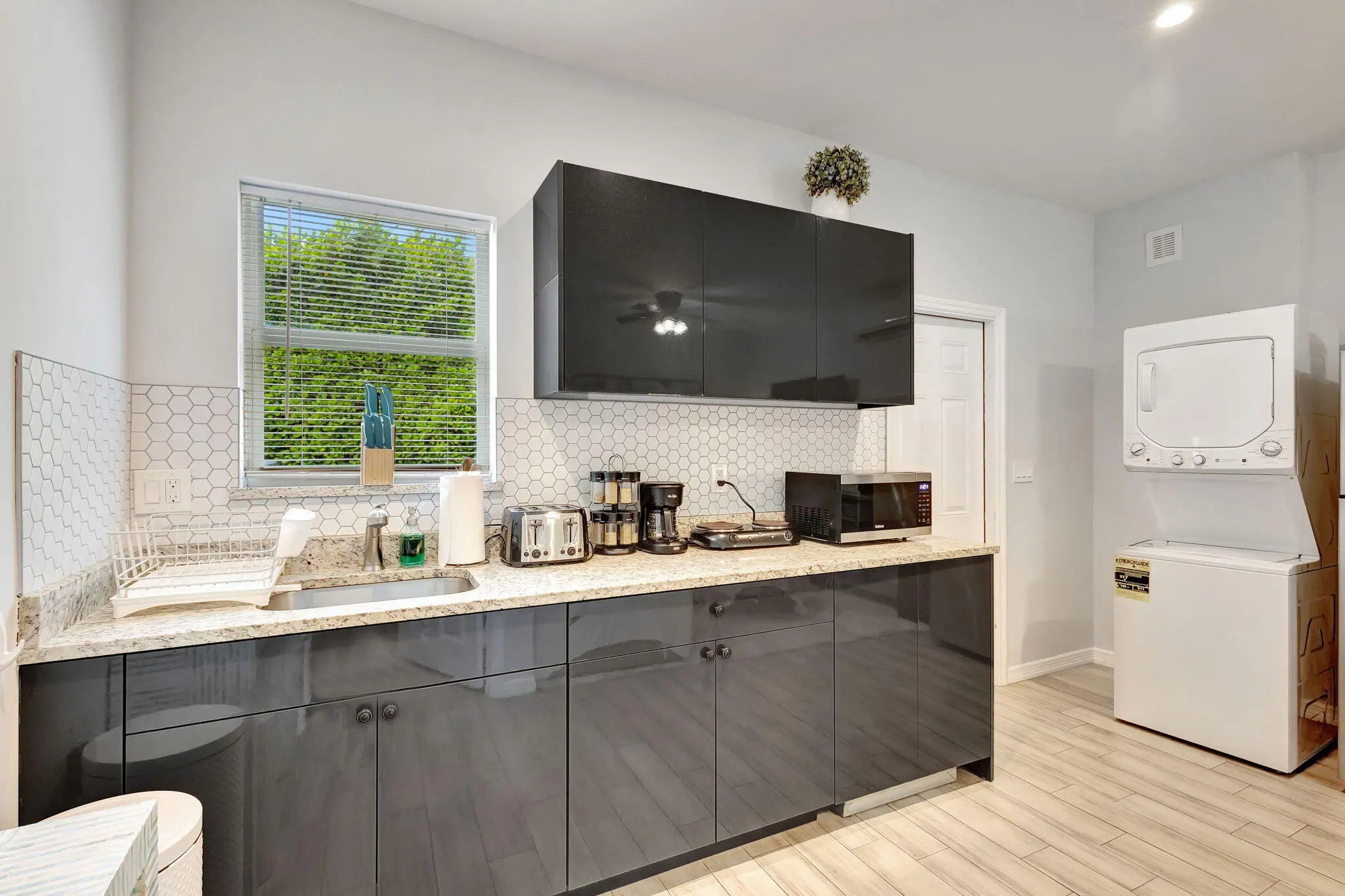 Four bedroom, two bathroom, CBS, single family house, fenced backyard, with an recently renovated one bedroom, one bathroom cottage. House features hard word floors, gas stove, and gas HWH. New 3D composite shingle roof will be installed prior to closing. New Citizens homeowners' quote is $5,100. Room for a pool. The cottage is 391 sqft with kitchen and washer & dryer. Currently tenant occupied with the main home rented for $3,900 monthly w/ end date 05-26-2027 and the back unit rented for $1,850 monthly w/end date of 05-31-2026. Conveniently located in Opportunity Zone one block from the direct Intra-Coastal waterway in trendy, up & coming Northwood. Northwood boasts a quaint Downtown,shops,dining, entertainment, and waterfront parks. GL Homes building 100 new homes from 40th to 45th