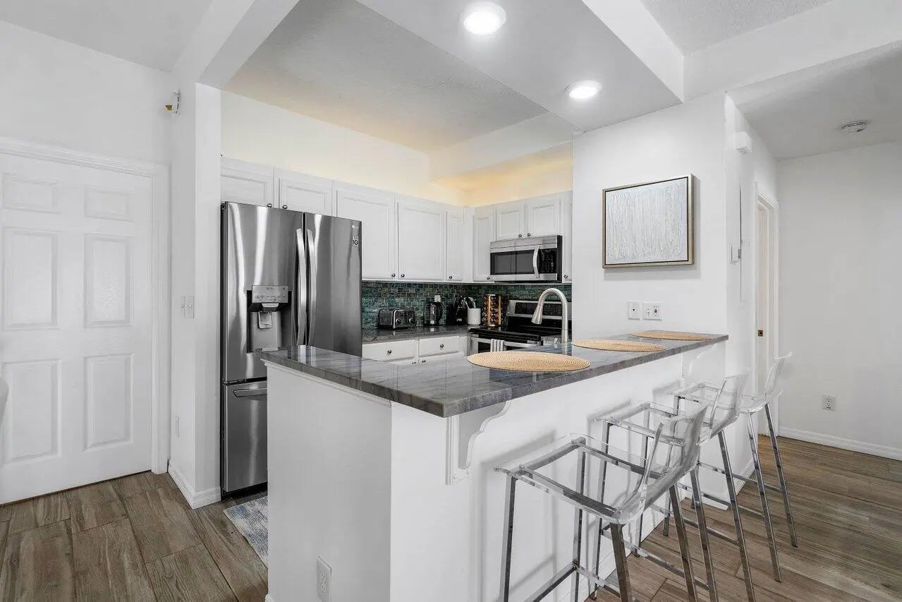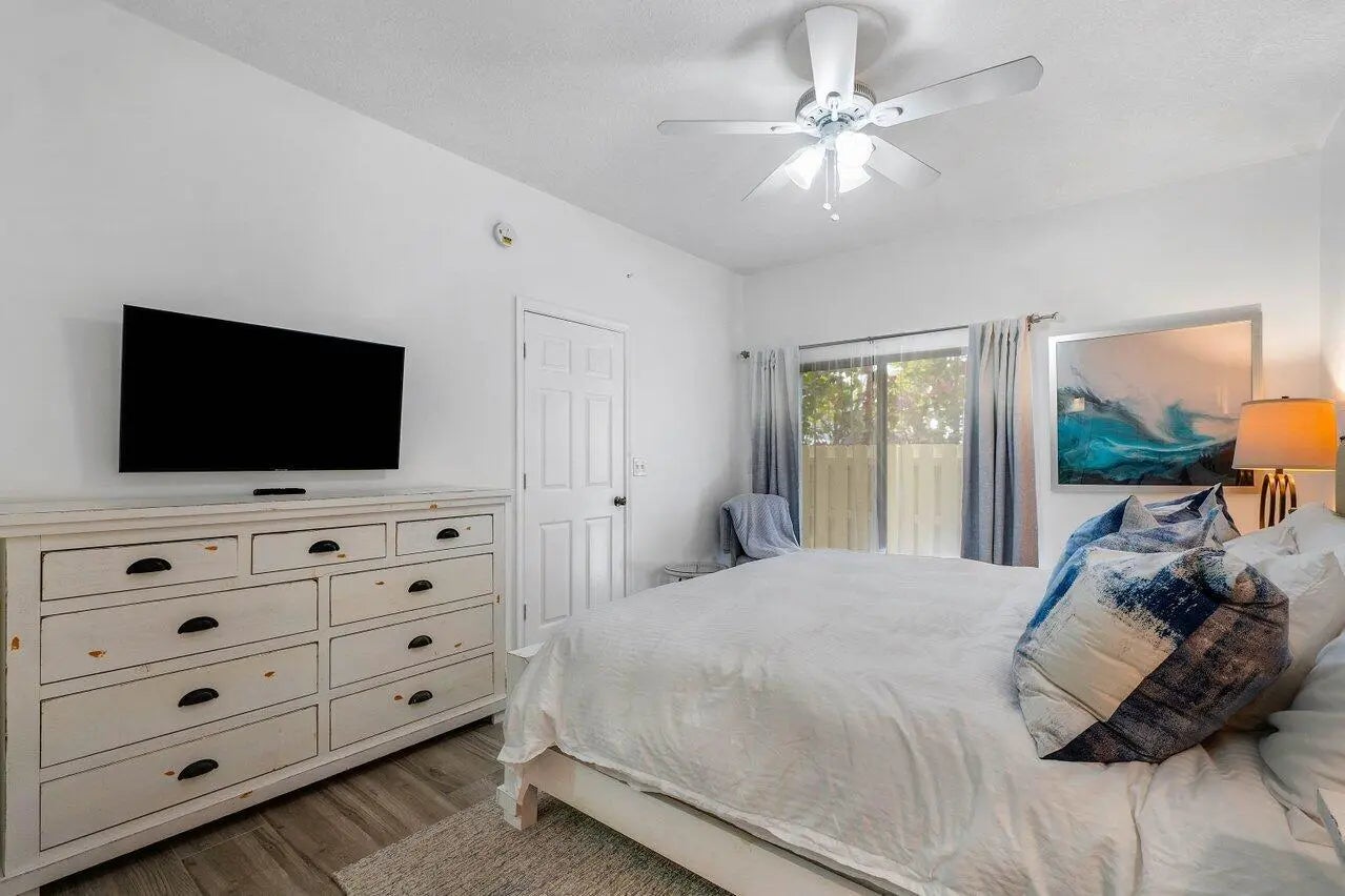 Available off Season 11/1/25-11/30/25 $3200 This Coastal community has all the bells! Steps down to Carlin Park,with 1 mile Hieart Trail, tennis/pickle Ball courts. Then steps to the aqua blue water of Jupiter Beach. Community pool and open air Clubhouse! This stunning Beachy condo is fully equipped with all the linens, towels, beach chairs, & kitchen equipment, King bed in Master and Queen bed in guest. You will love this location and hurry time to rent 6 mos. & day with NO TAX call,,,,don't Miss Out!