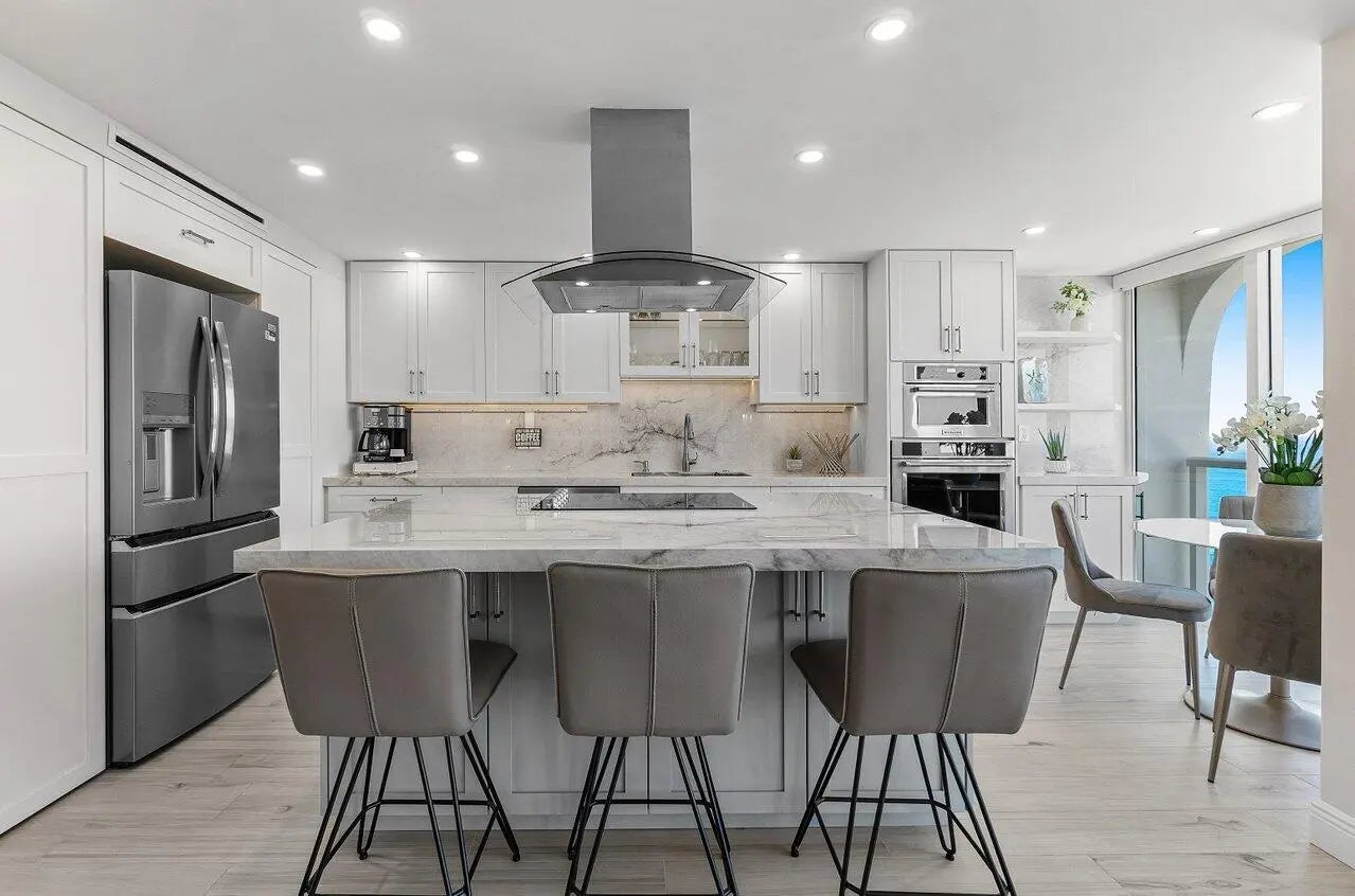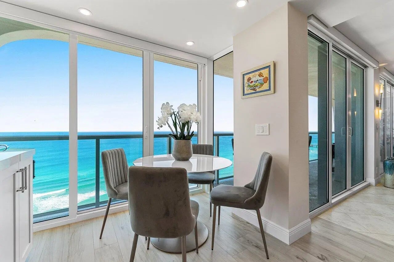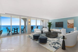 Fully renovated 2 BD 2 BA penthouse unit in the prestigious Ocean Towers, just minutes from Downtown Boca Raton. Enjoy incredible ocean views from the east facing, open-layout living area that seamlessly connects to the updated kitchen, boasting a beautiful island with seating and a stunning marble backsplash. For a more immersive viewing experience, enjoy the ocean breeze from the spacious balcony that extends along the living space. On the other side of the unit, western exposure allows for stunning intracoastal views from the primary and second bedrooms. The unit includes one deeded parking space, all impact glass, and all new floors and bathrooms. With only two units per floor, this residence offers a semi-private landing for added exclusivity. Ocean Towers provides resort-style amenities, including a pool, a gym, a rentable community room, and beach service. All assessments have been paid in full.